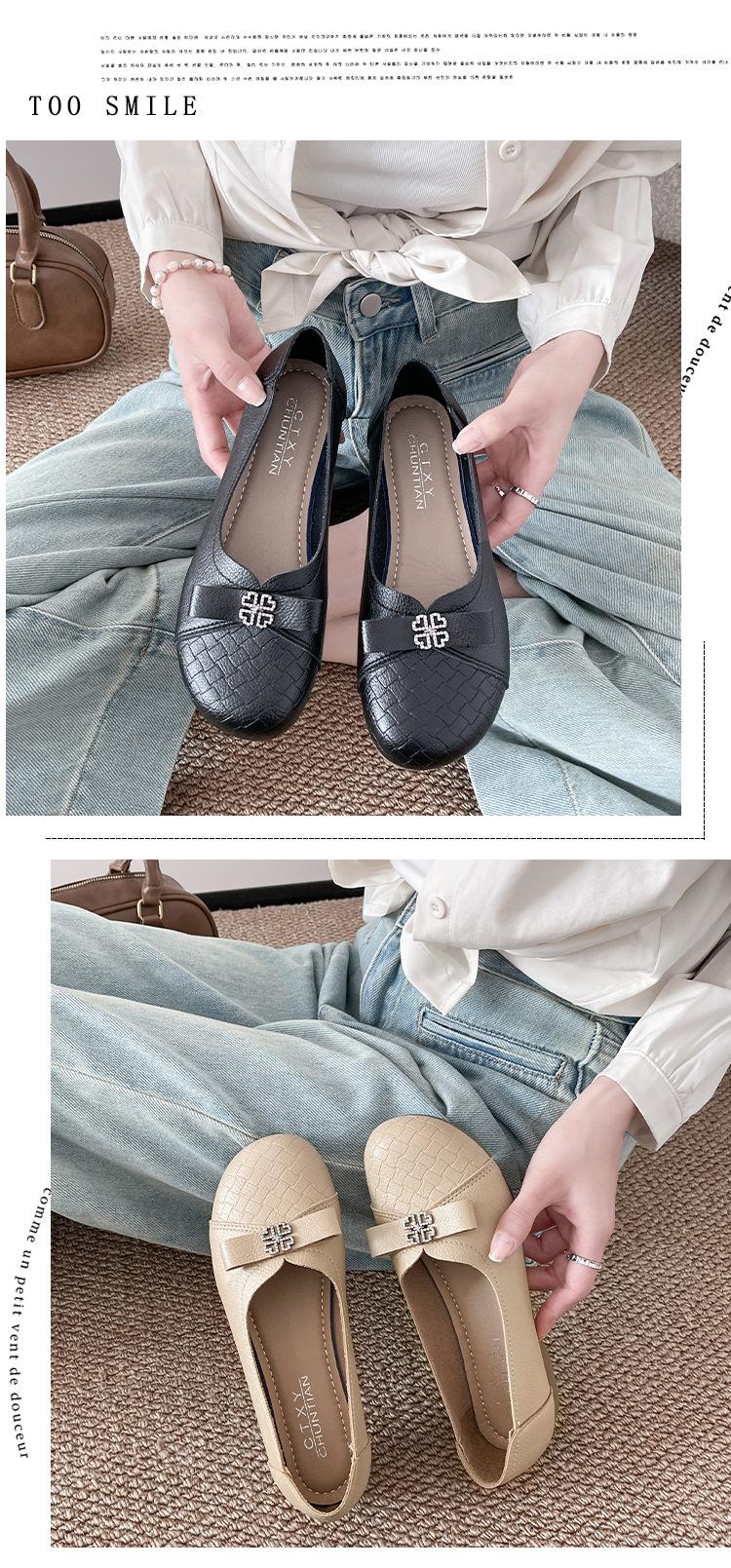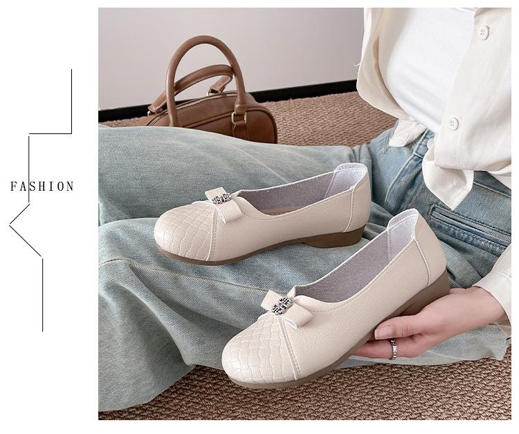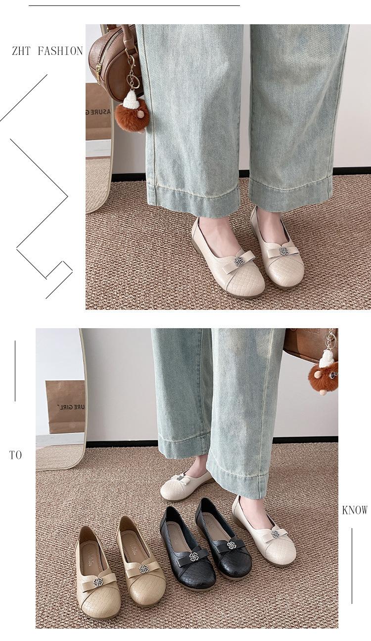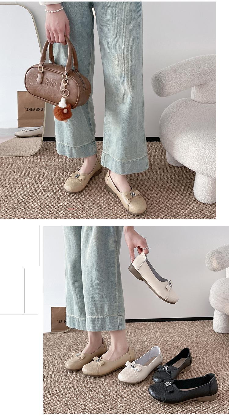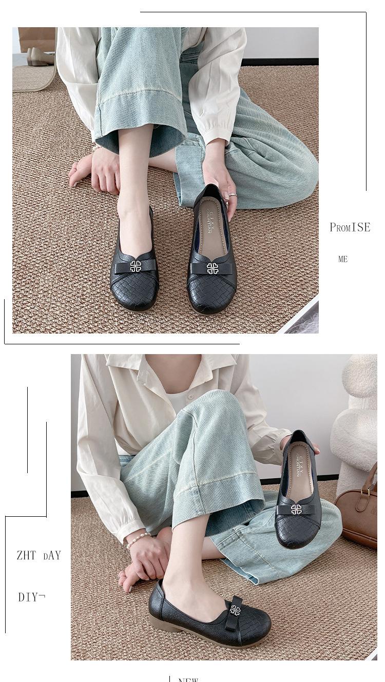 Sapatos baixos femininos primavera e verão 2025, novos sapatos individuais, sola macia, sapatos confortáveis para mães, bico redondo, boca rasa, sapatos de descasque macios para todos os gostos