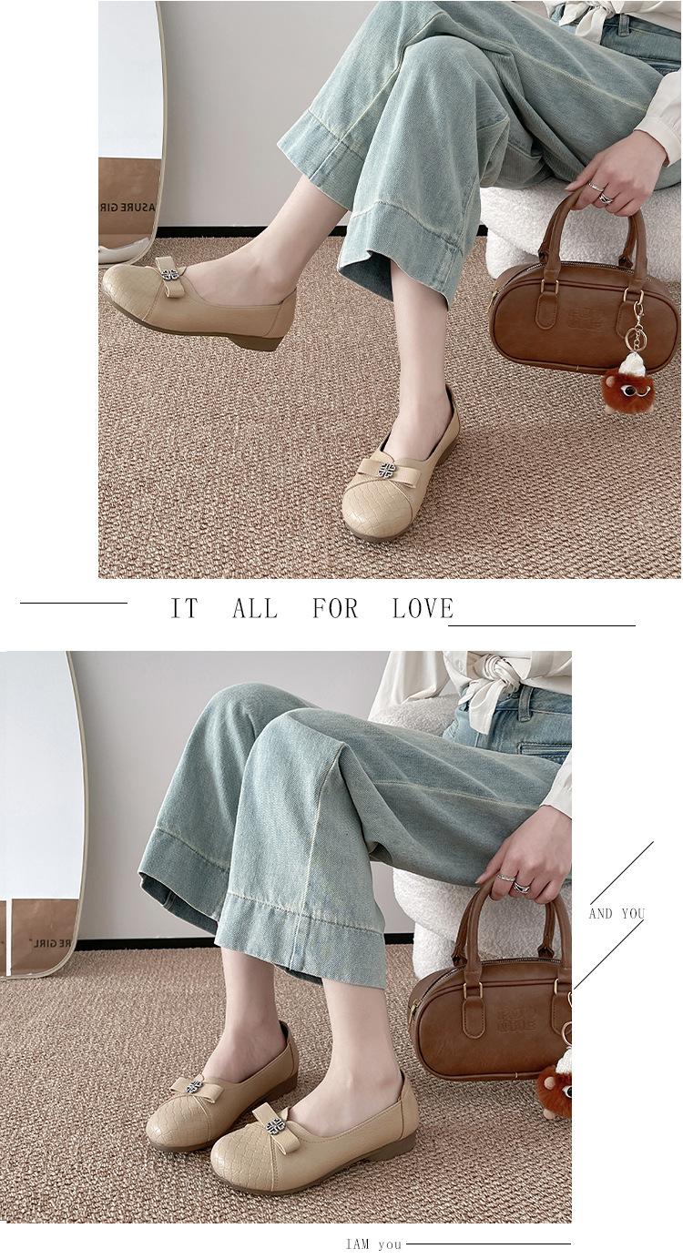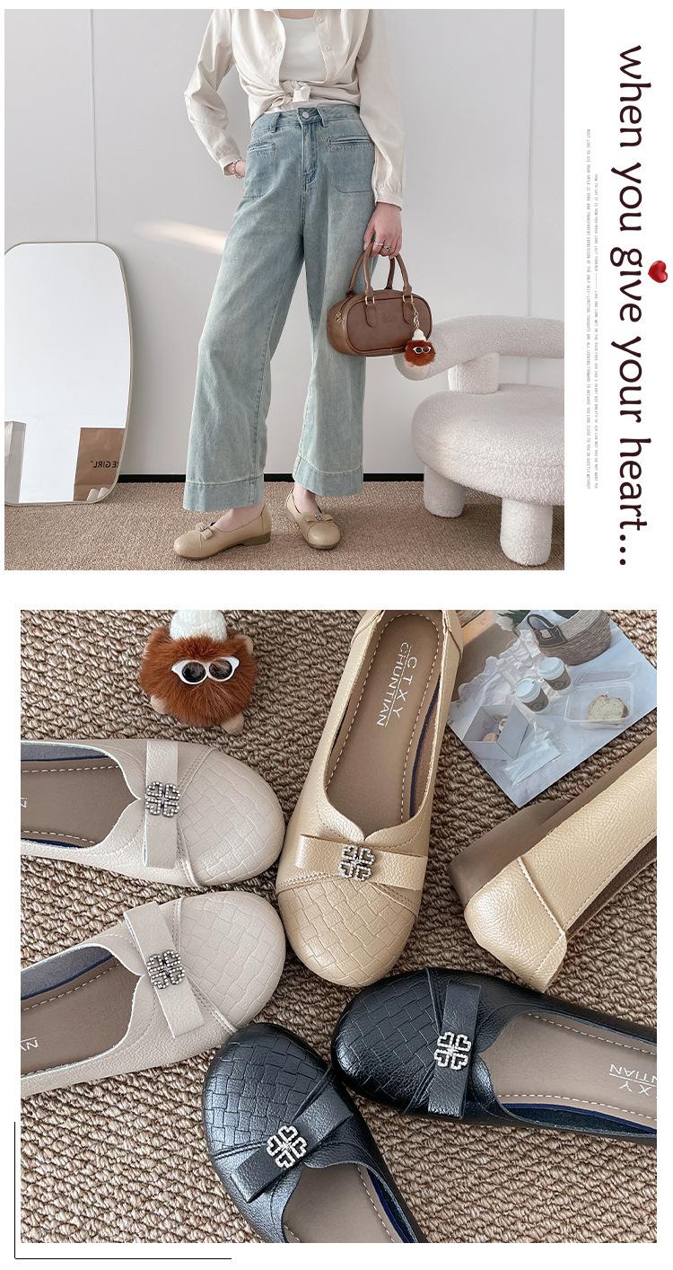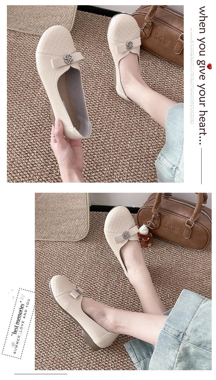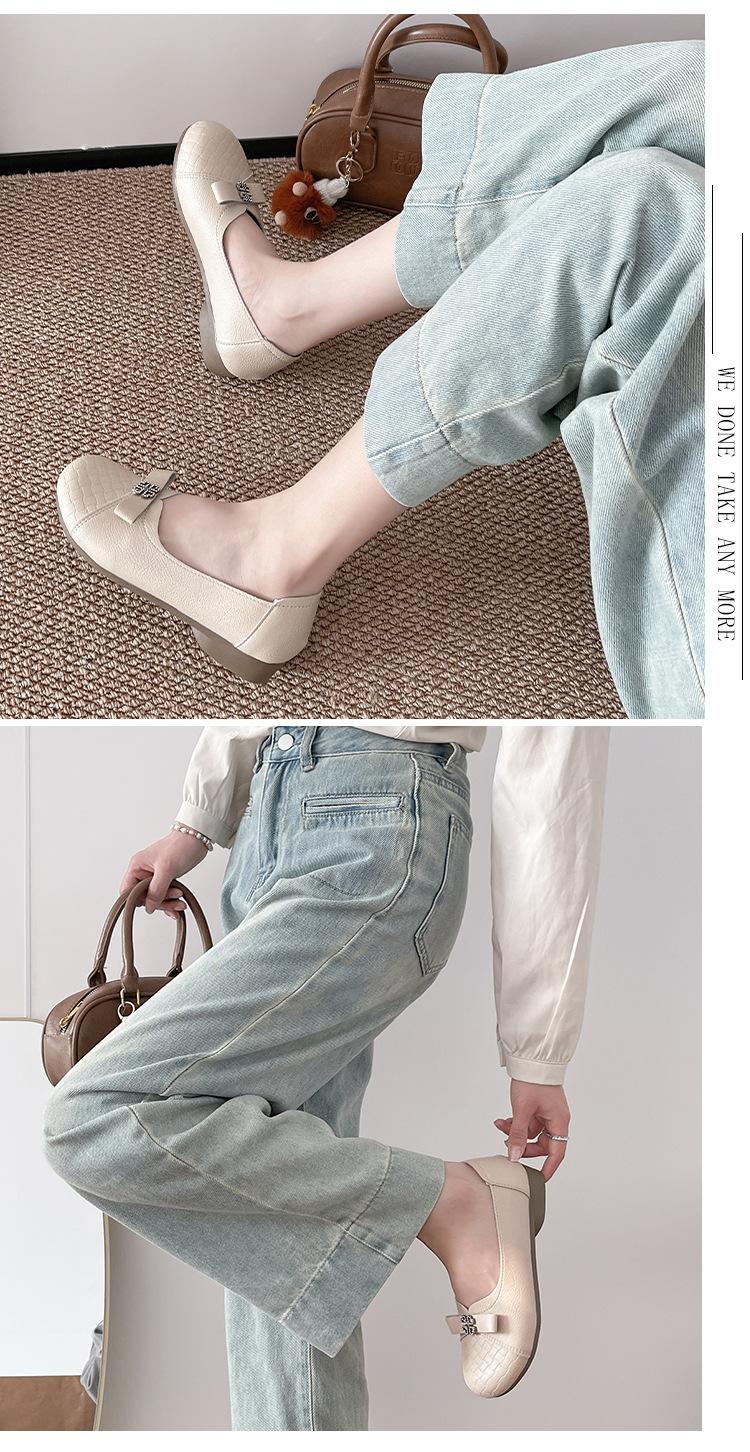 Sapatos baixos femininos primavera e verão 2025, novos sapatos individuais, sola macia, sapatos confortáveis para mães, bico redondo, boca rasa, sapatos de descasque macios para todos os gostos