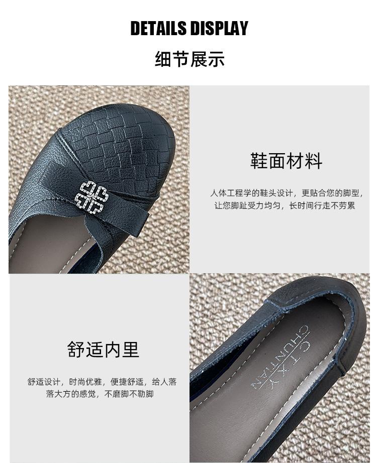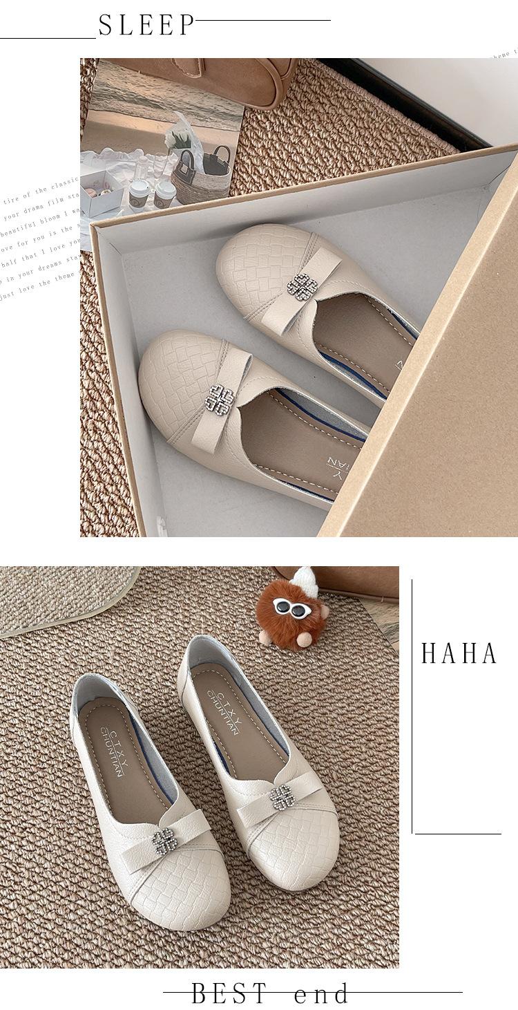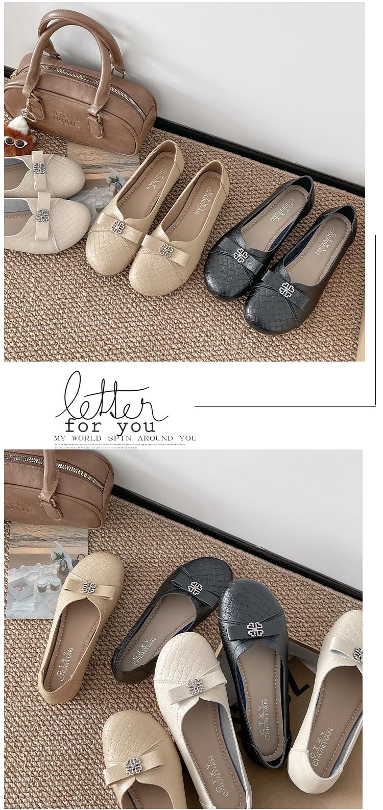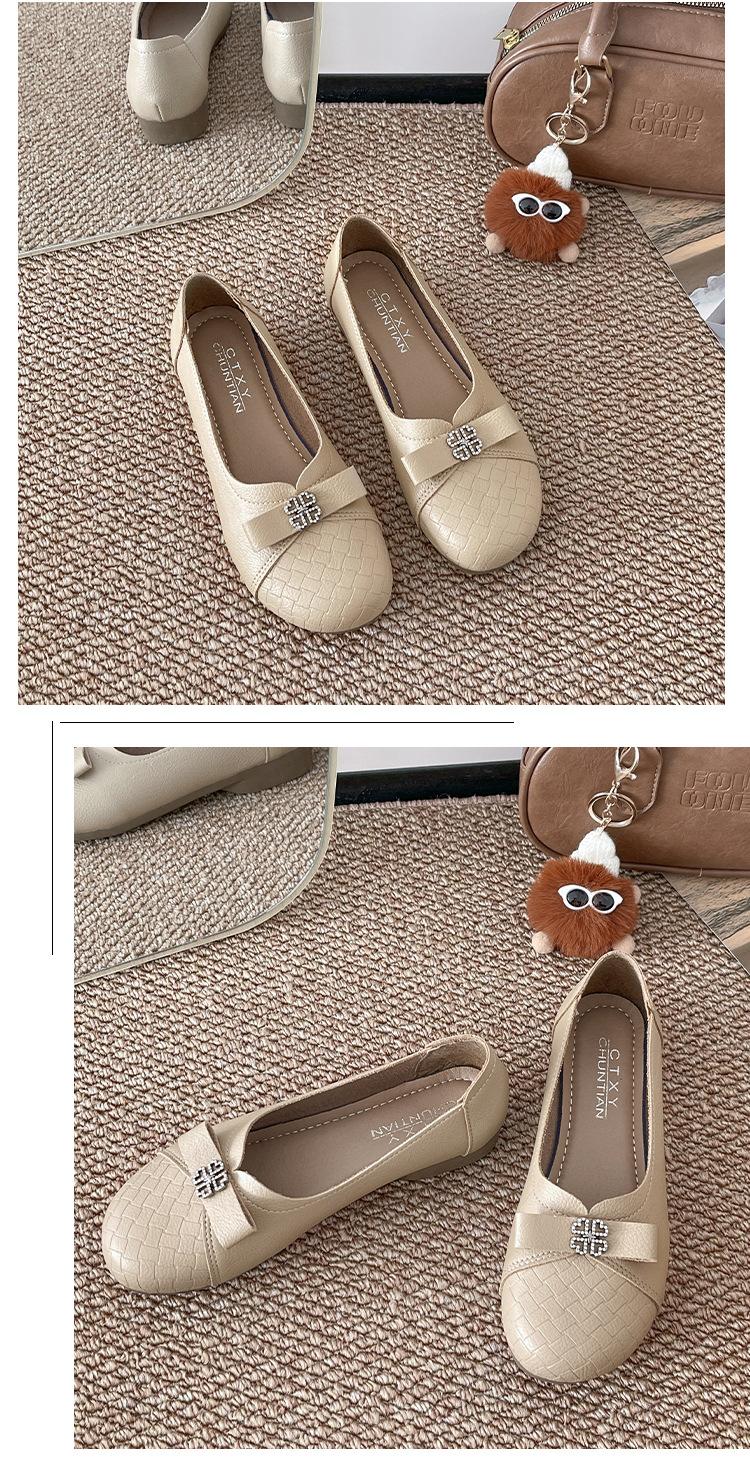 Sapatos baixos femininos primavera e verão 2025, novos sapatos individuais, sola macia, sapatos confortáveis para mães, bico redondo, boca rasa, sapatos de descasque macios para todos os gostos