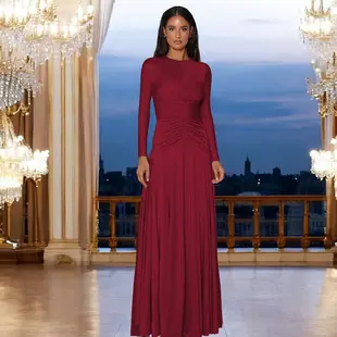 Roupas femininas transfronteiriças estilo europeu e americano 2025 inverno novo cor sólida manga longa plissado slim-fitting vestido longo moda temperamento vestido