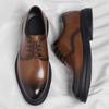 Sapatos de couro pequenos estilo coreano da moda, com cadarço, camada superior de couro bovino, sapatos masculinos, bico fino, sapatos sociais de couro, sapatos de casamento