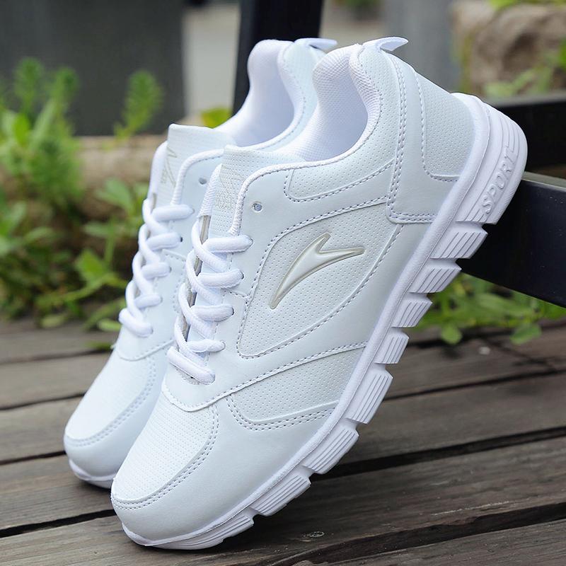 Tênis de malha feminino branco, novo tênis de primavera, calçado casual confortável, leve, para corrida, calçado de estudante para homens