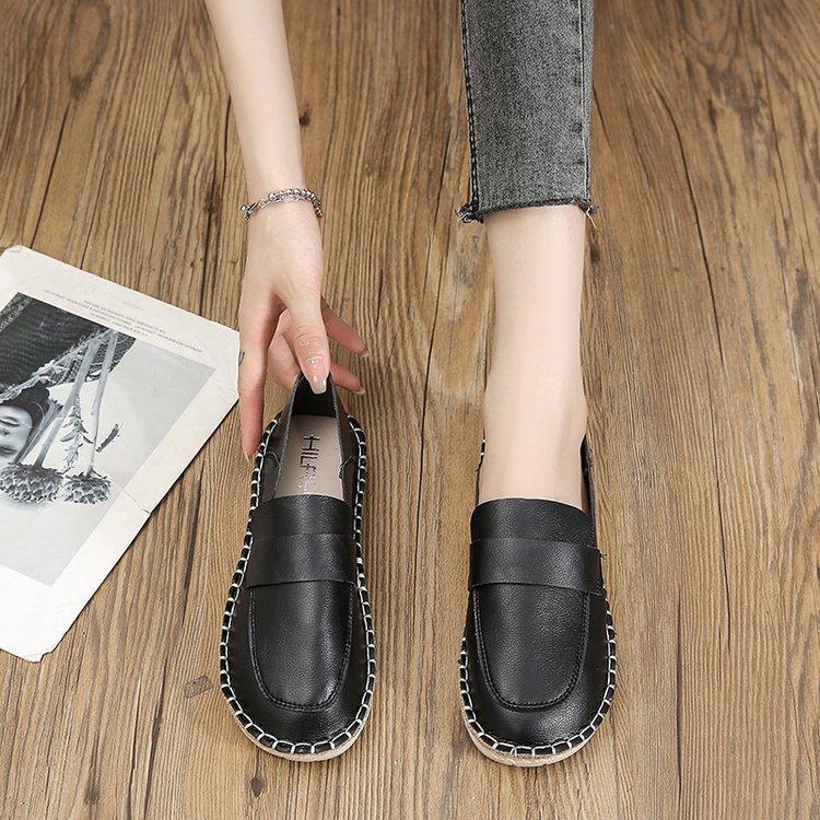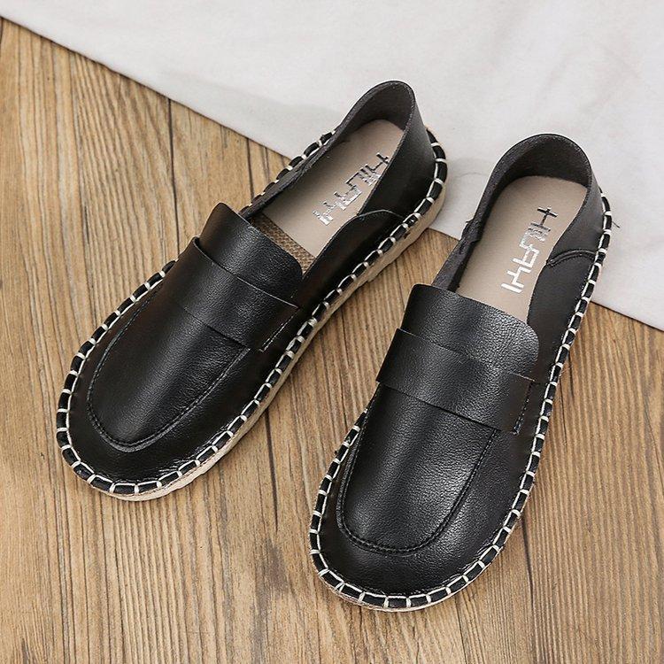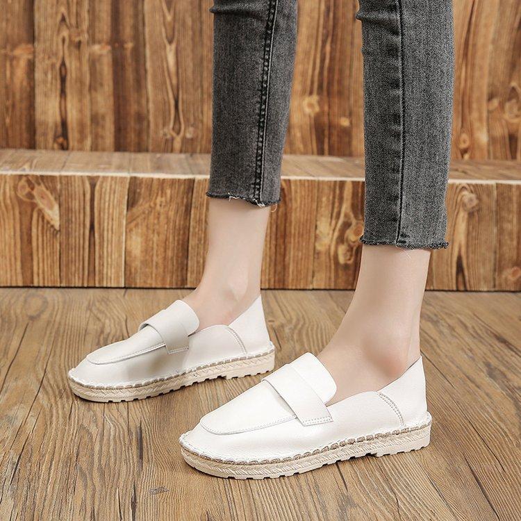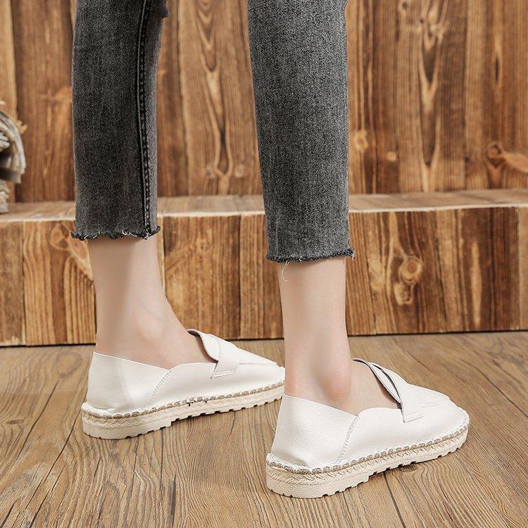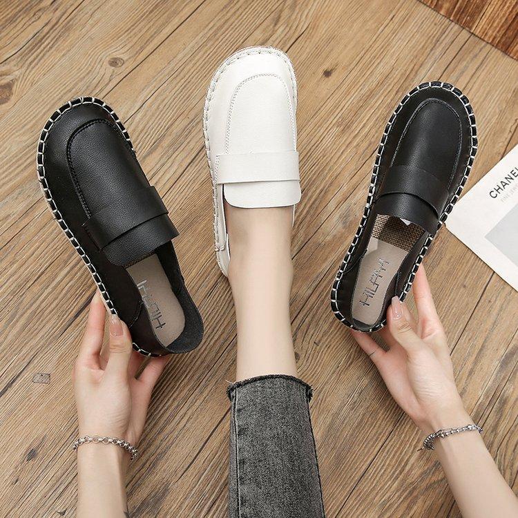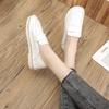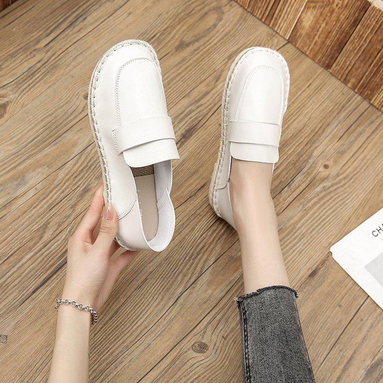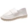 Mocassins de couro macio femininos, primavera e outono 2025, novos sapatos brancos de enfermeira, um passo preguiçoso, todos os tipos de sapatos baixos femininos