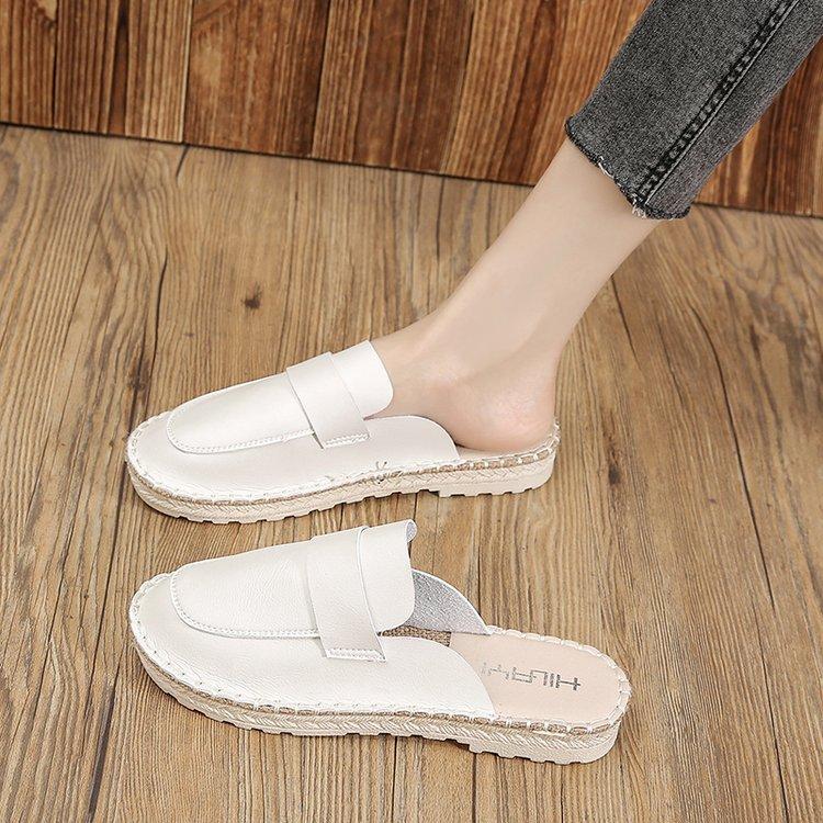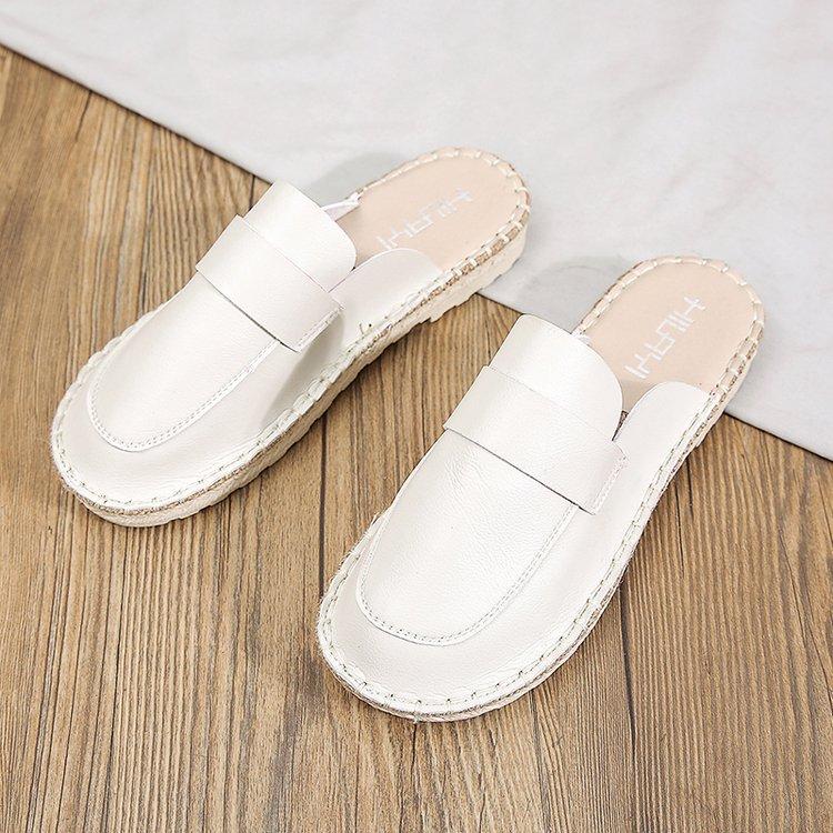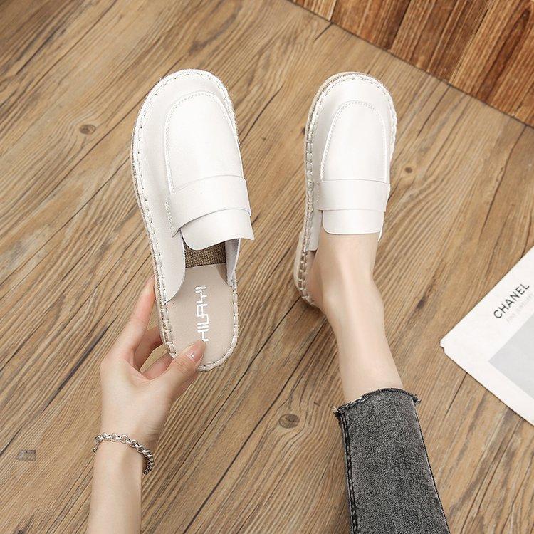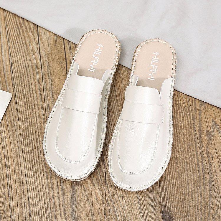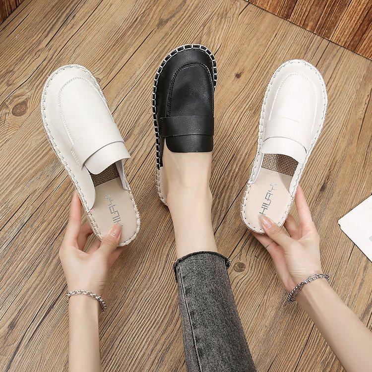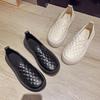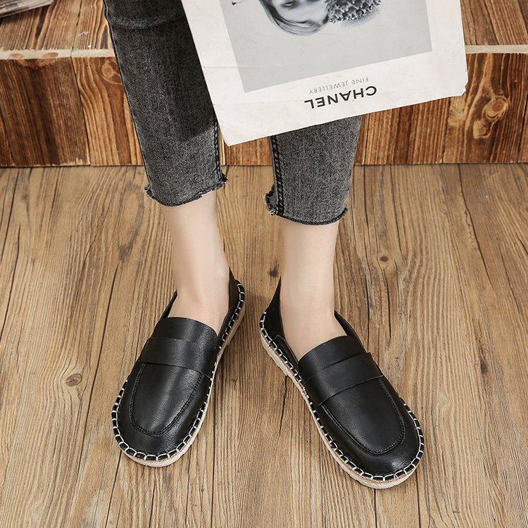 Mocassins de couro macio femininos, primavera e outono 2025, novos sapatos brancos de enfermeira, um passo preguiçoso, todos os tipos de sapatos baixos femininos
