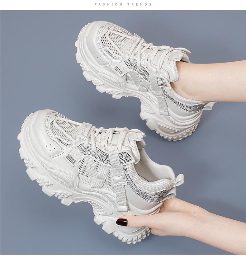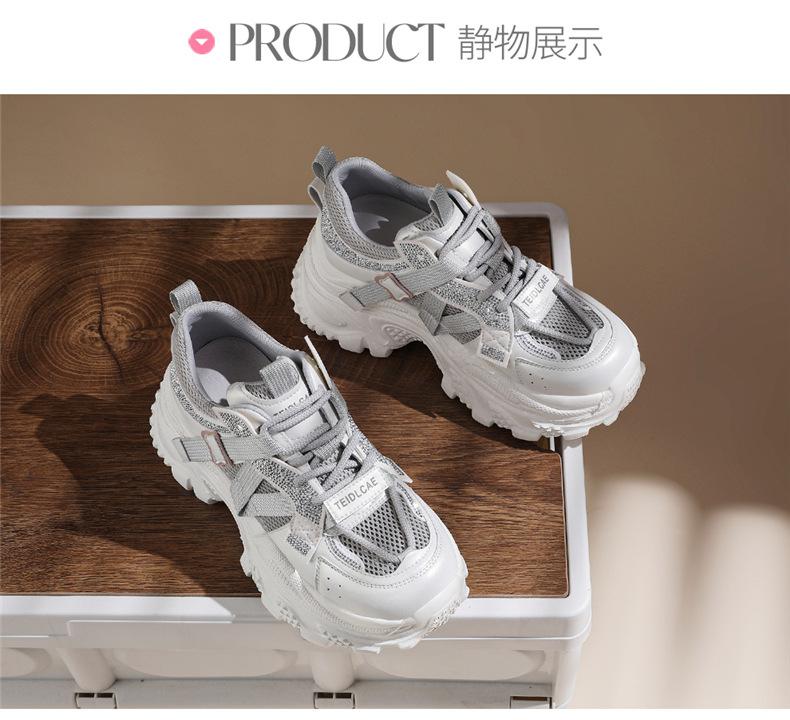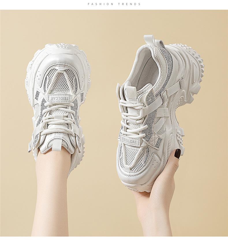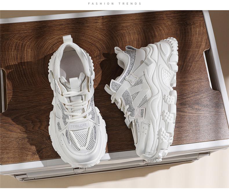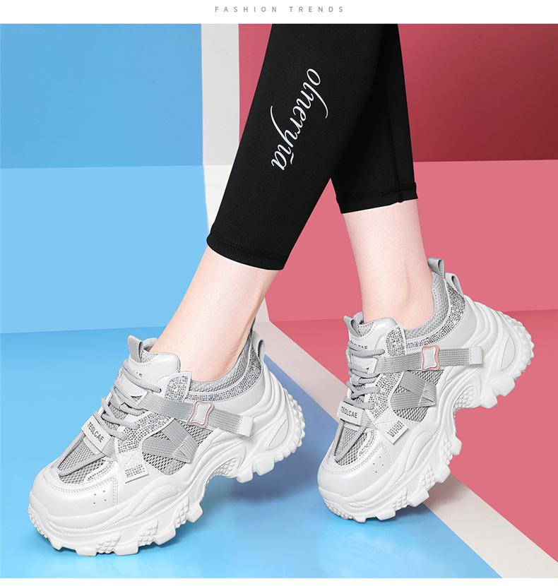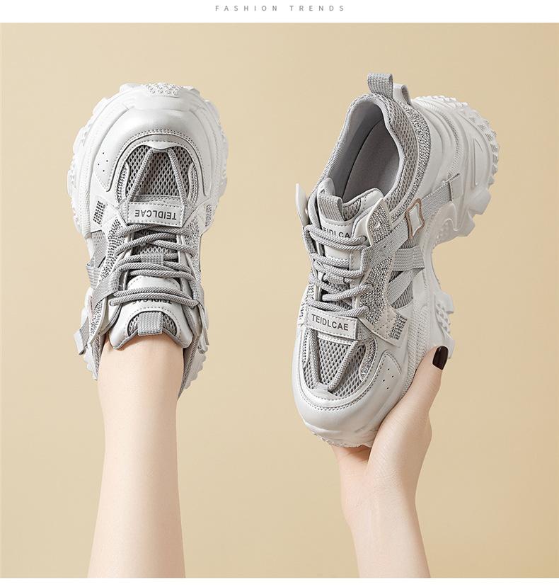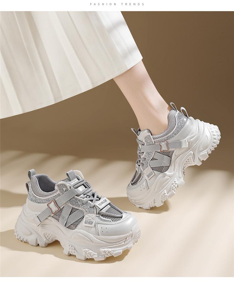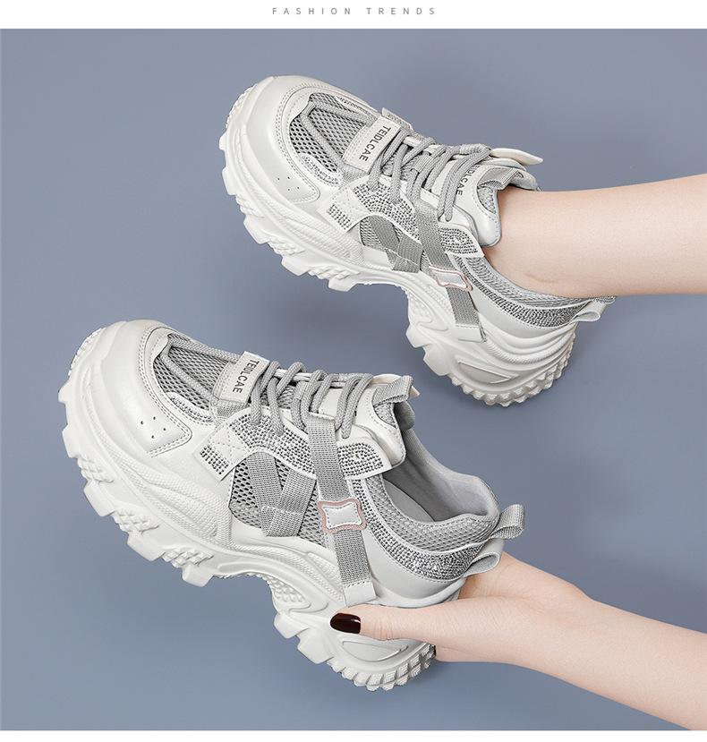 Sapatos de pai com sola grossa e malha respirável, novos sapatos esportivos casuais para mulheres, moda casual popular para primavera e verão