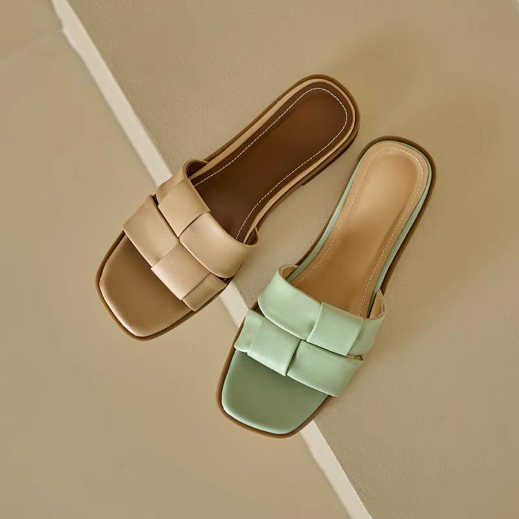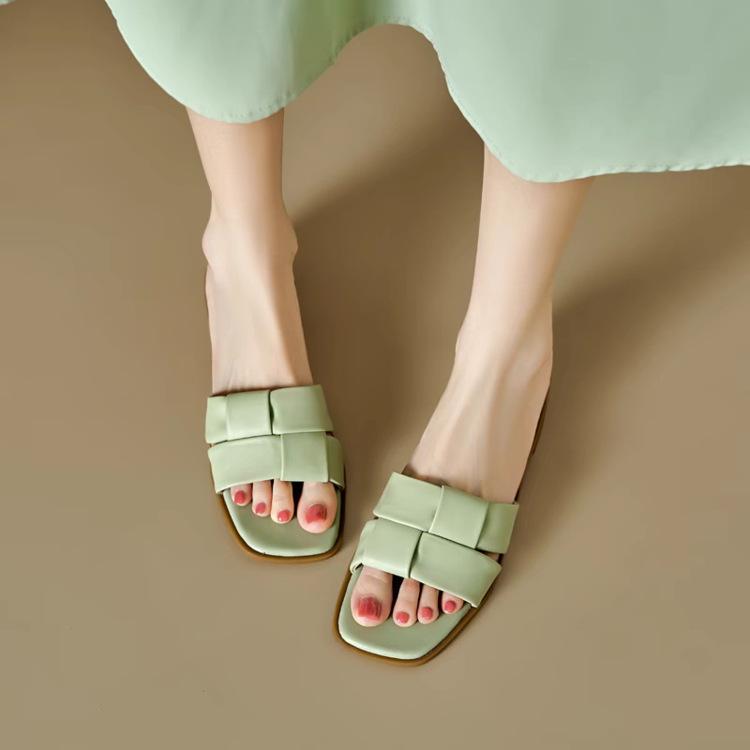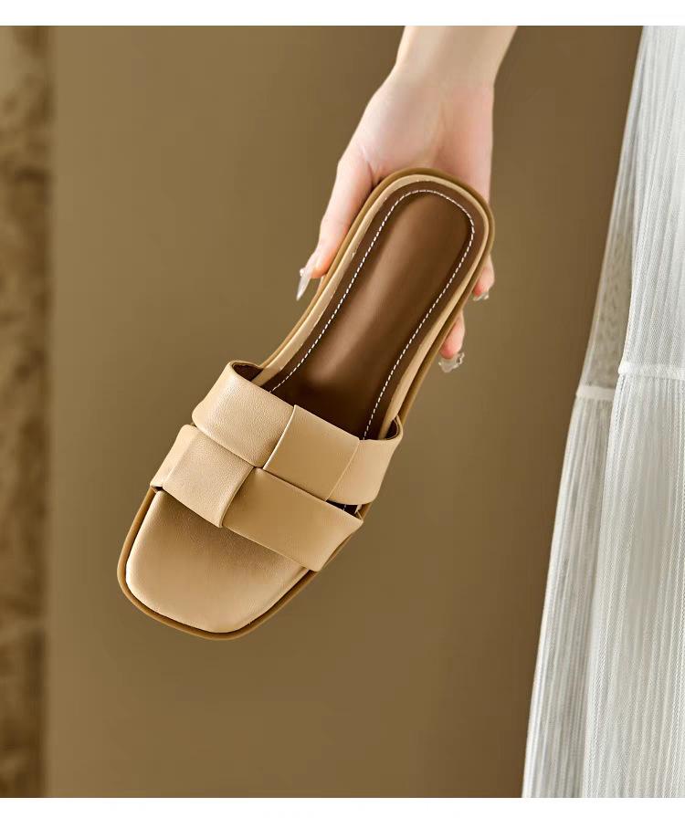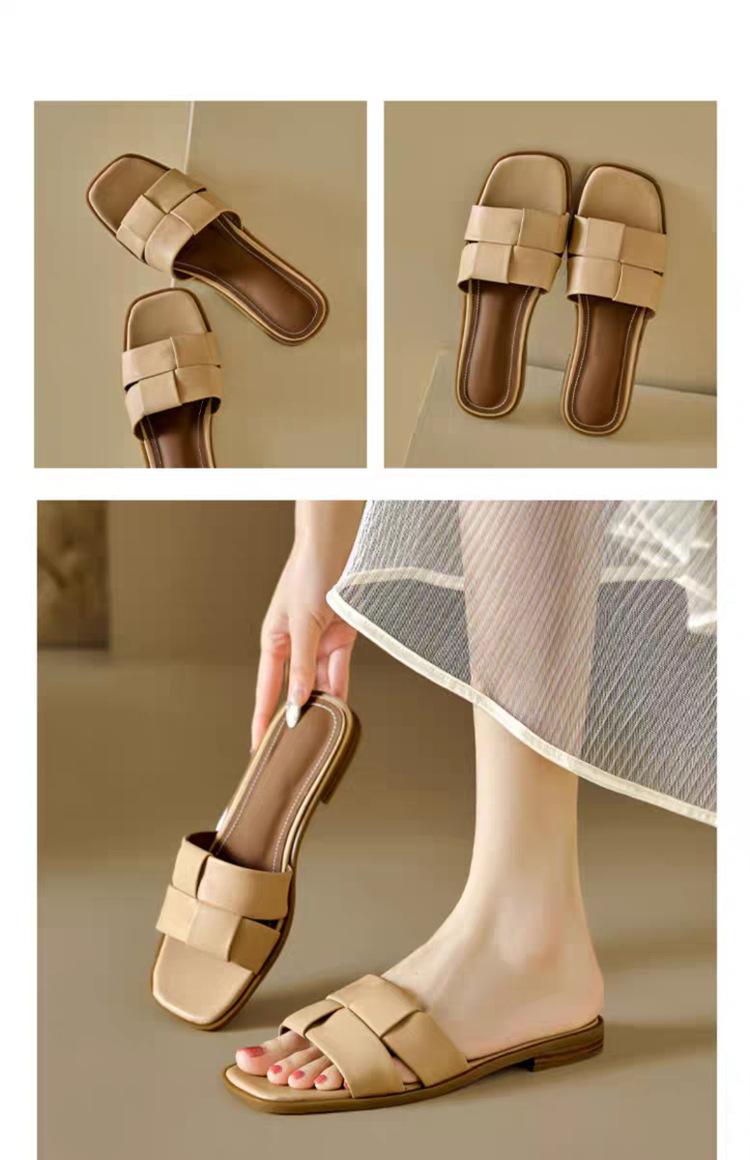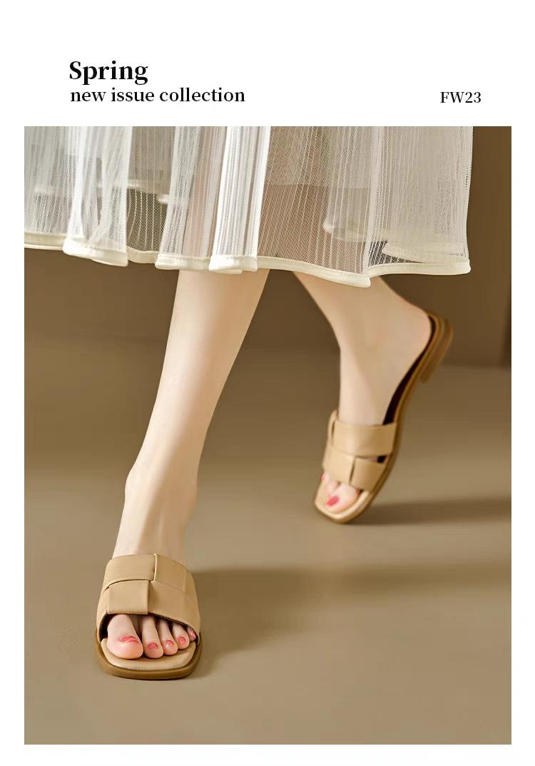 Sandálias Rasteirinhas Femininas 2024 Verão Novo Uso Externo Bico Quadrado Chinelos de Saia