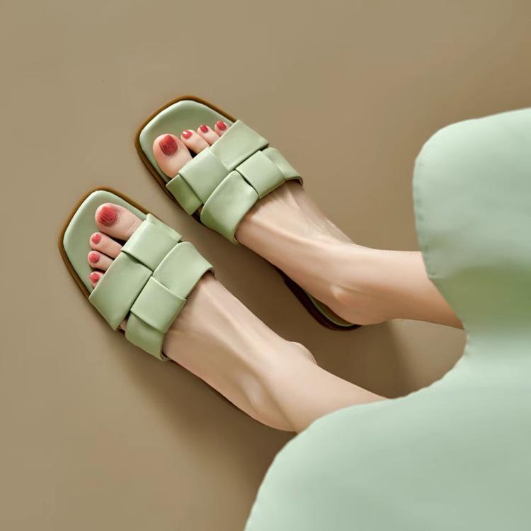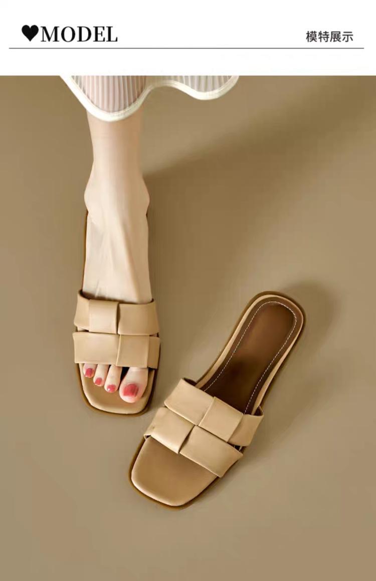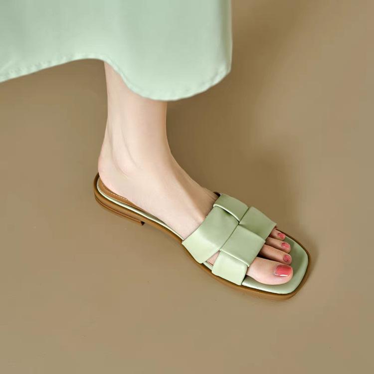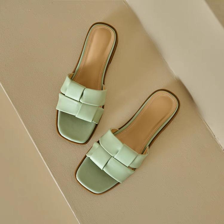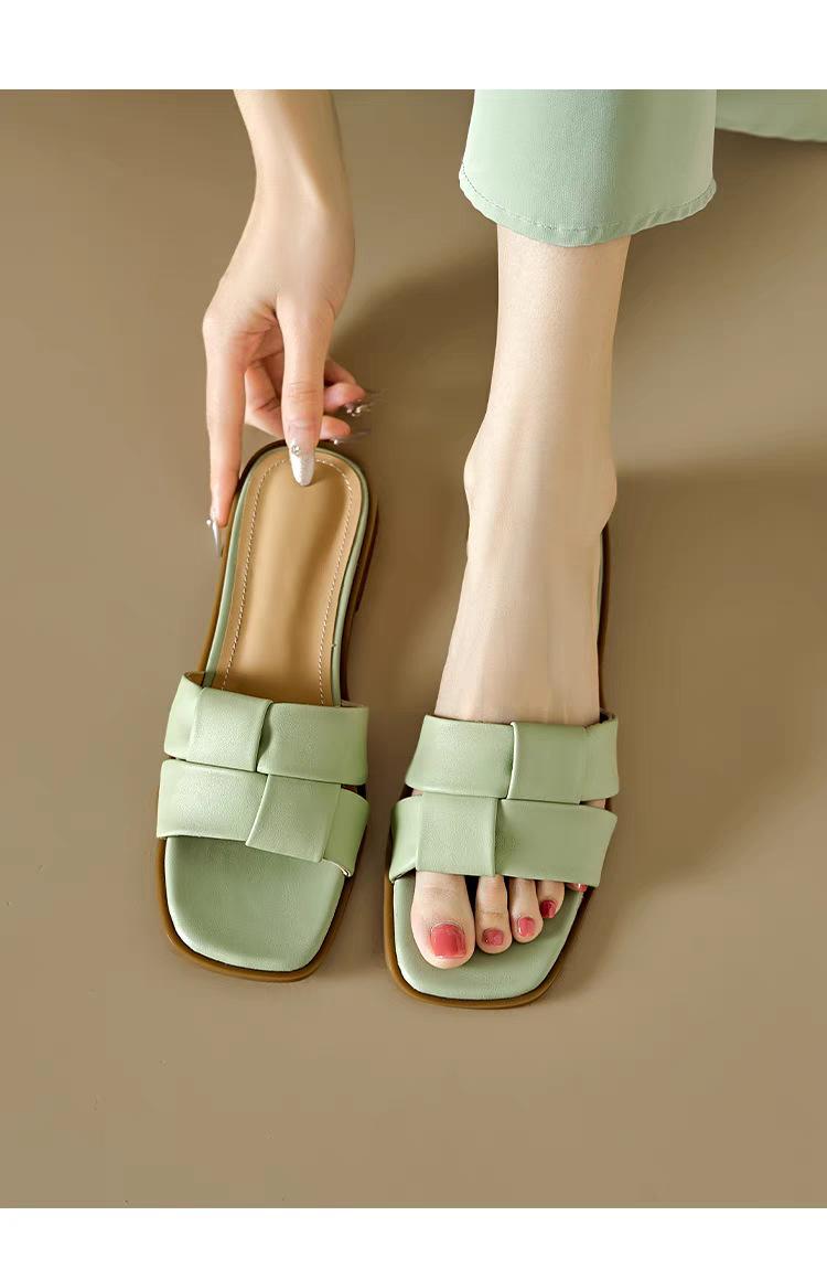 Sandálias Rasteirinhas Femininas 2024 Verão Novo Uso Externo Bico Quadrado Chinelos de Saia
