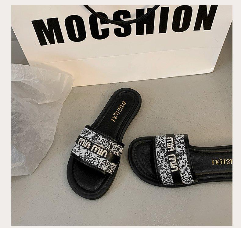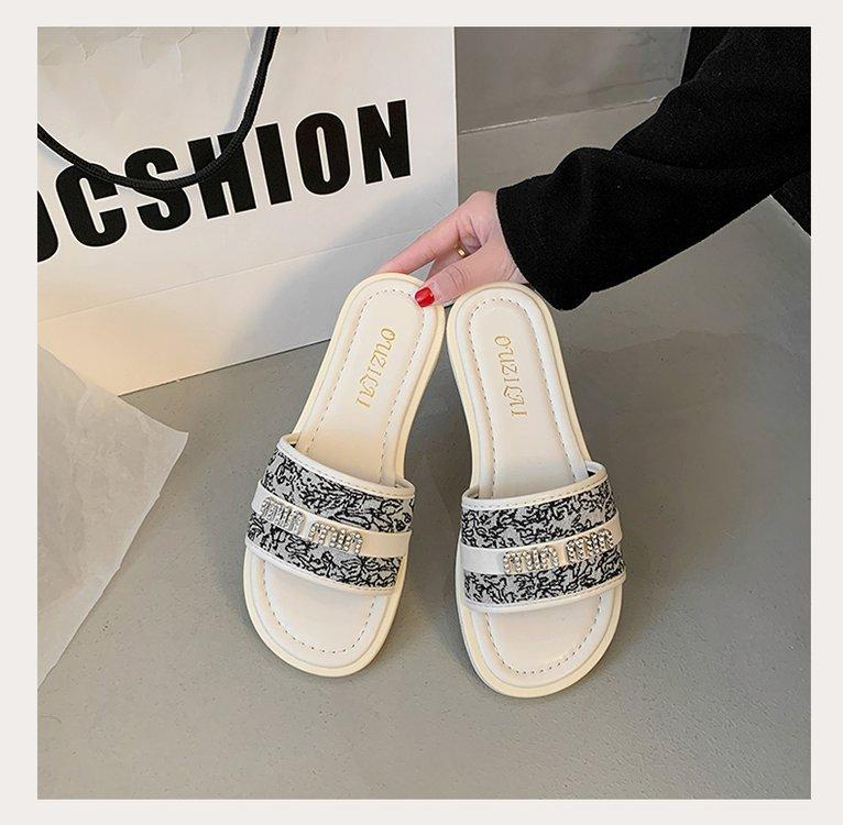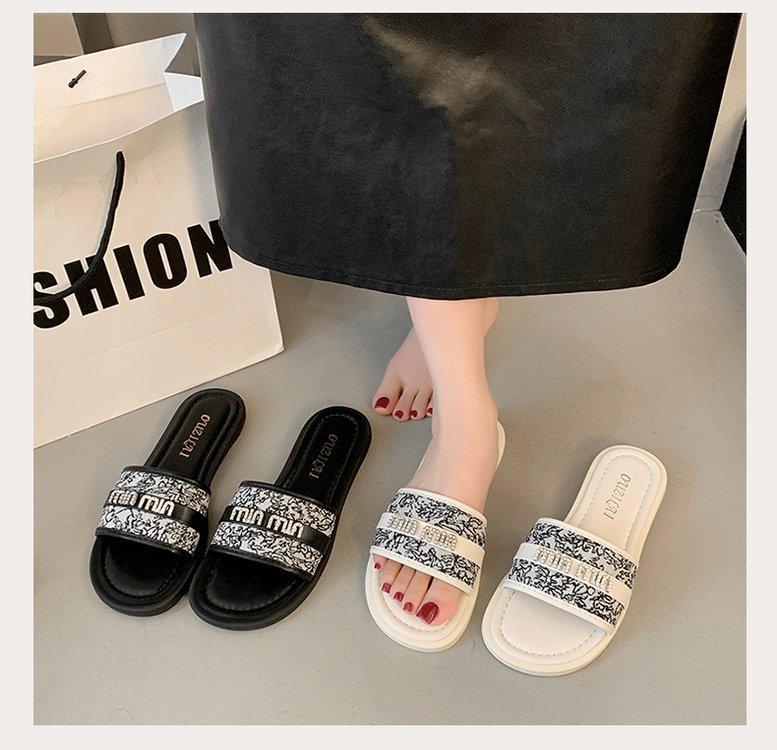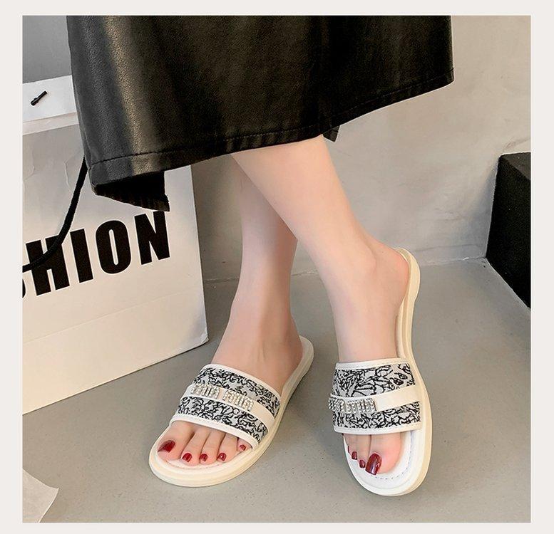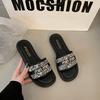 Chinelos estilo Chanel estilo francês feminino roupa de verão 2025 novo estilo celebrante da internet sandálias de praia rasas com strass da moda