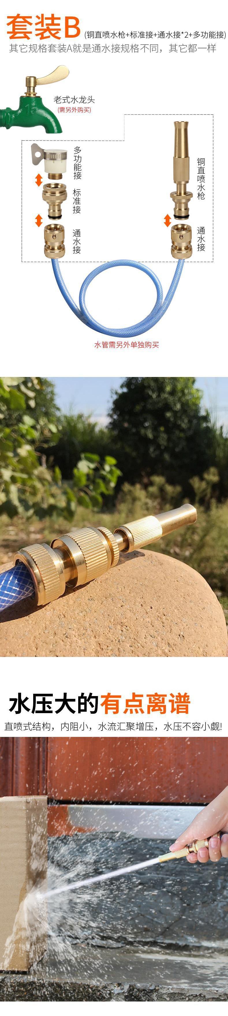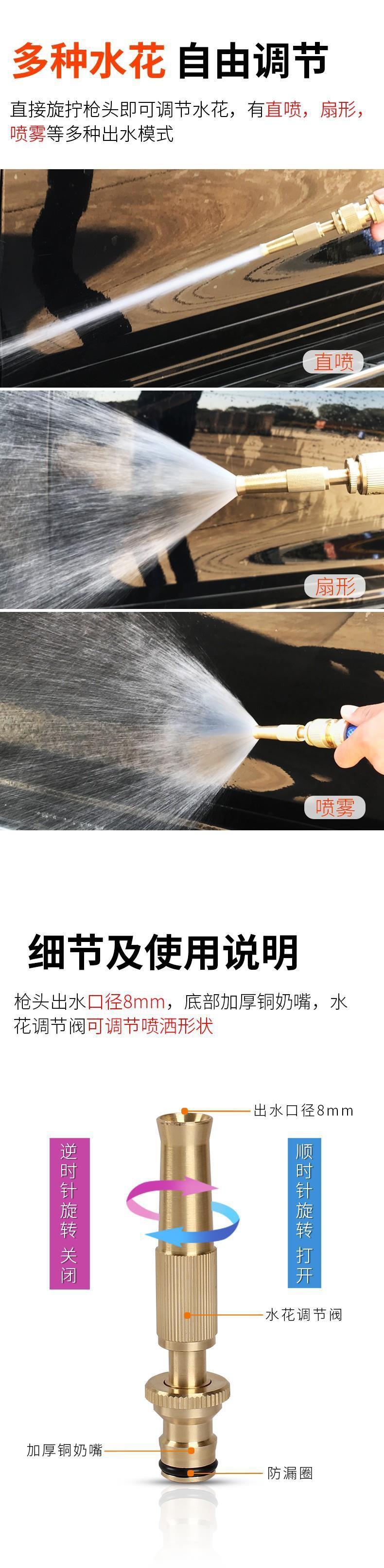 Pistola de água de alta pressão de cobre com injeção direta, escova de cobre para lavagem de carros domésticos, bico para pistola de água para lavagem de carros, cabeça de pistola de limpeza de reforço de carro