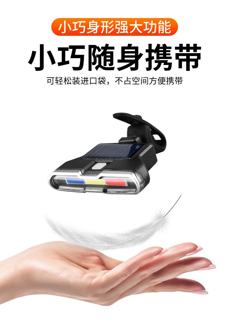 Luz traseira solar para bicicleta, luz de advertência noturna recarregável por USB, acessórios para ciclismo noturno, luz de 7 marchas