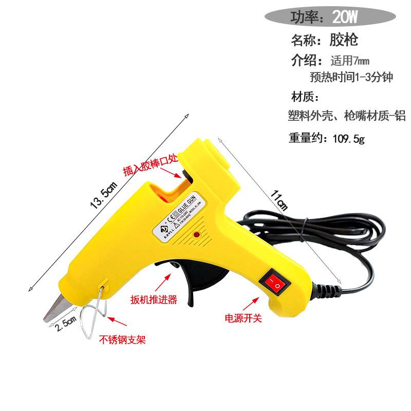 Pistola de cola quente de 20 W com interruptor, pistola de cola elétrica artesanal faça você mesmo, bastão de cola, medidor europeu e americano com luz indicadora, pistola de cola quente