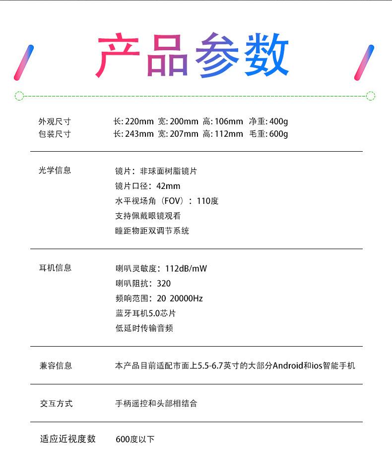 Novos óculos VRPARK HD VR filme jogo fone de ouvido bluetooth caixa inteligente tudo em um atacado óculos VR