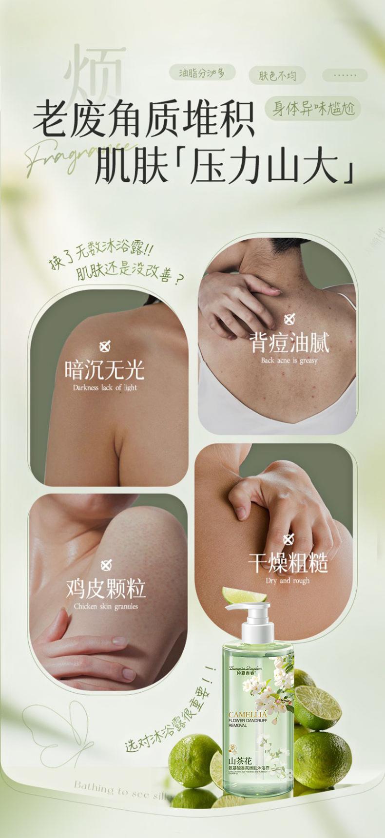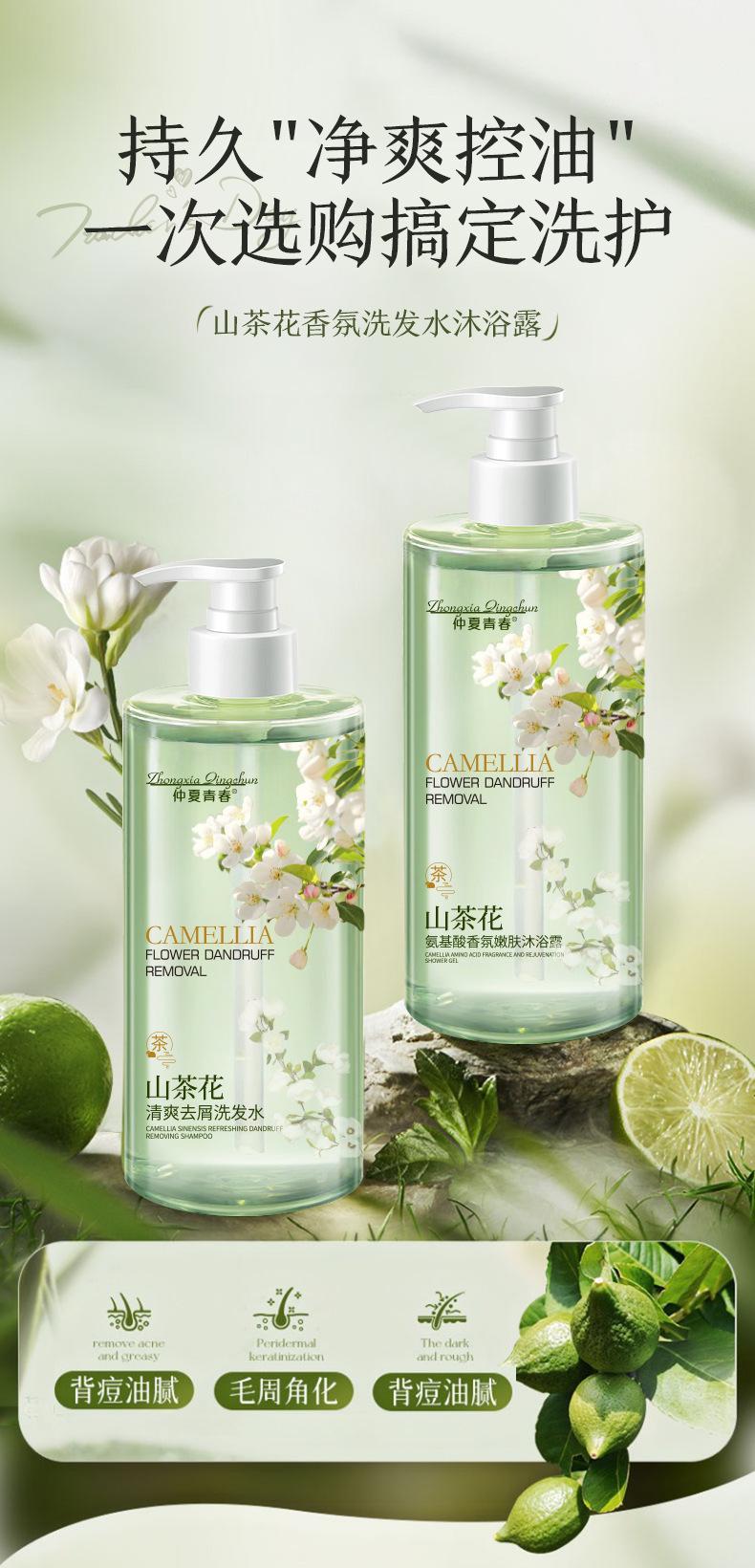 Camélia Aminoácido Perfume Shampoo Gel de Banho Refrescante Anticaspa Fofo Shampoo Dropshipping