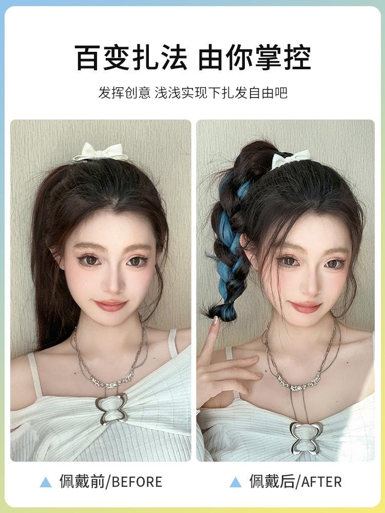 Peruca com rabo de cavalo colorido e mechas trançadas, trança longa com dopamina, artefato de trança, bola de cabelo autoenrolável