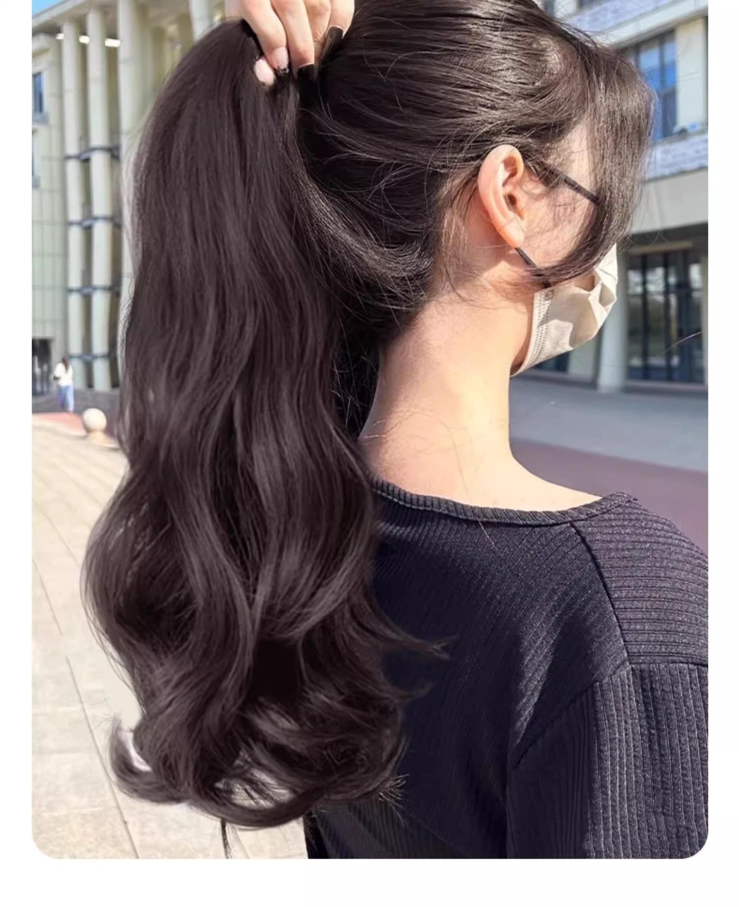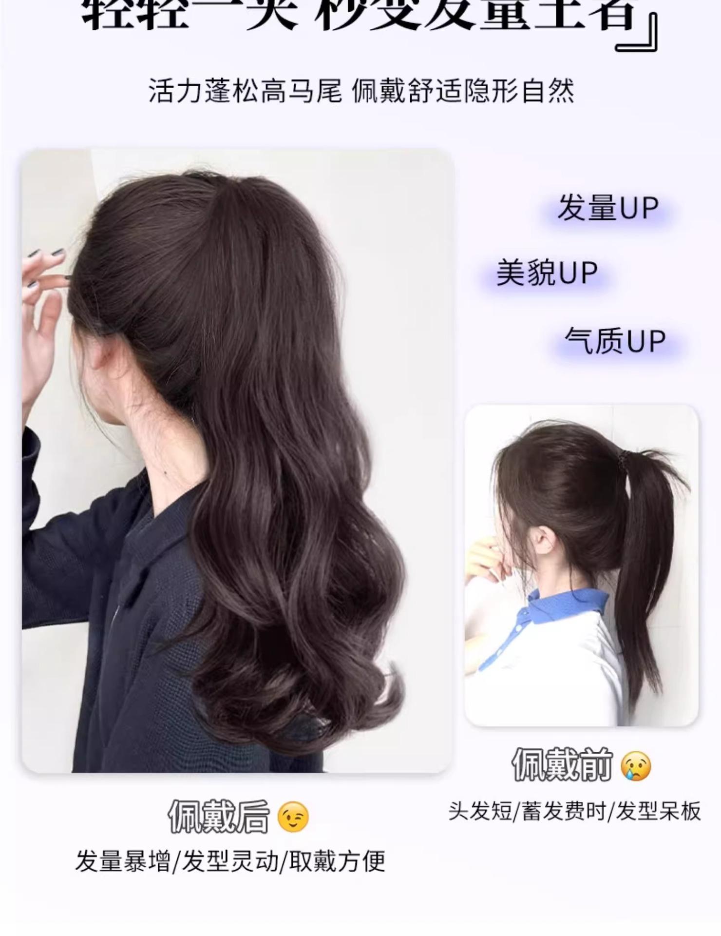 Compre Pêra Flor Rolo Hot Girl Mulheres Online Celebridade Agarrar Clipe Cavalinha Cabelo Longo Cacheado Onda Grande Estilo Estrangeiro Simulação Cabelo Sem Costura Alto e Baixo Rabo de Cavalo no atacado no Joom.pro