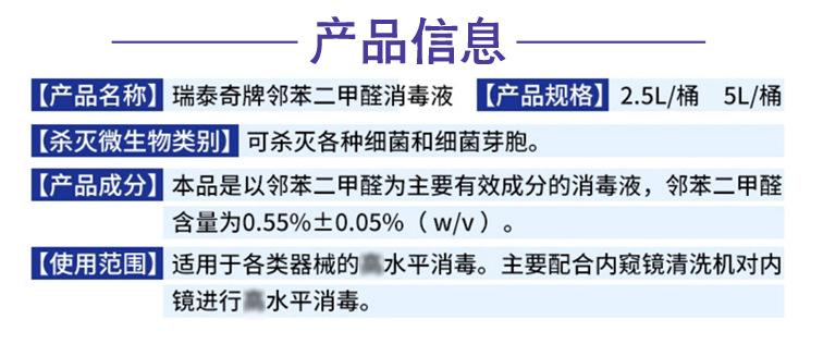 Desinfetante Ritech o-ftalaldeído, dispositivo médico com cilindro de 5L, endoscópio macio, altamente desinfetante OPA