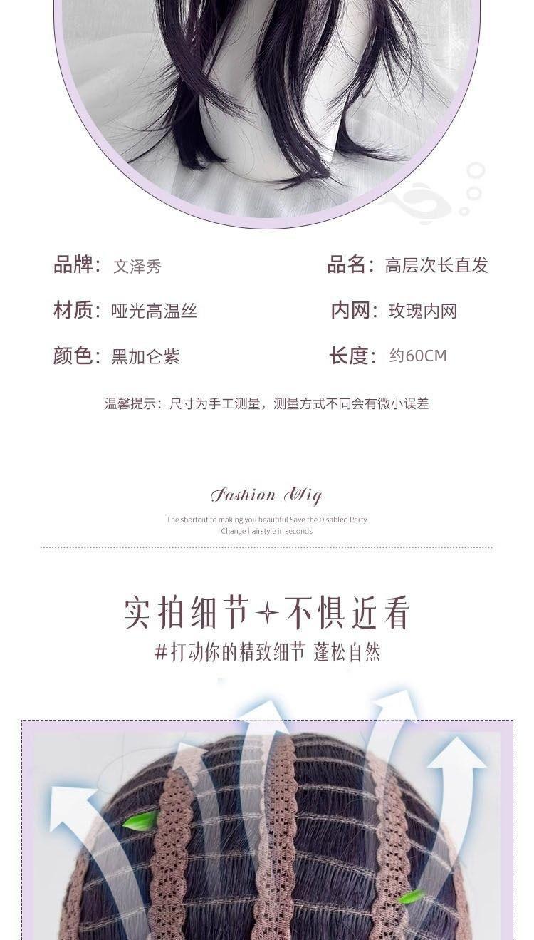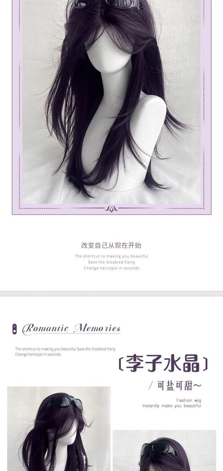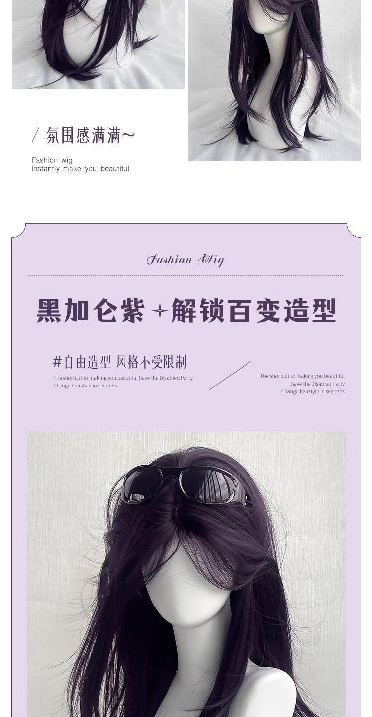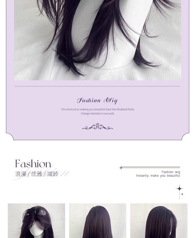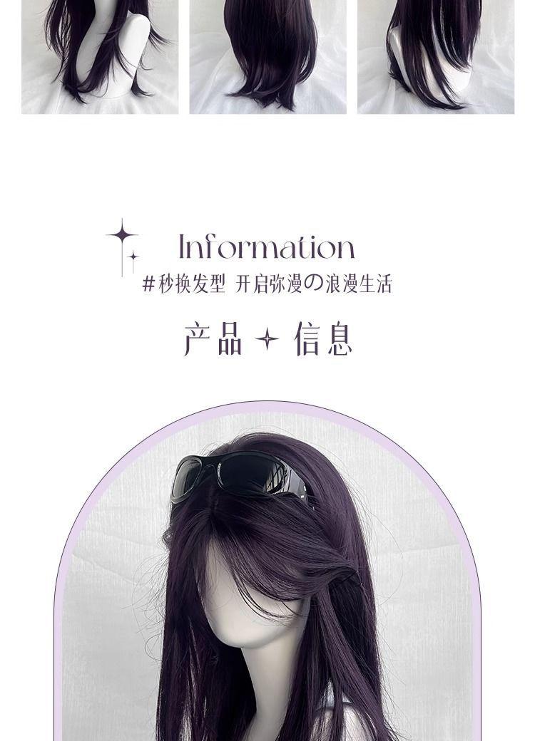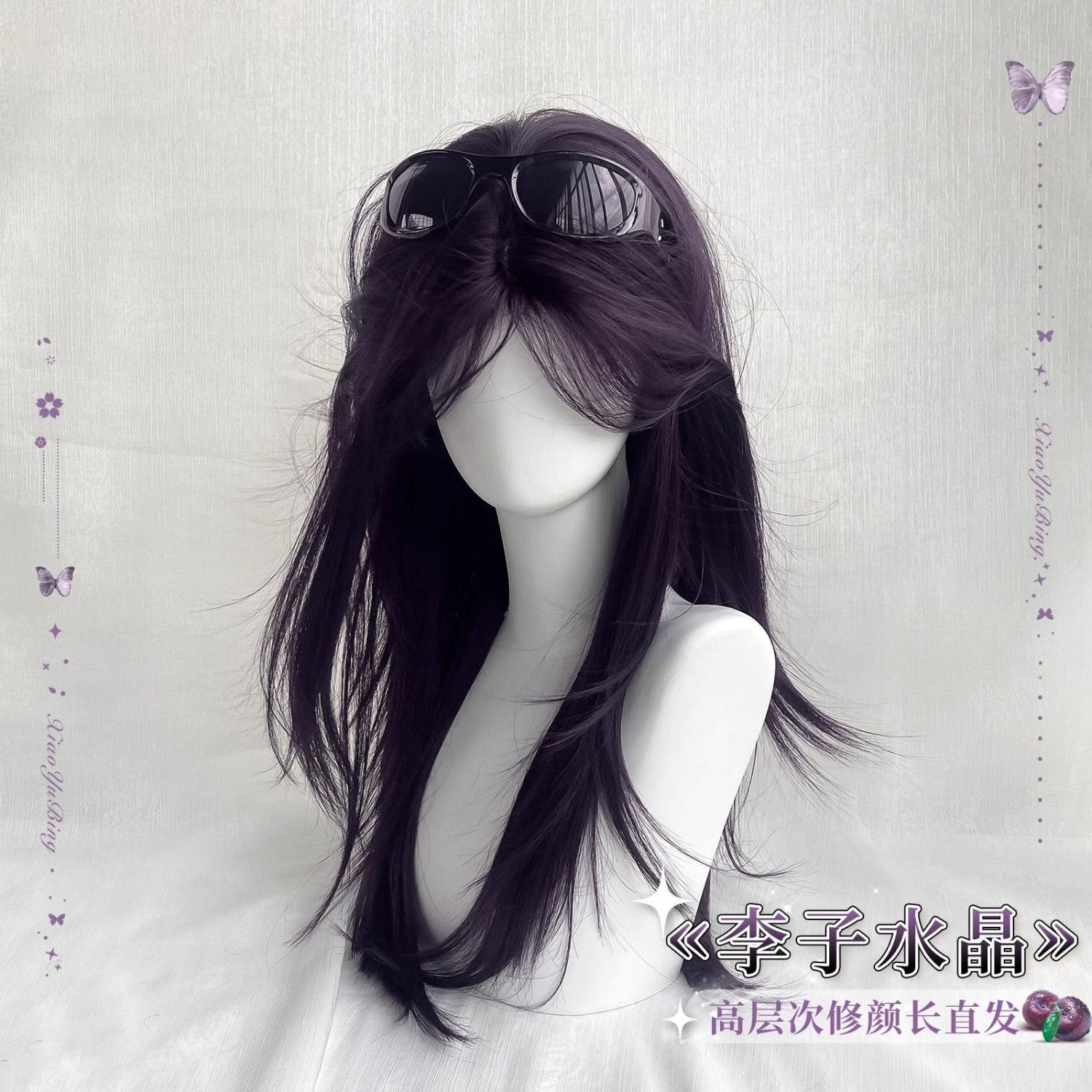 Peruca feminina groselha preta roxa, média-alta, laminada, longa, lisa, diária, natural, cobertura total da cabeça