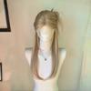 [Creme rosa e branco] Peruca feminina testa renda estilo diário rosa platina rede celebridade cabeça cheia cabelo longo encaracolado peruca