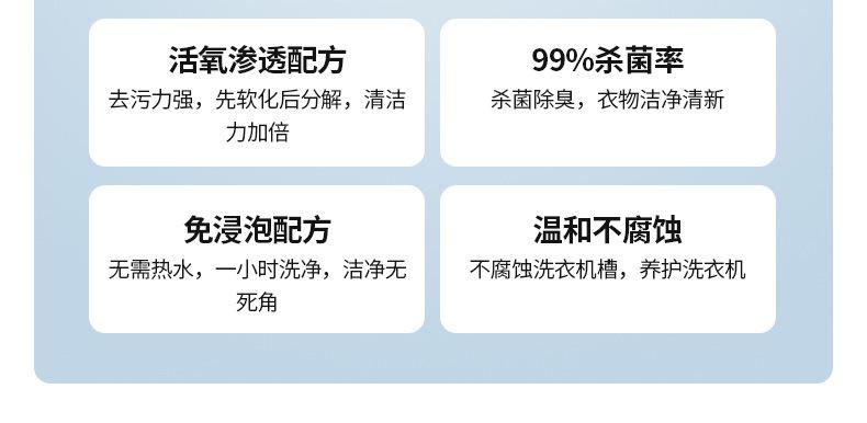 Materiais do produto: partículas de oxigênio ativo, bicarbonato de sódio, percarbonato de sódio, vários surfactantes, bactericidas, etc. Tamanho único: 6,9*6,9*17cm