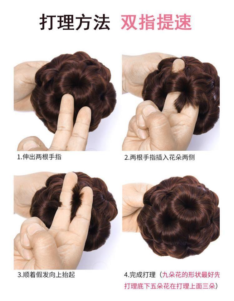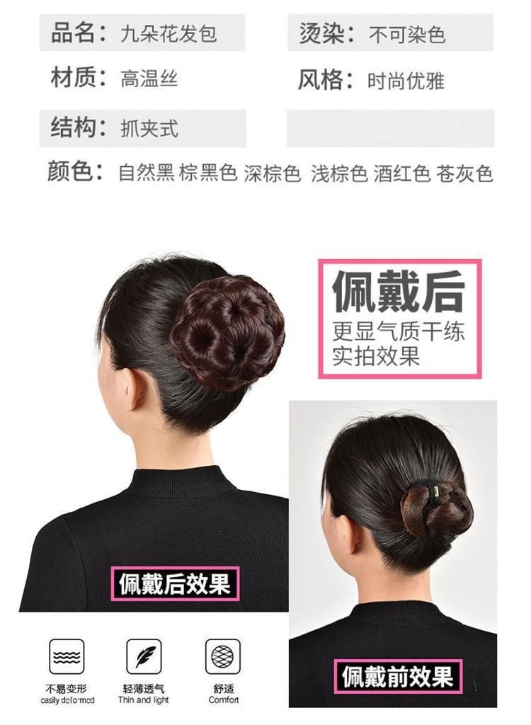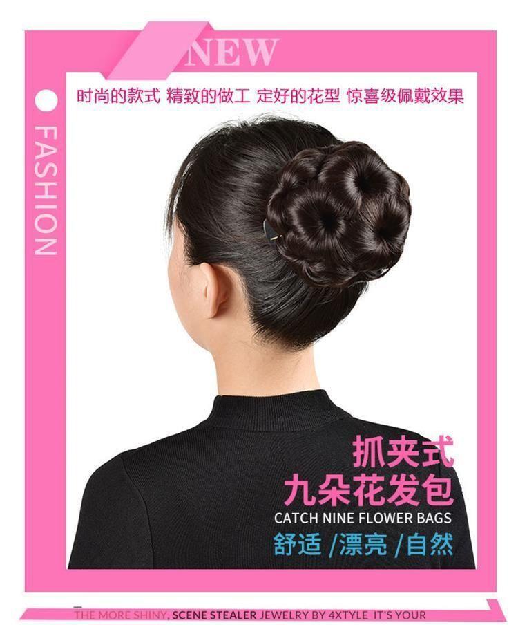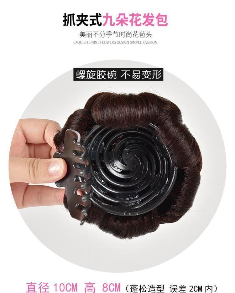 Peruca de cabeça esférica feminina, com nove flores, bolsa para peruca, penteado feminino, suporte de flores, modelador de cabelo de cabeça de noiva