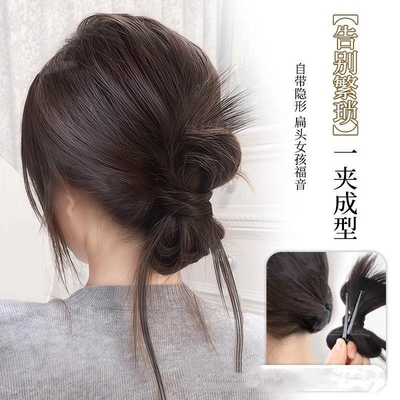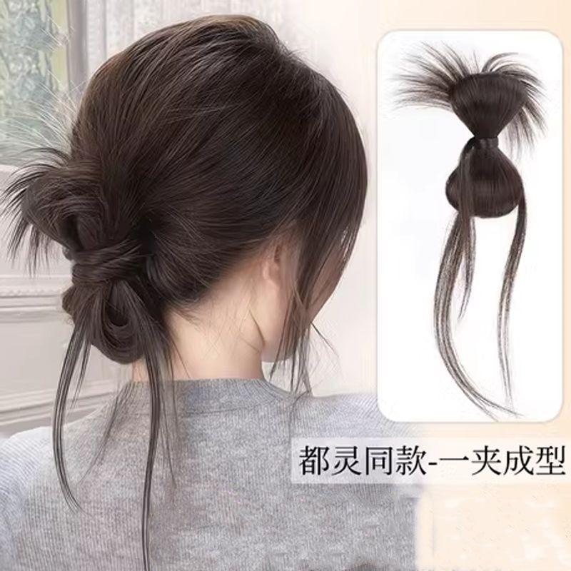 Penteado Coque Falso para Mulheres com Cabelo Artificial, Aplique de Cabelo com Laço, Rabo de Cavalo Baixo, Penteado Coque Fofo
