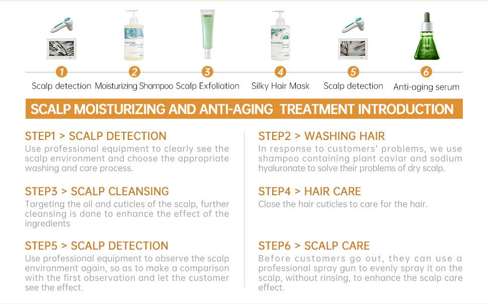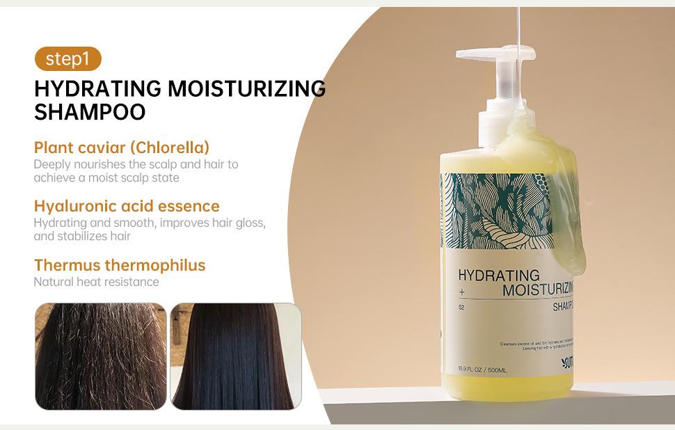 Moisturizing and hydrating shampoo 500ml, Silky hair mask 500ml, Hydrating exfoliating gel 150ml, Scalp revita...