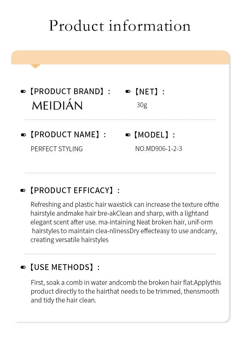 Meidian Bastão de Cera Sólida para Cabelo Bastão para Cabelos Quebrados Finalizador de Cabelos Quebrados Creme Finalizador Matte de Longa Duração Modelador Bastão de Cera para Cabelo