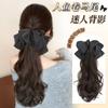 Peruca de rabo de cavalo feminina com laço grande e onda, presilha de fixação, rabo de cavalo alto, cabelo artificial, cabelo longo e cacheado, fofo, trança falsa baixa