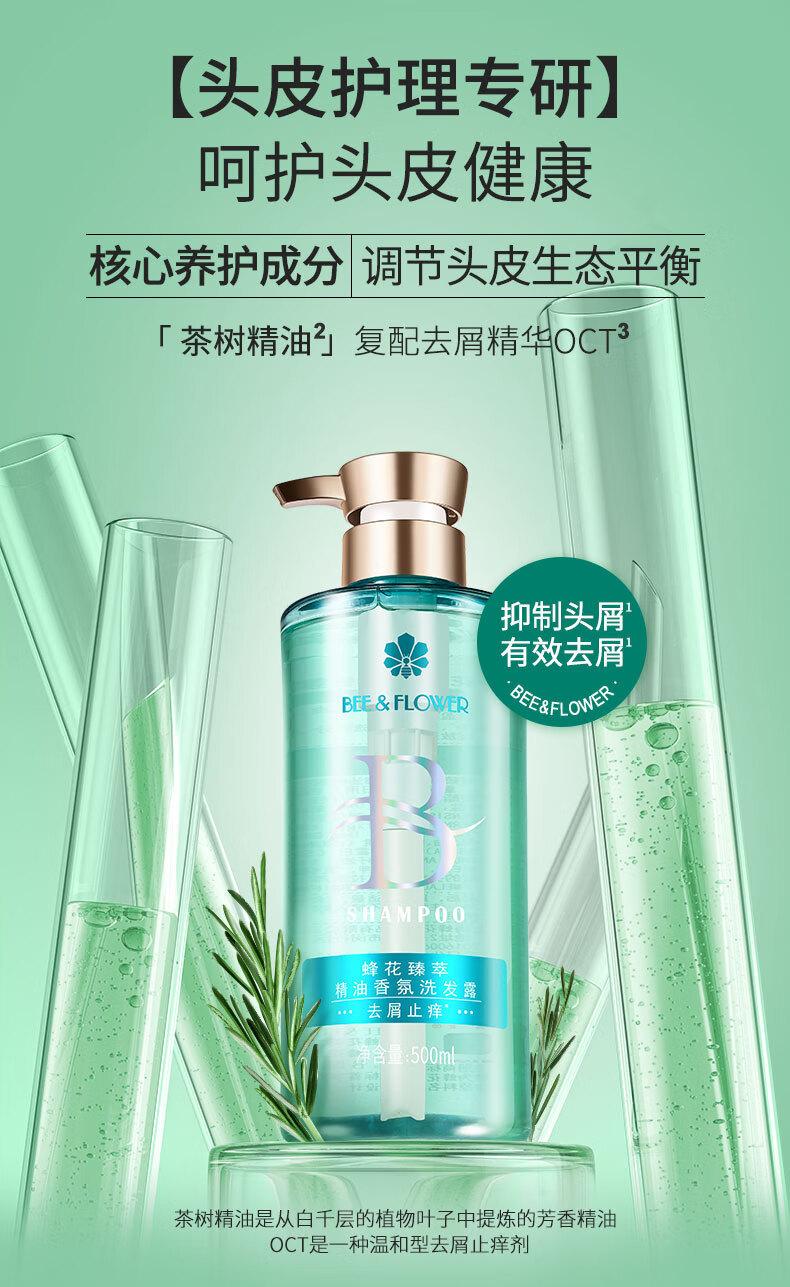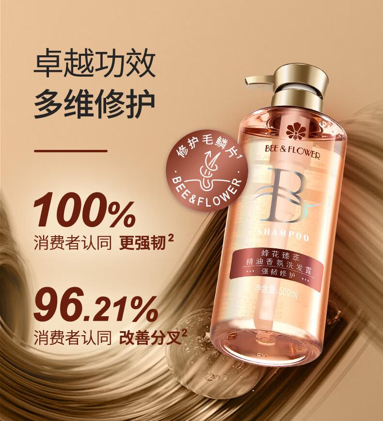 Shampoo com Óleo Essencial de Flor de Abelha Shampoo com Fragrância Reparador Forte e Resistente Anticaspa Anticoceira Controle de Oleosidade Cuidado para Couro Cabeludo Macio