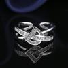 Anel de dedo indicador elegante e luxuoso com letras de nicho europeu e americano, anel aberto criativo, estilo frio e elegante