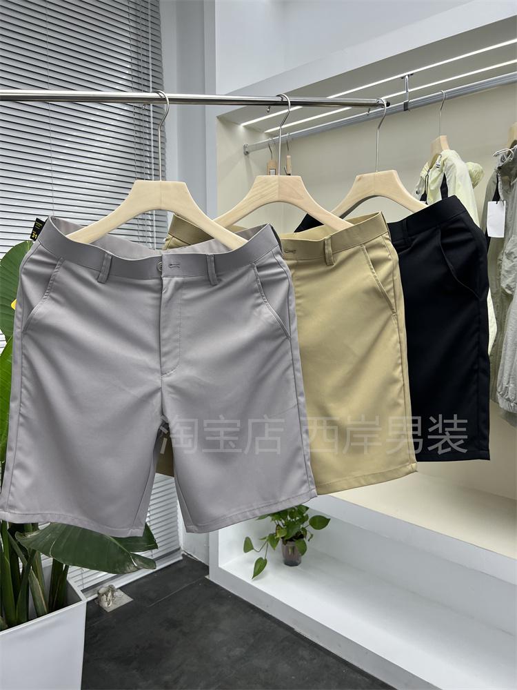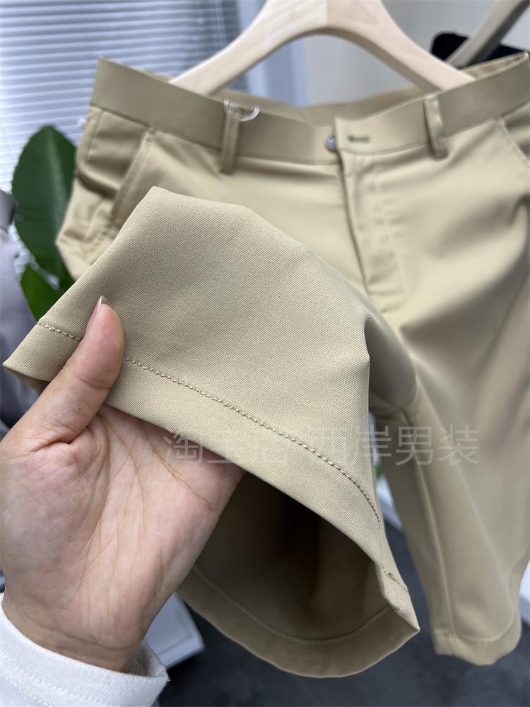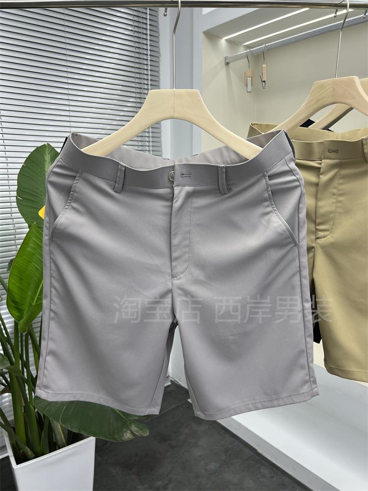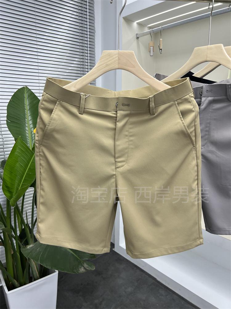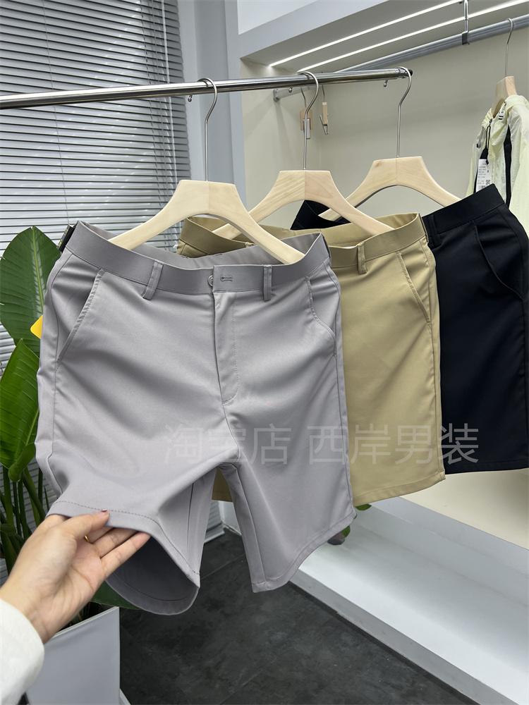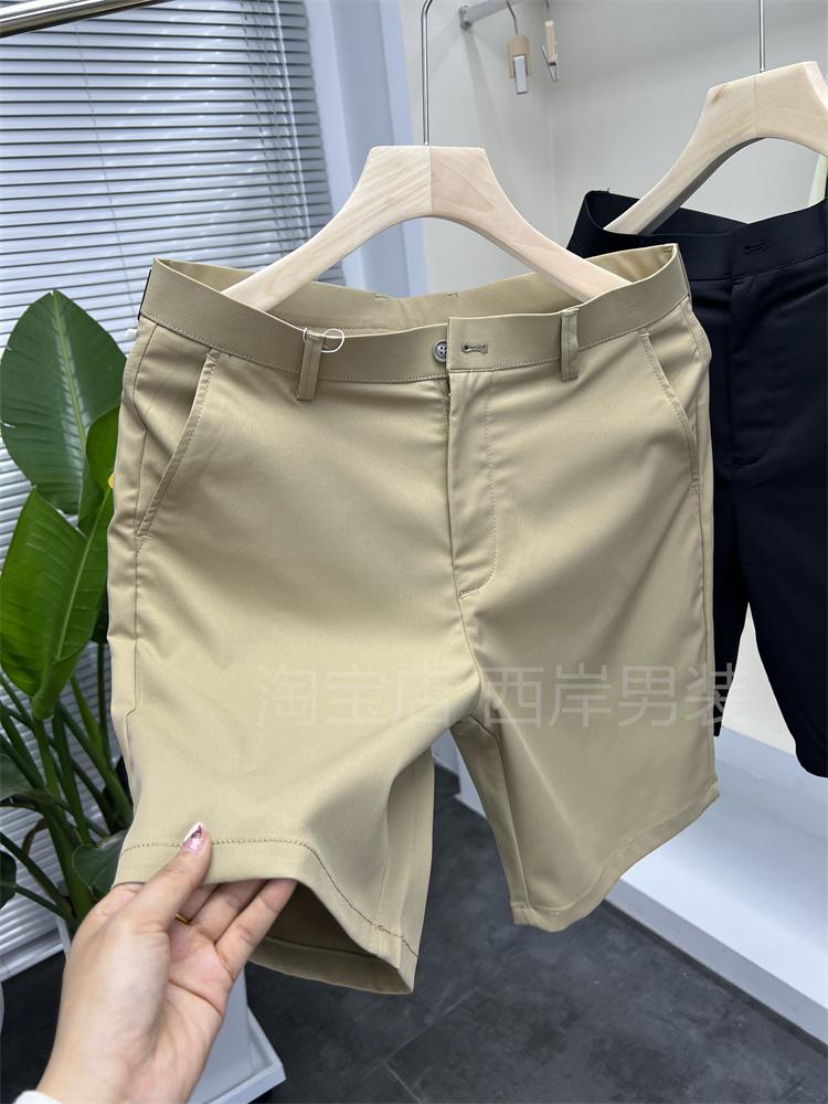 Tecido de sarja lavado! Verão Respirável Micro-elástico Masculino Negócios Casual Cor Sólida Calças Retas Shorts