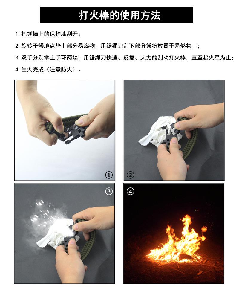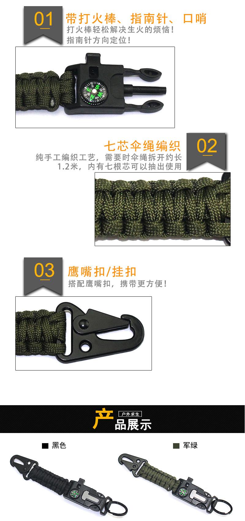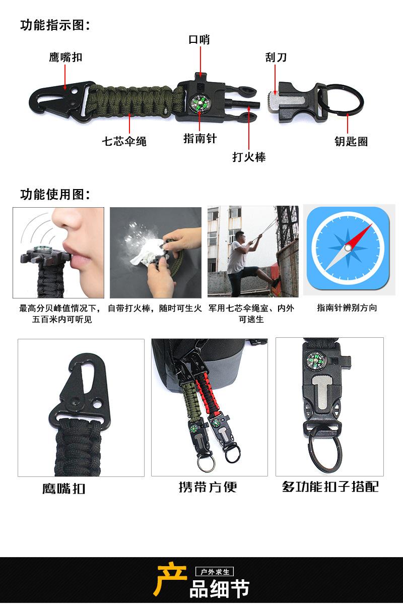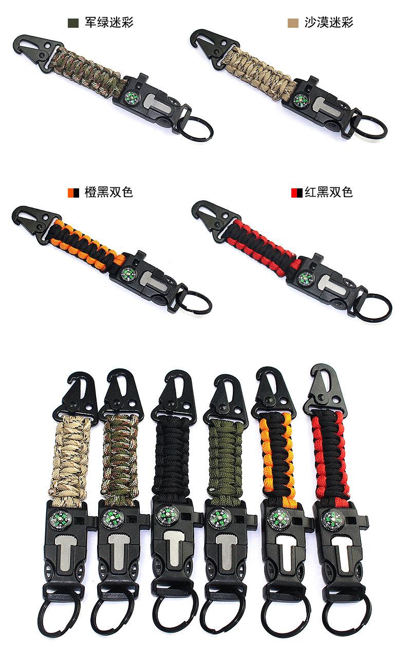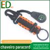 Chaveiro de sobrevivência multifuncional para exterior, guarda-chuva, corda trançada, chaveiro, bússola, sílex, chaveiro portátil