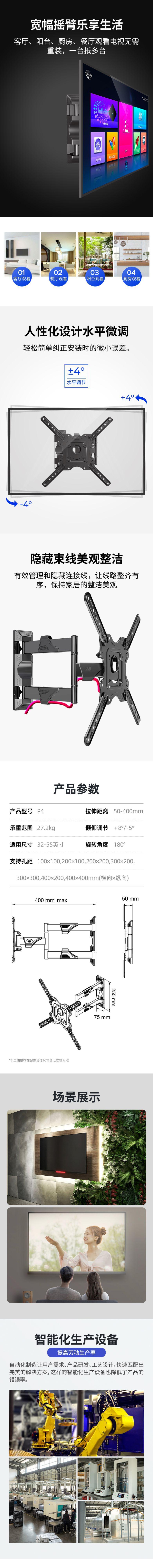 NB P4 Suporte de parede universal para TV, ângulo ajustável, suporte telescópico especial para TV, suporte de parede para TV de 32 a 55 polegadas
