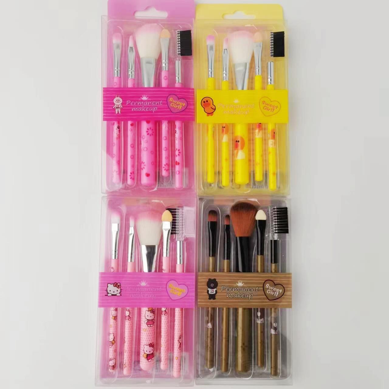 Conjunto de 5 conjuntos de pincéis de maquiagem transfronteiriços, conjunto de pincéis para iniciantes, pincel de blush, pincel de sombra para os olhos, pincel para cílios, conjunto de ferramentas de maquiagem de beleza