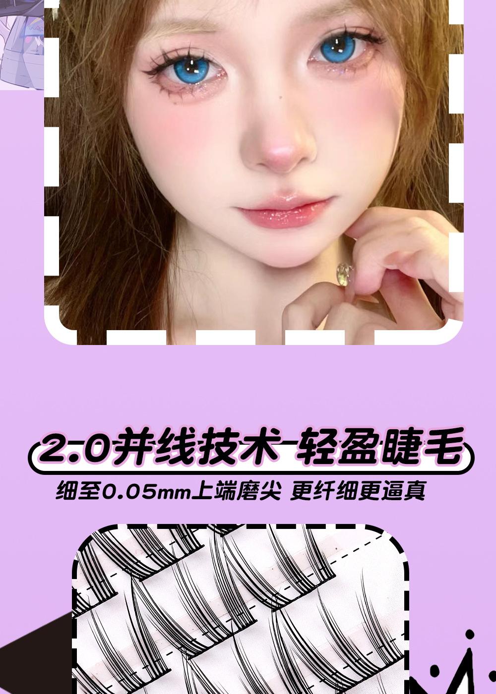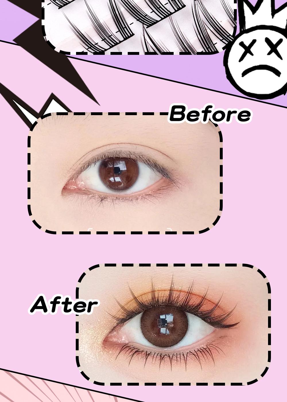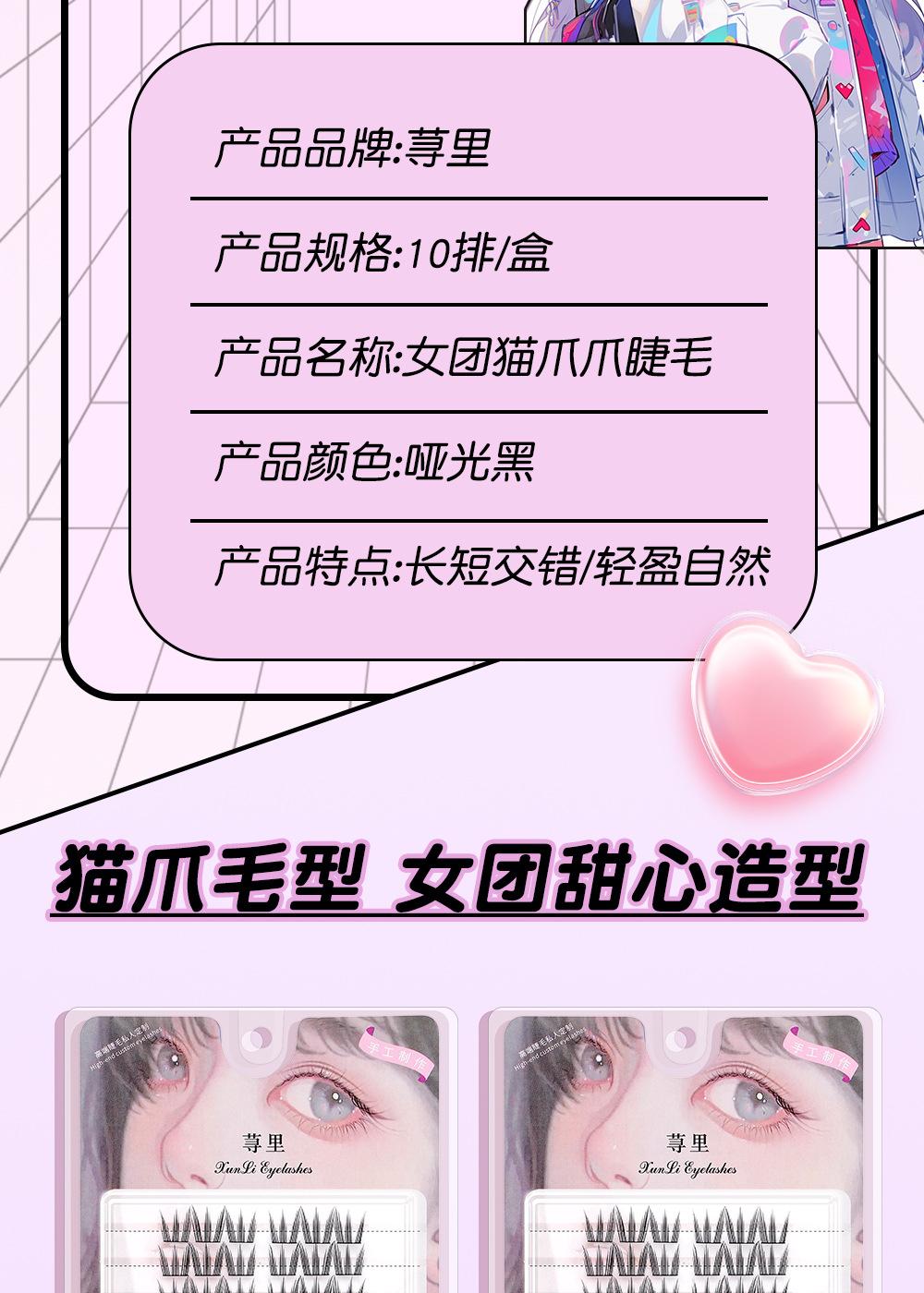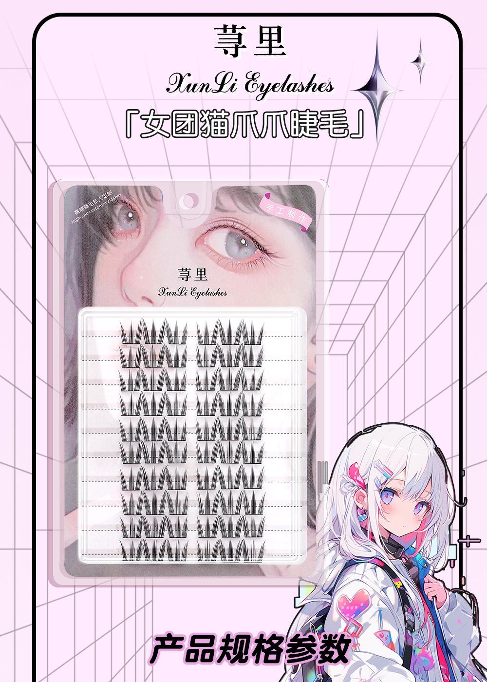Cílios de unha de gato grossos e cacheados, haste preta com delineador, vento fresco e doce, 10 fileiras de ajuste natural claro