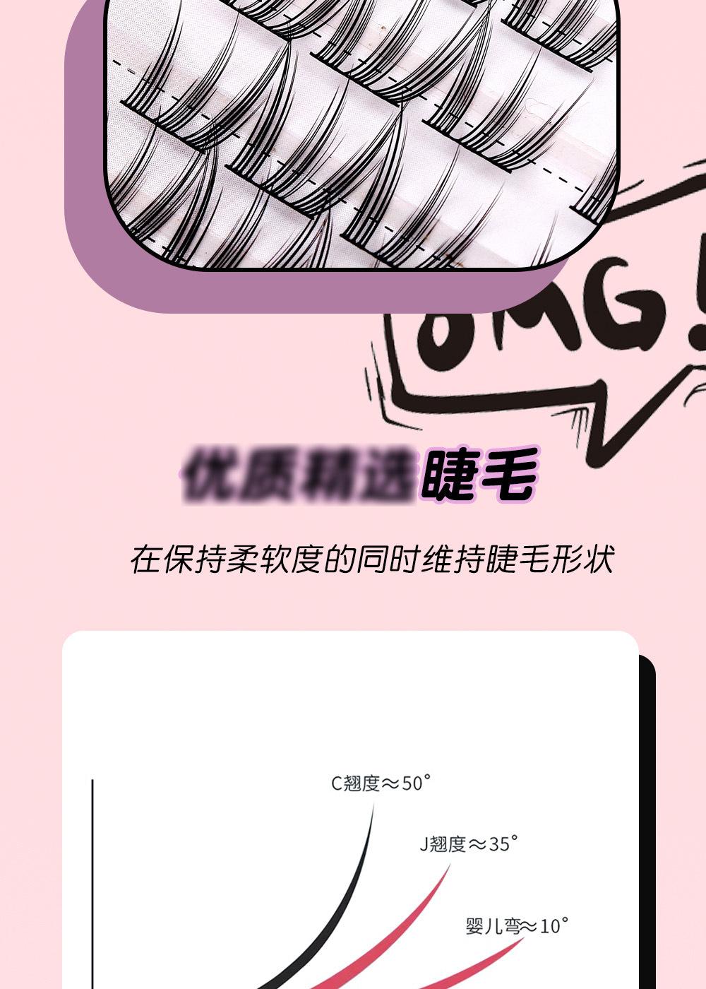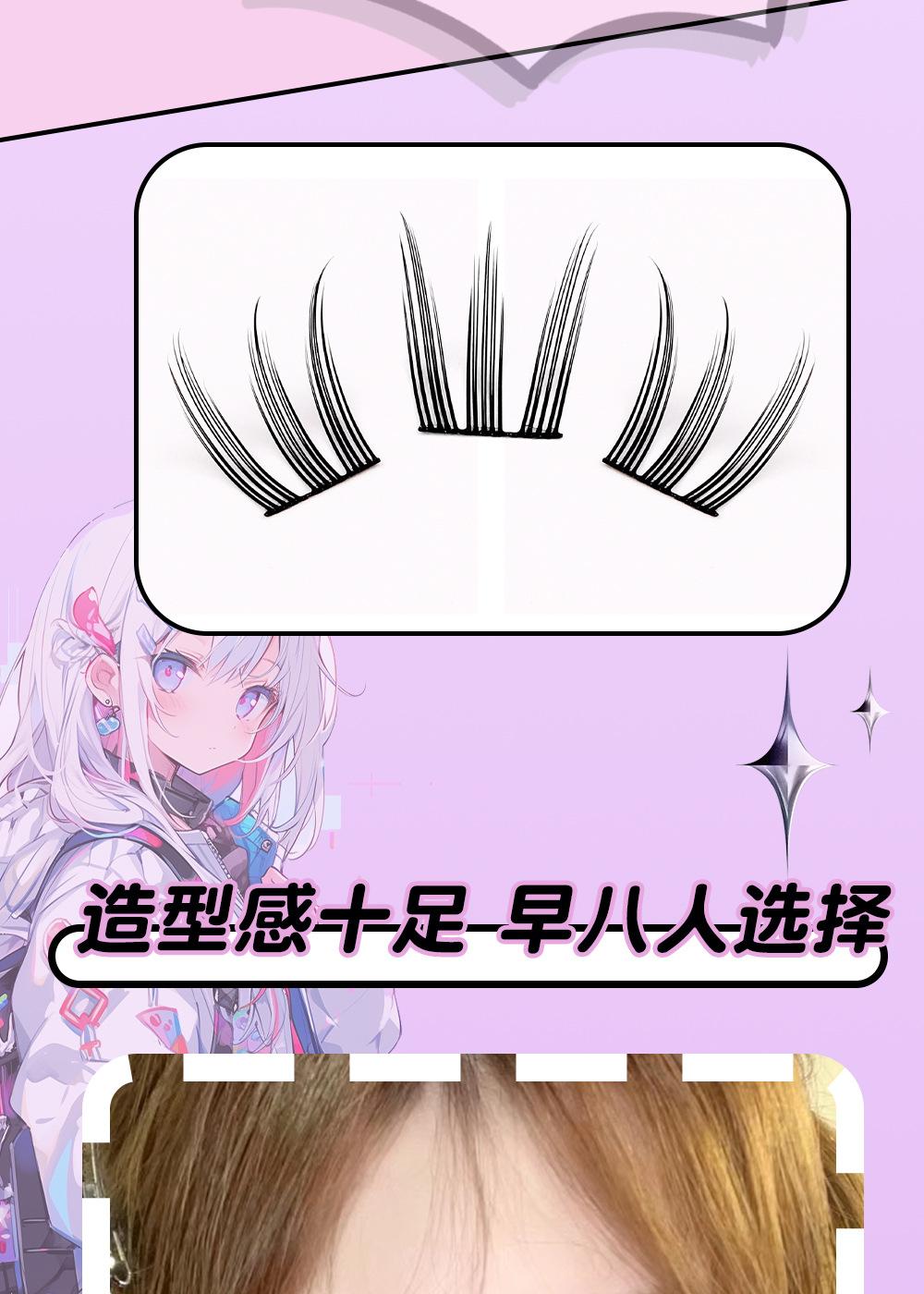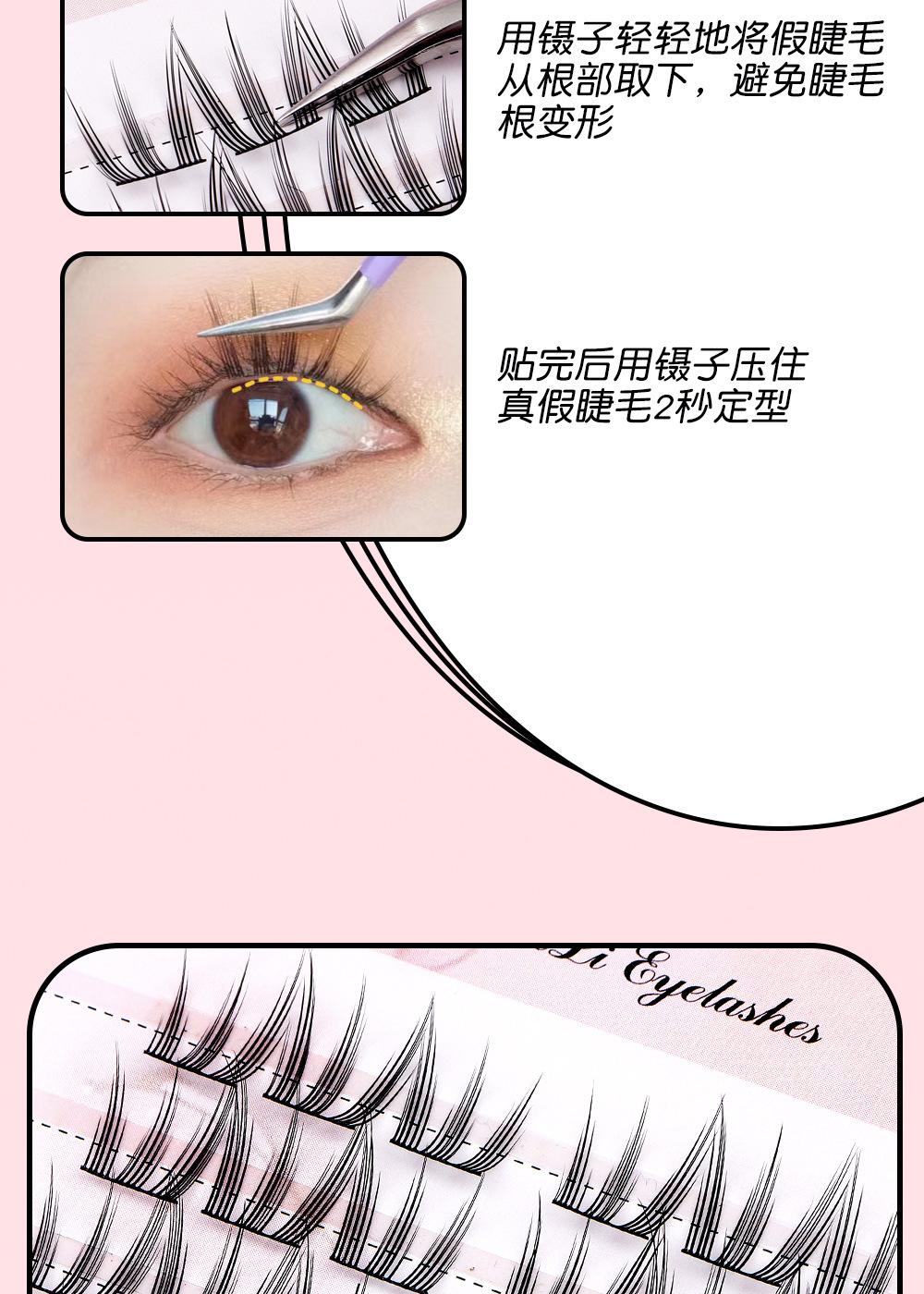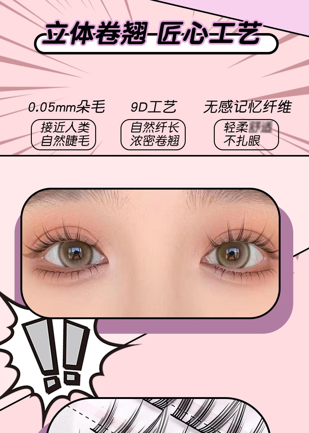Cílios de unha de gato grossos e cacheados, haste preta com delineador, vento fresco e doce, 10 fileiras de ajuste natural claro