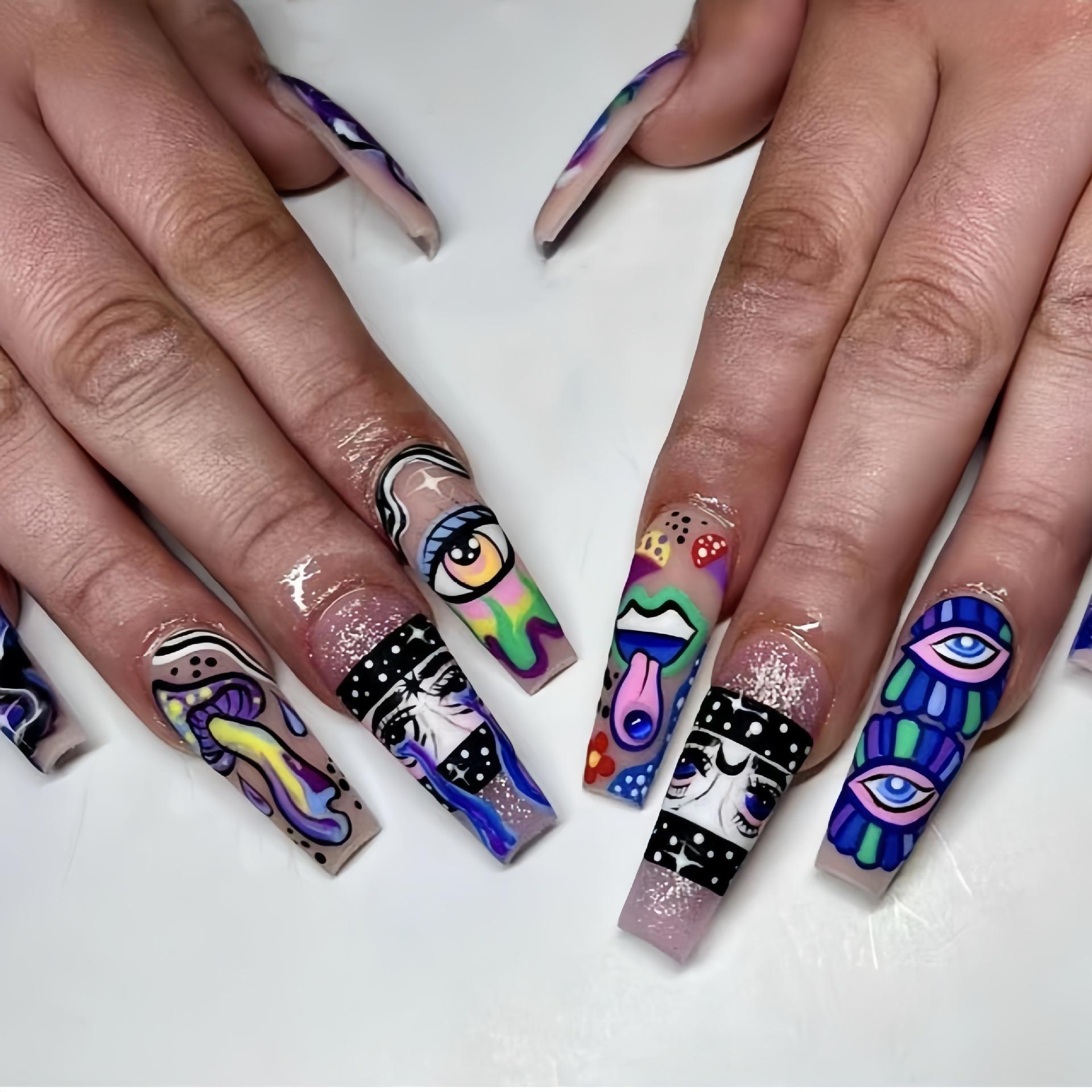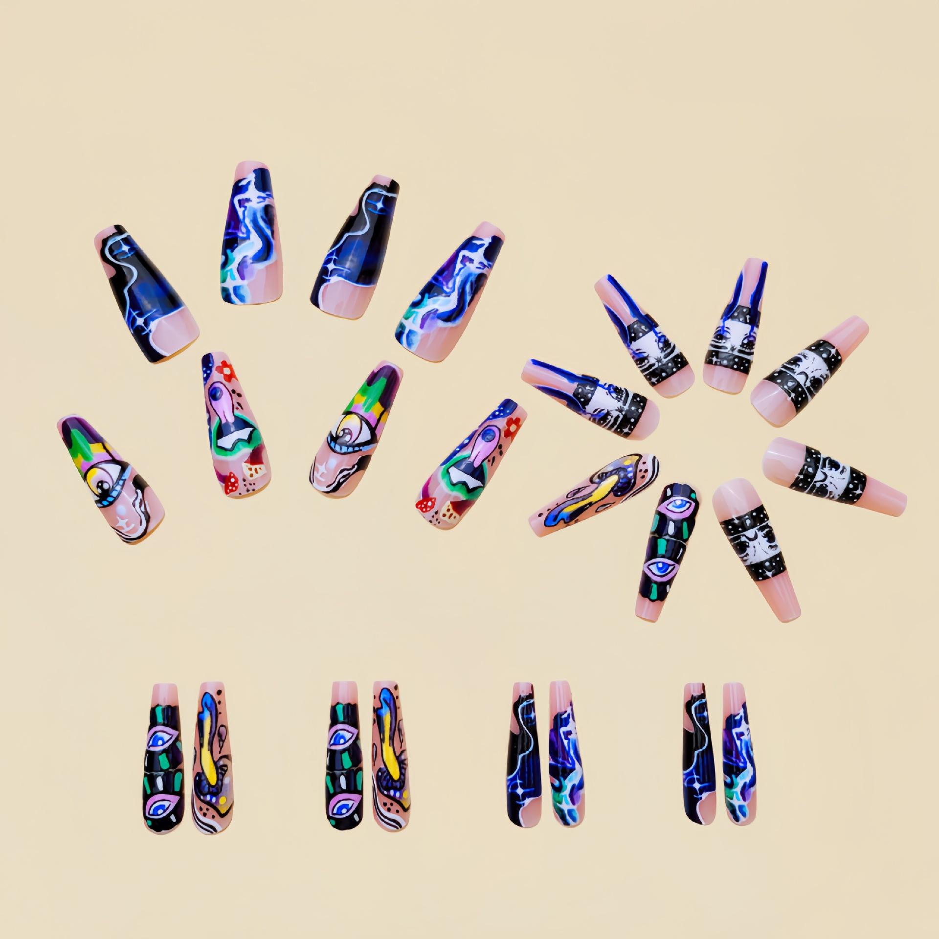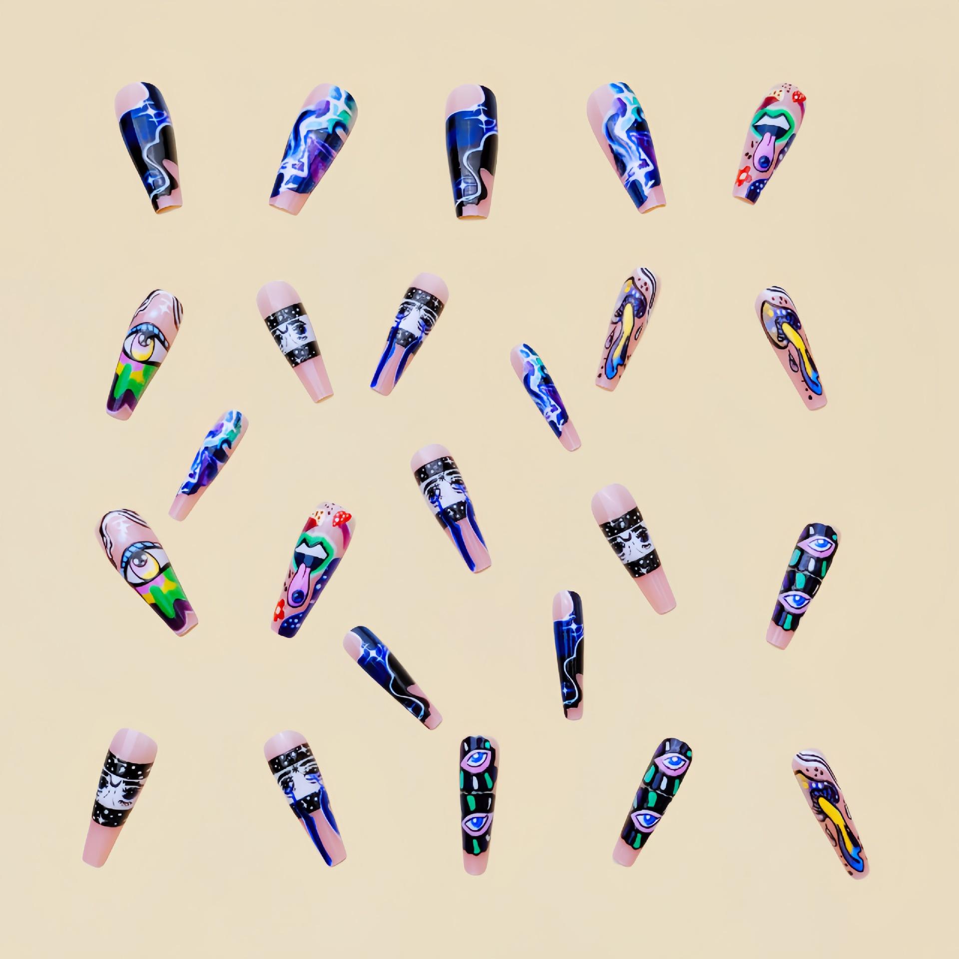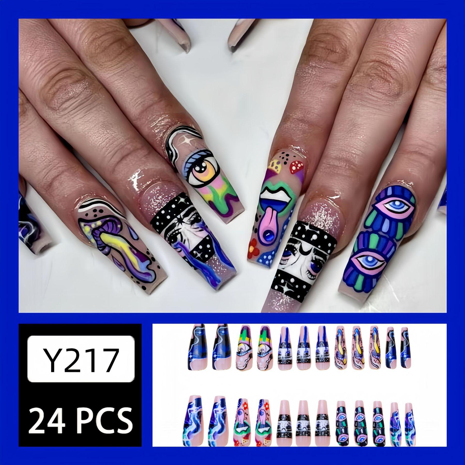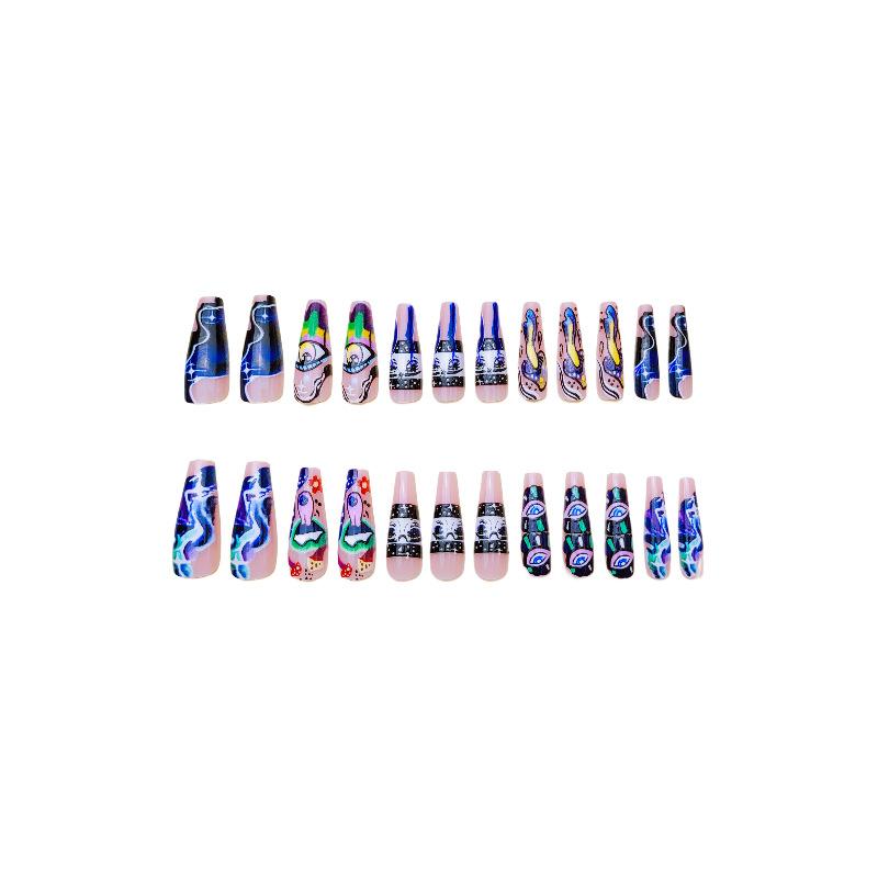 Compre Unhas de Balé Longas com Design de Olho de Anime Azul, Adesivos de Unha Destacáveis de 24 Peças no atacado no Joom.pro