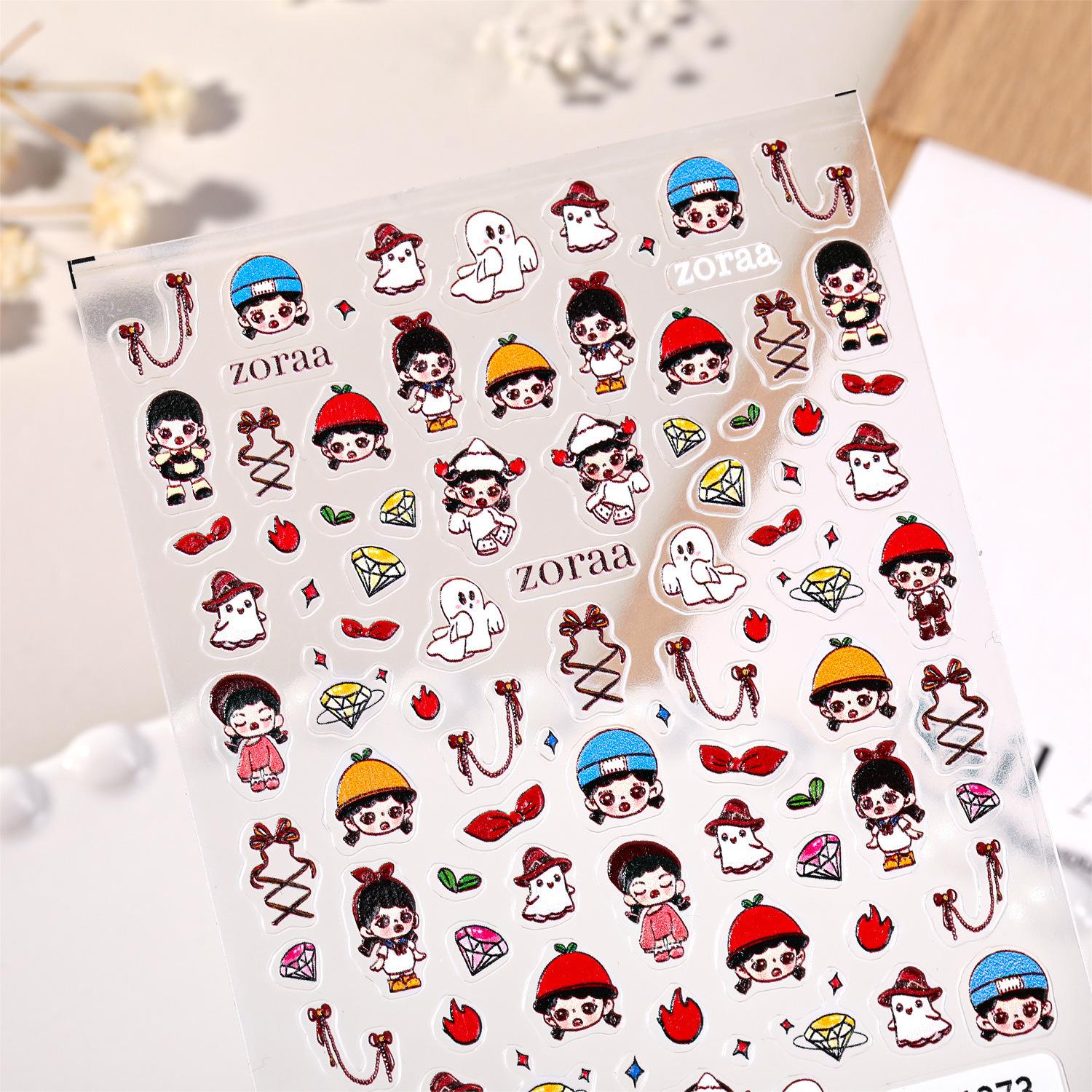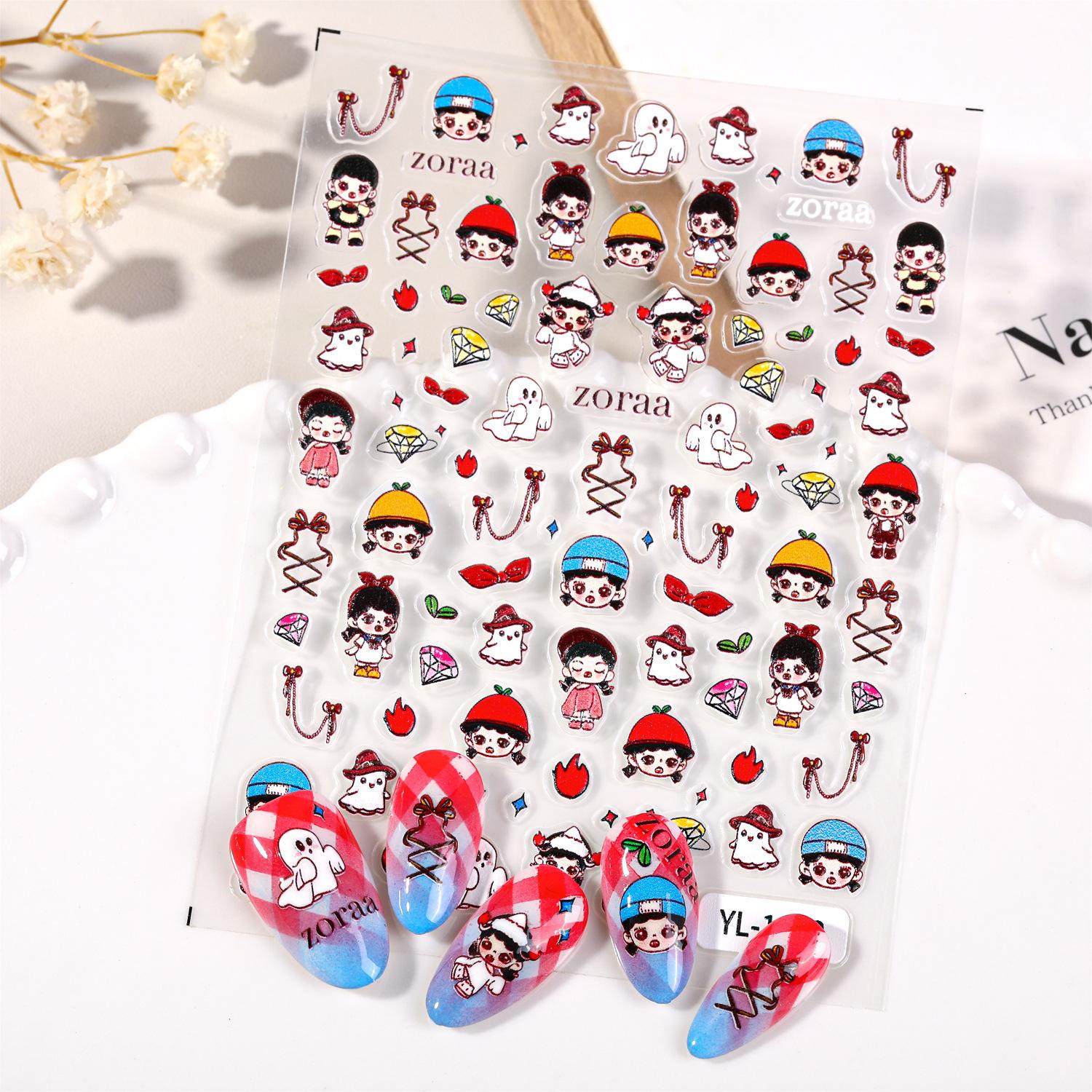 Compre Adesivo Fofo de Nail Art Irmã Zola 5D Estéreo em Relevo Vermelho Líquido Leite Moe Girl Joia Adesivo de Unha YL no atacado no Joom.pro