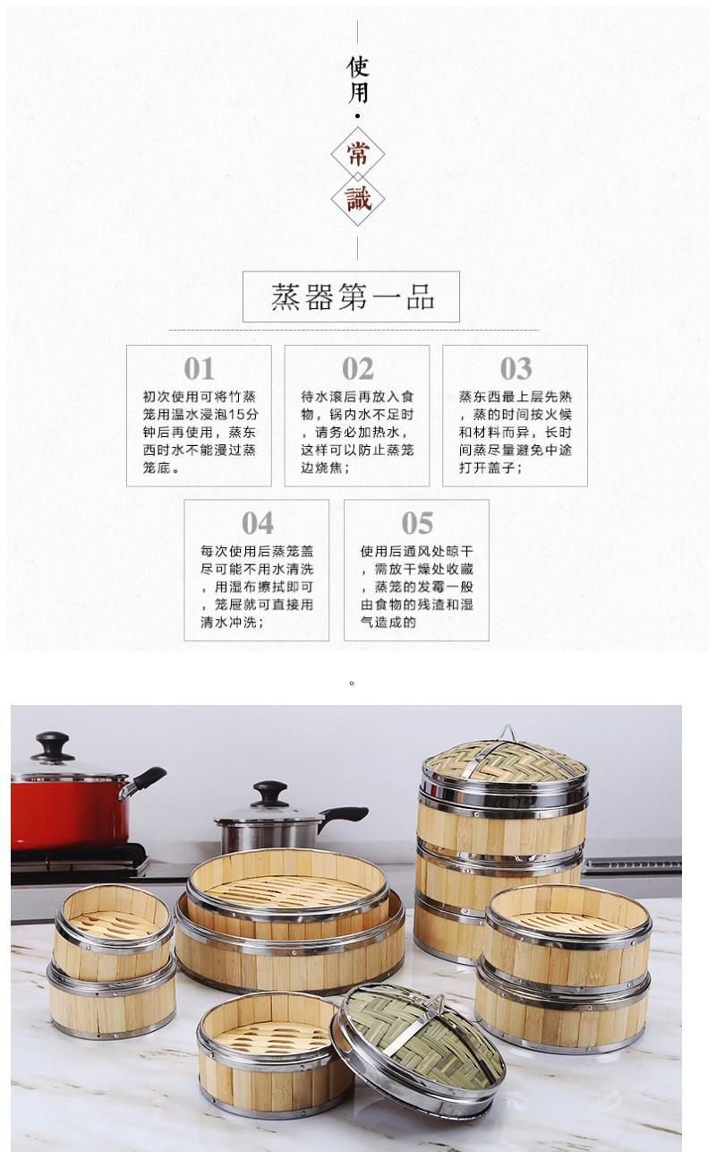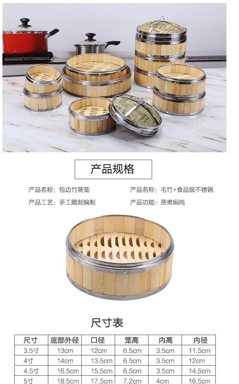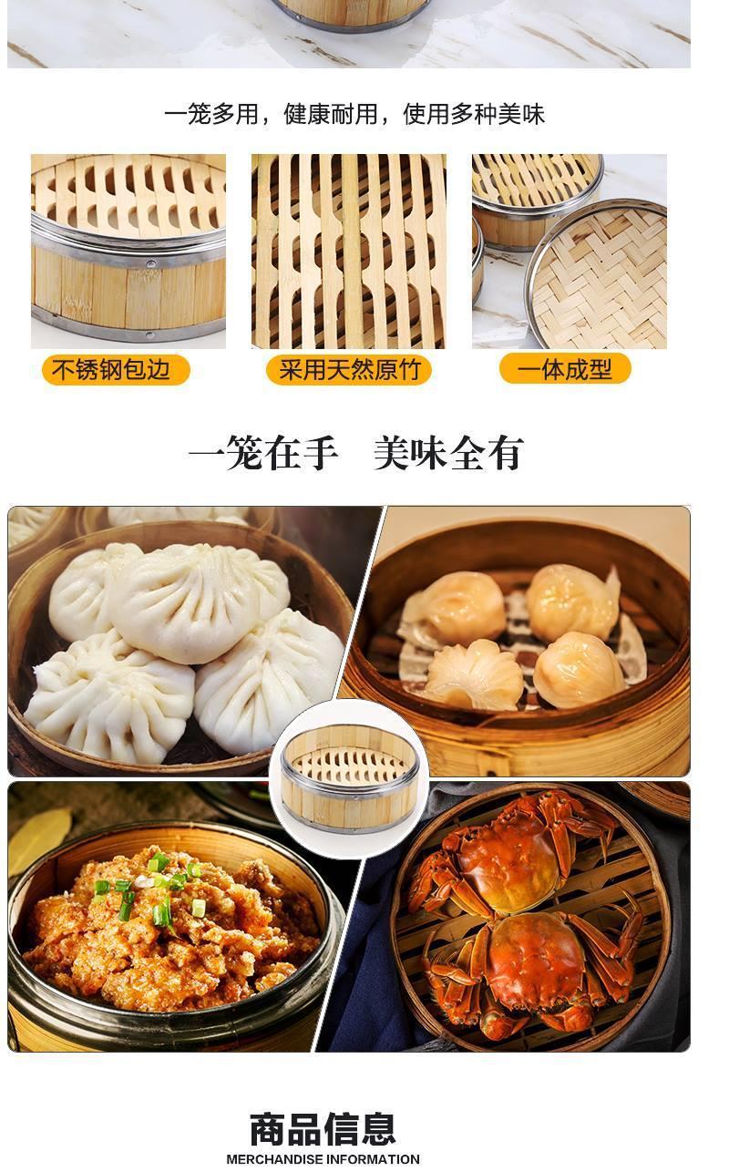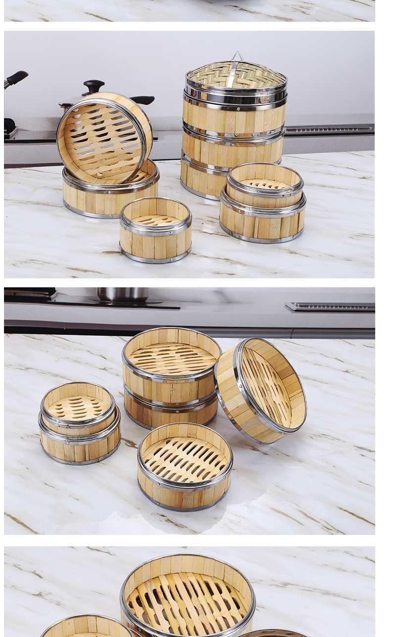 Vaporizador doméstico Vaporizador de arroz Vaporizador de bambu Pequena gaiola de arroz cozido no vapor Borda de aço inoxidável Treliça de vapor Restaurante de chá precoce cantonês Gaiola de treliça