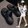 Sandálias e chinelos de sola grossa femininos verão para uso externo 2024 nova moda estilo fada bico duplo aberto chinelos de salto alto de alta qualidade