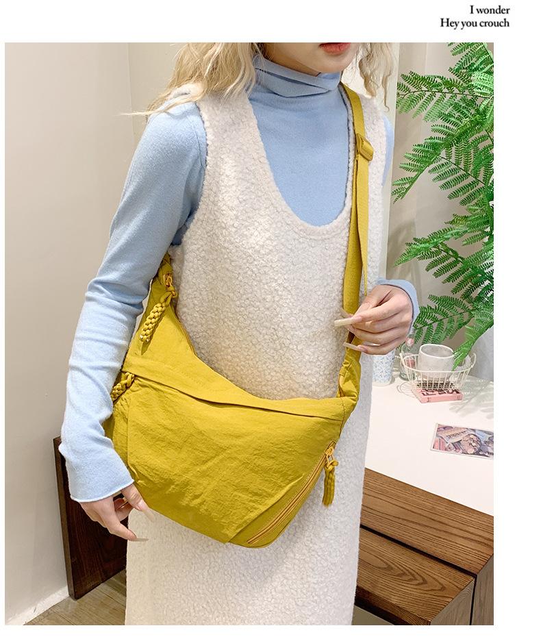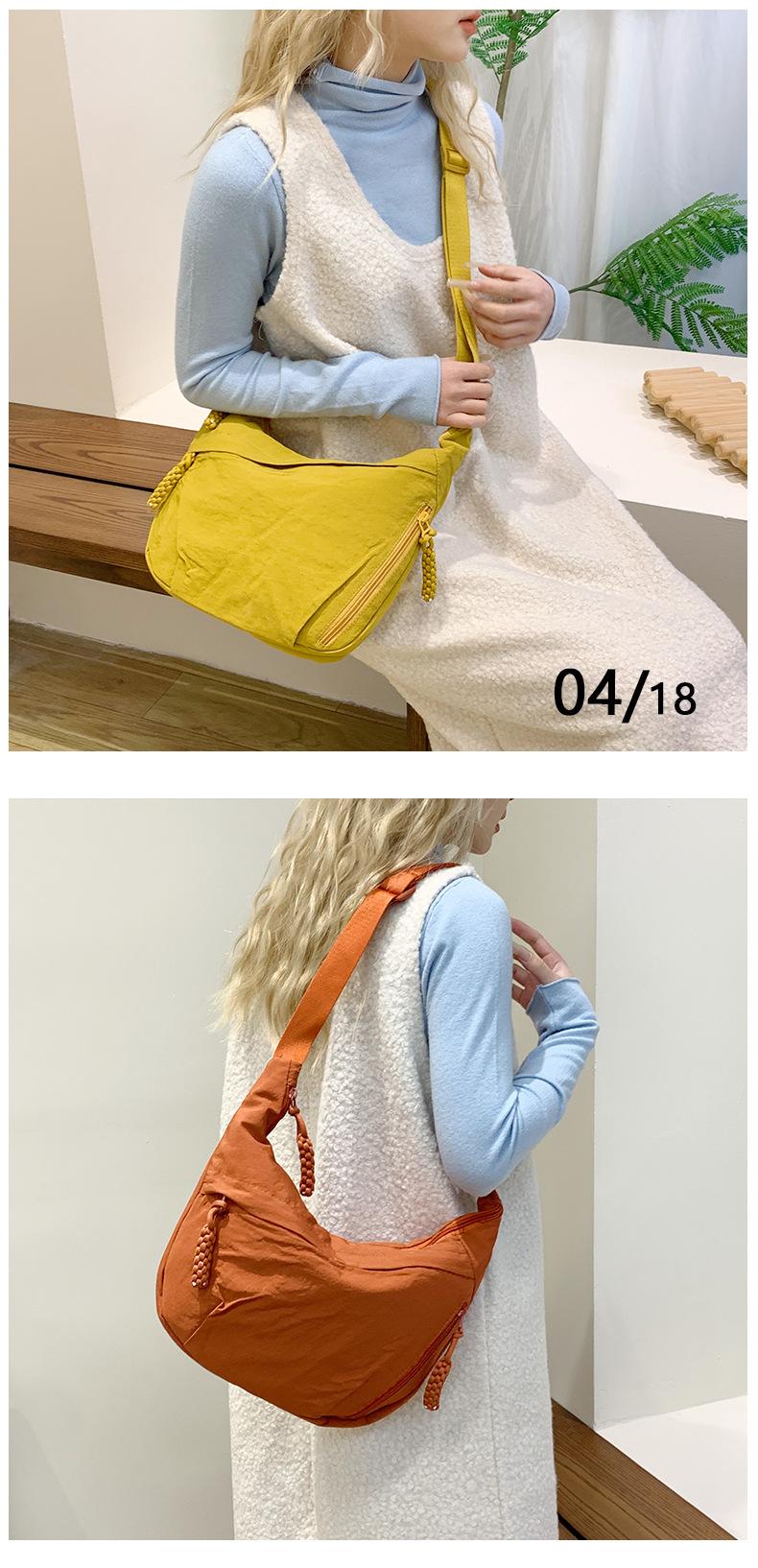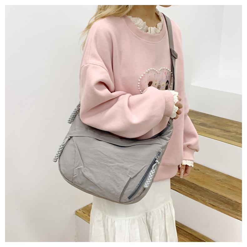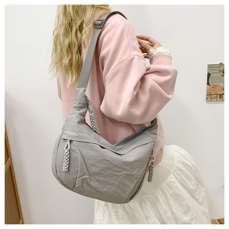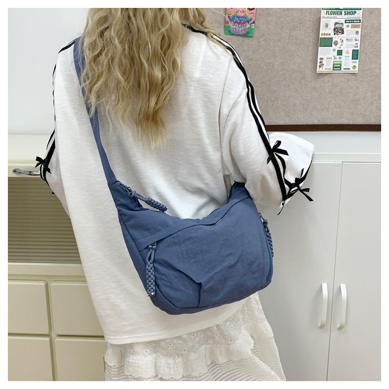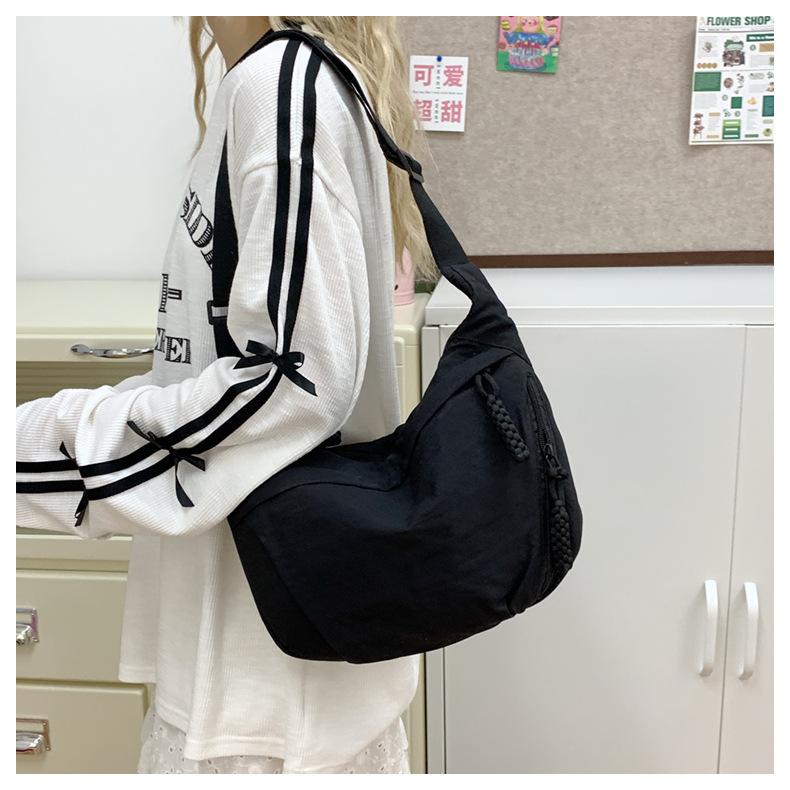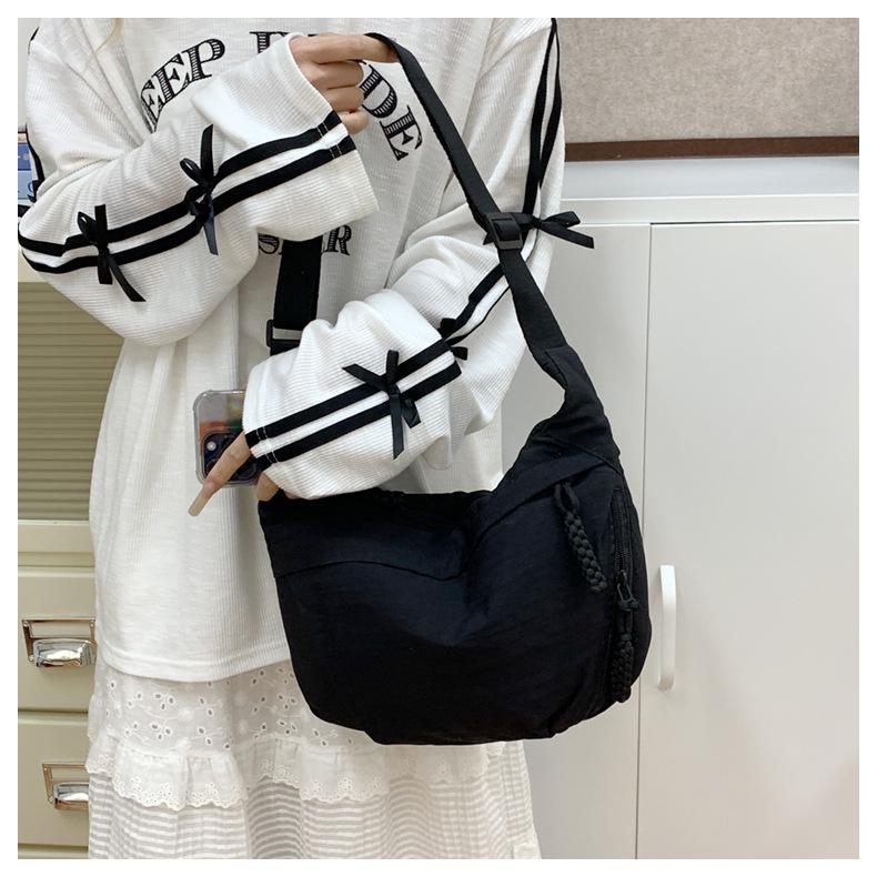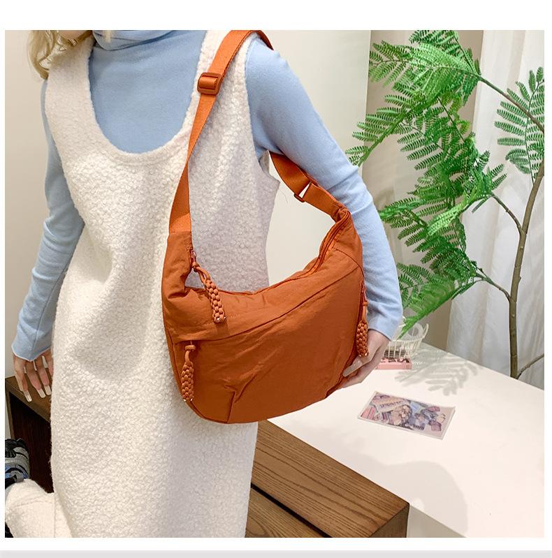 Bolsa feminina transversal casual simples de grande capacidade, bolsa de ombro para estudantes universitários, bolsa de nylon de cor sólida, bolsa tote multifuncional