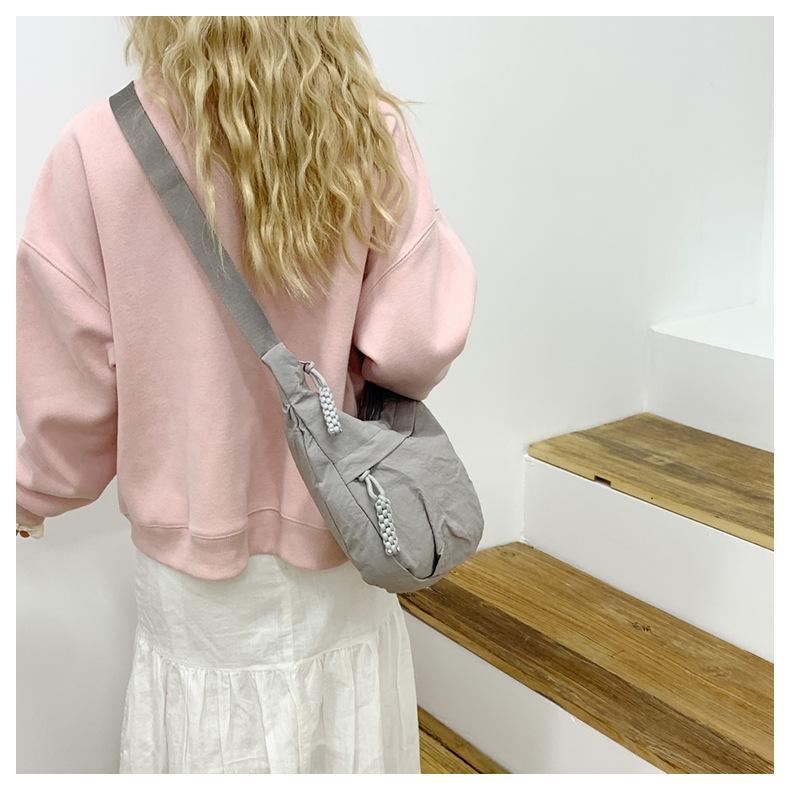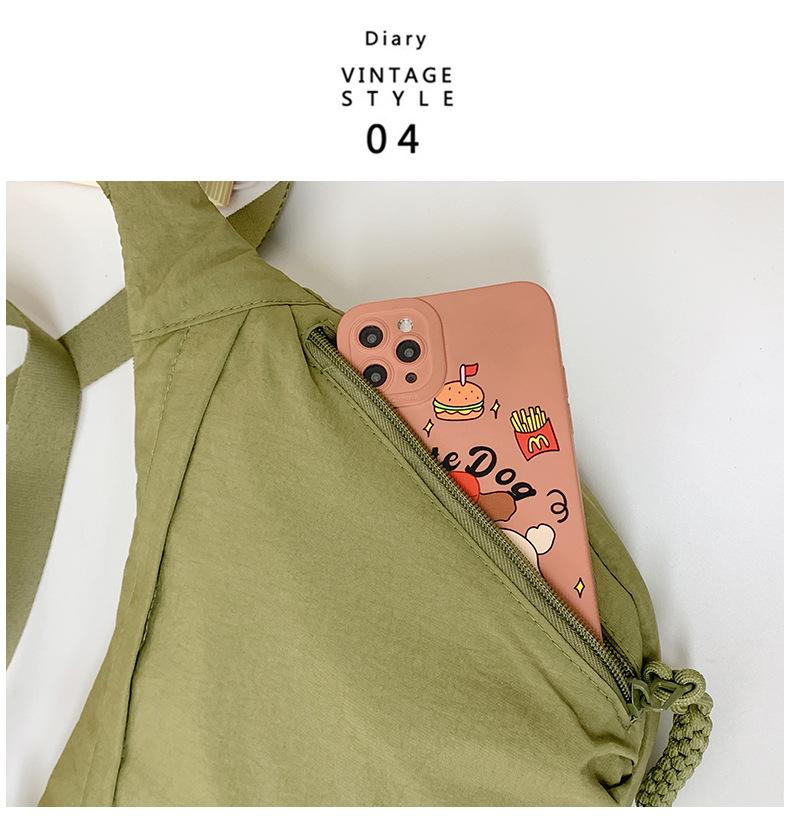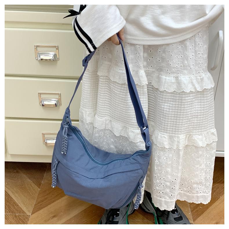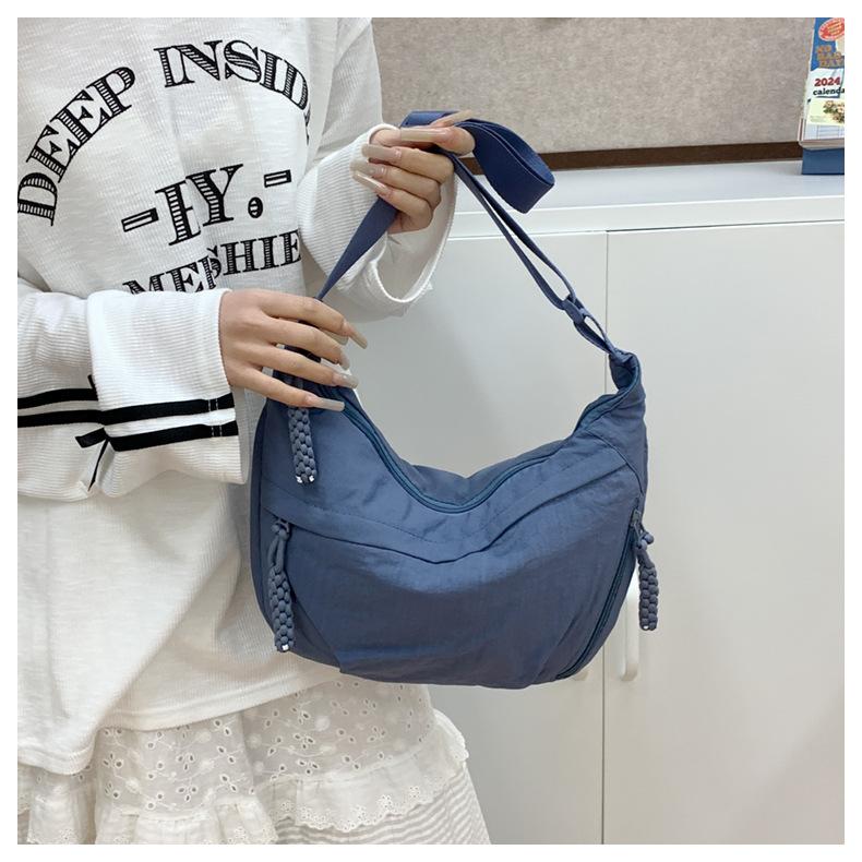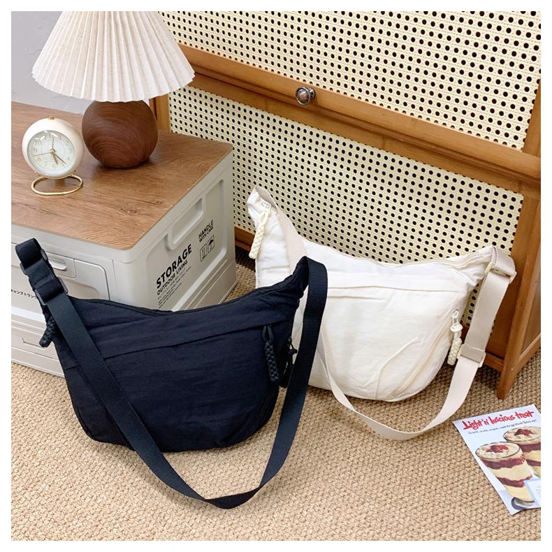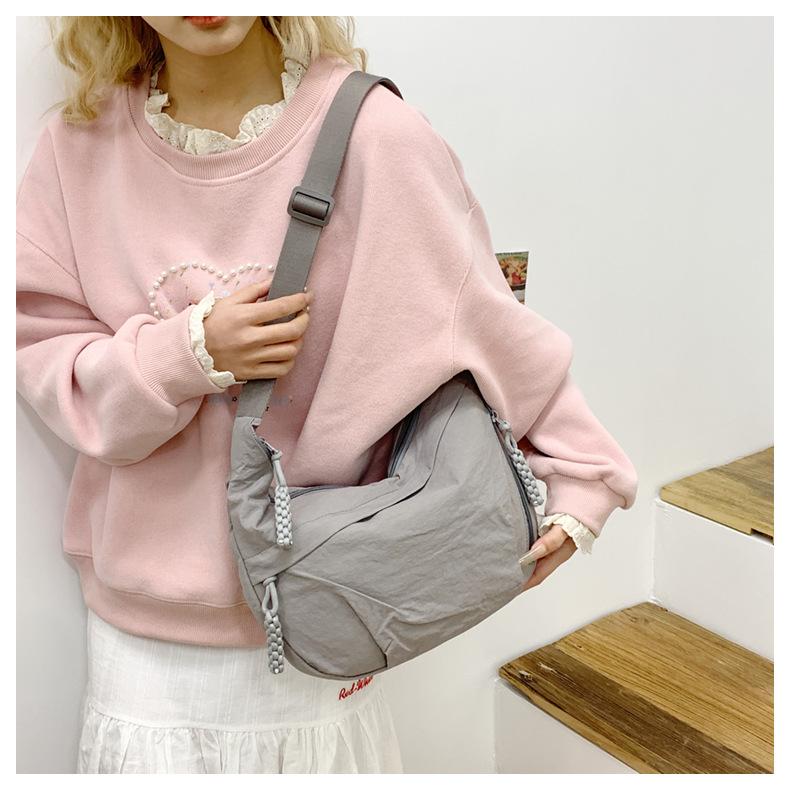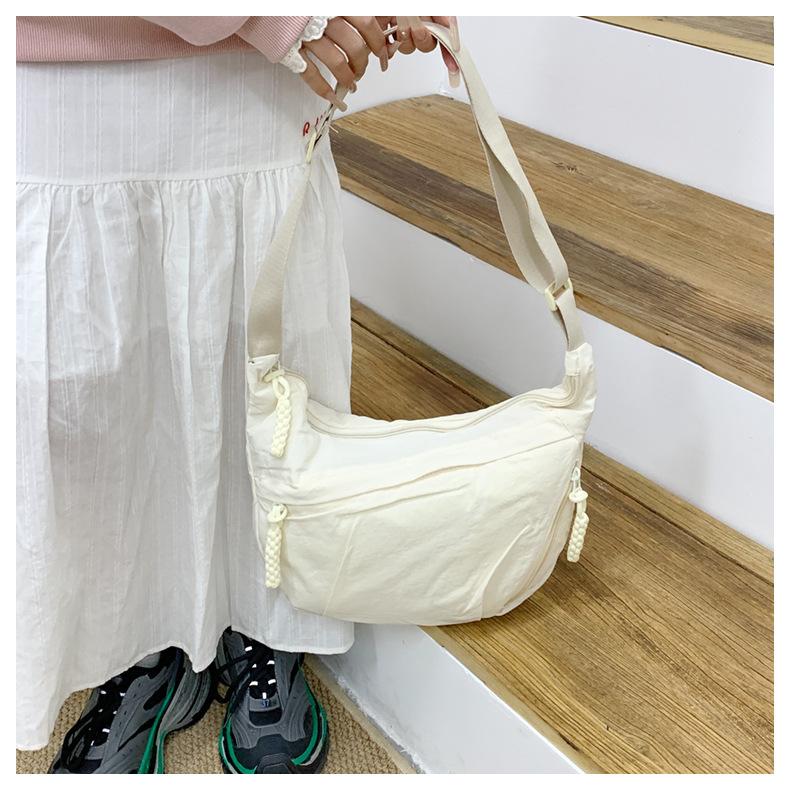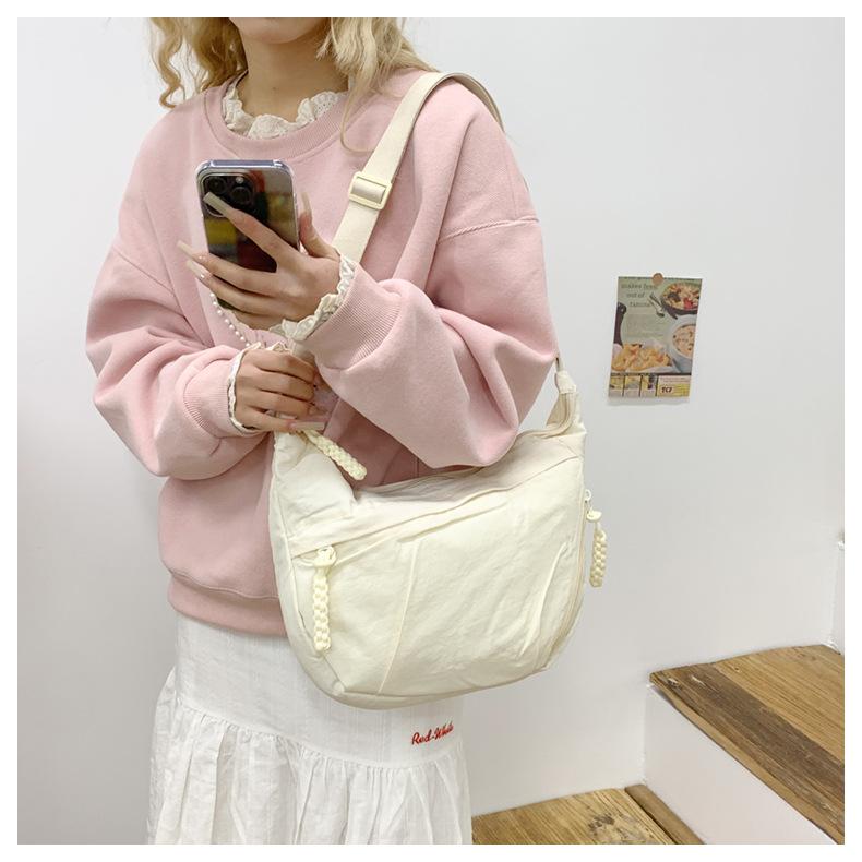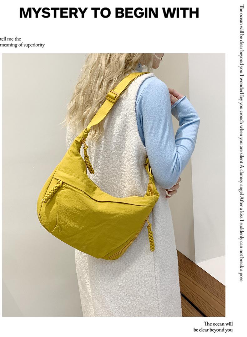 Bolsa feminina transversal casual simples de grande capacidade, bolsa de ombro para estudantes universitários, bolsa de nylon de cor sólida, bolsa tote multifuncional