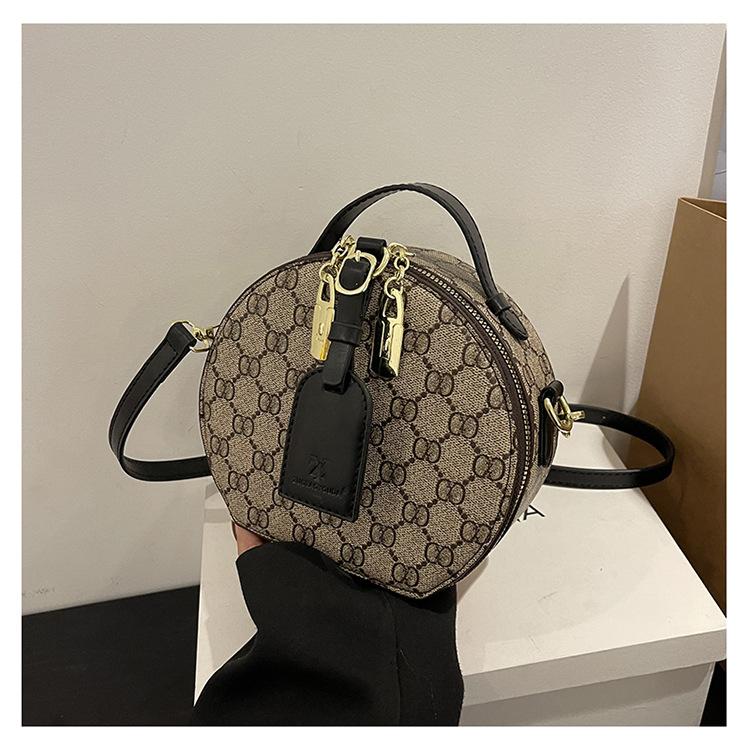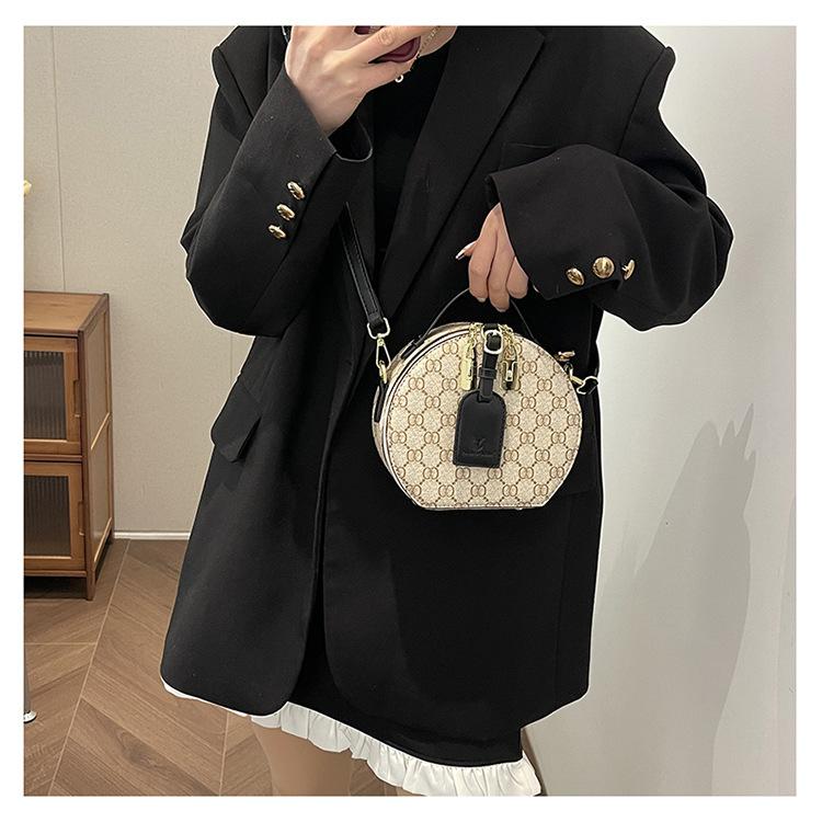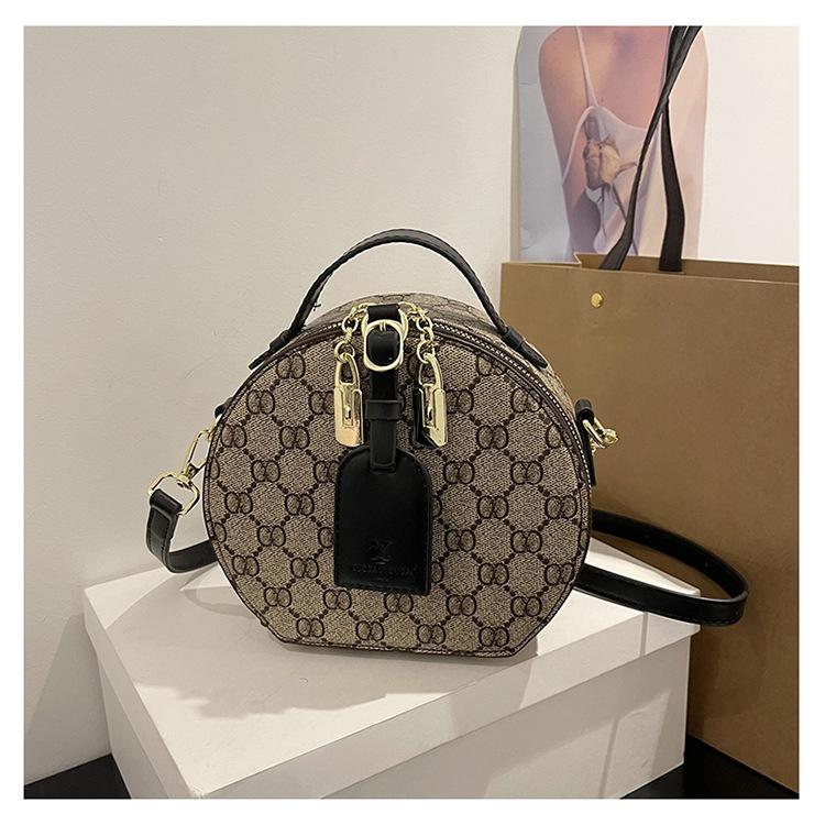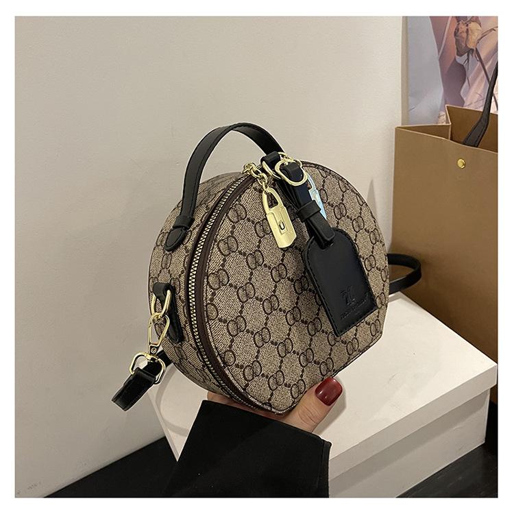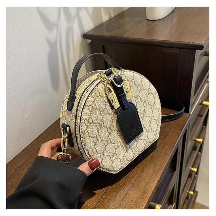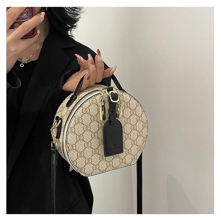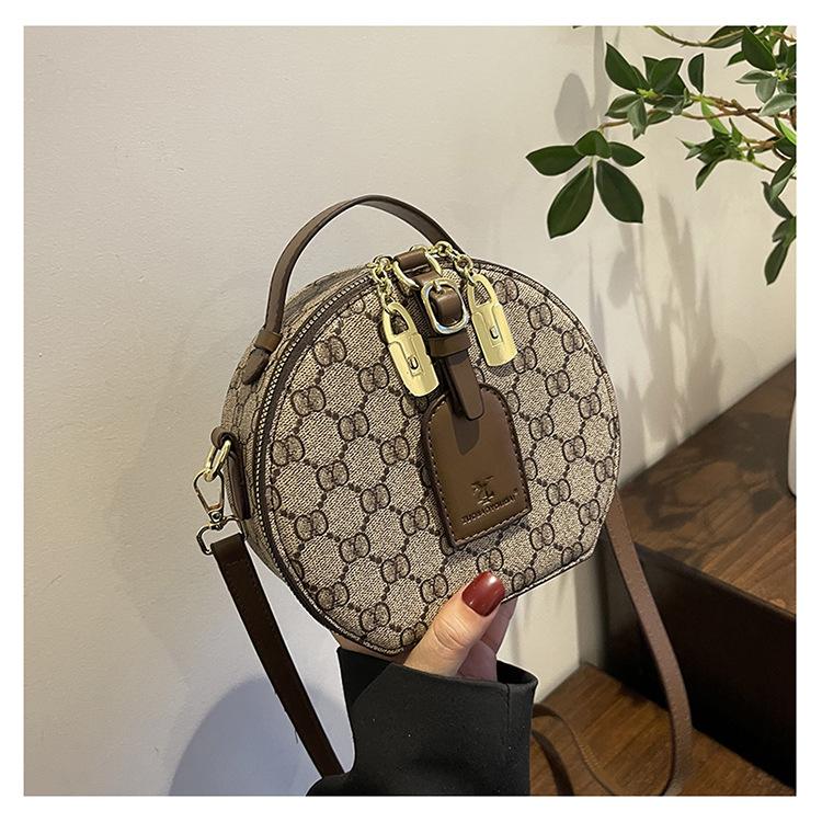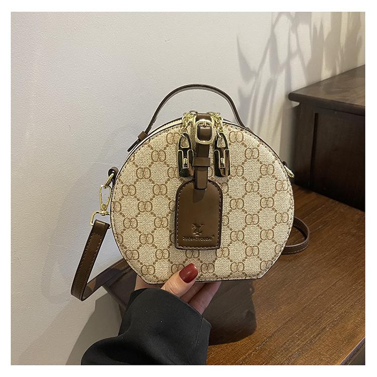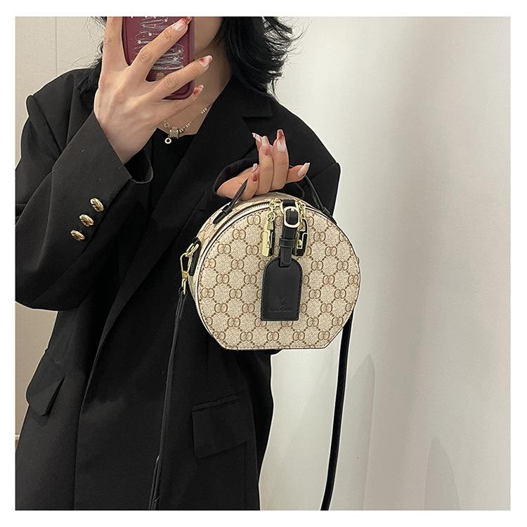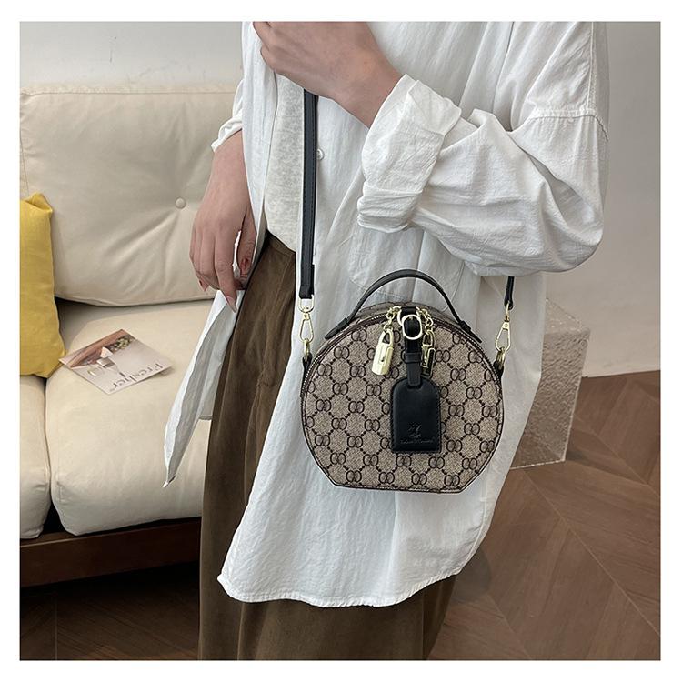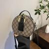 Bolsa Redonda Pequena Retrô Estilo Hong Kong 2025 Início da Primavera Nova Bolsa da Moda Casual Versátil Bolsa de Ombro Simples Transversal para Mulheres