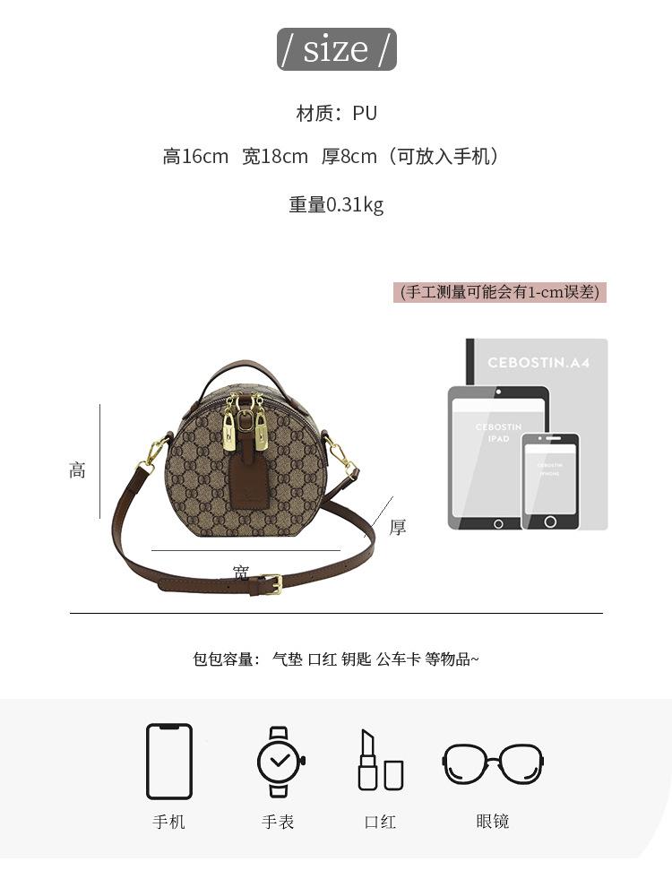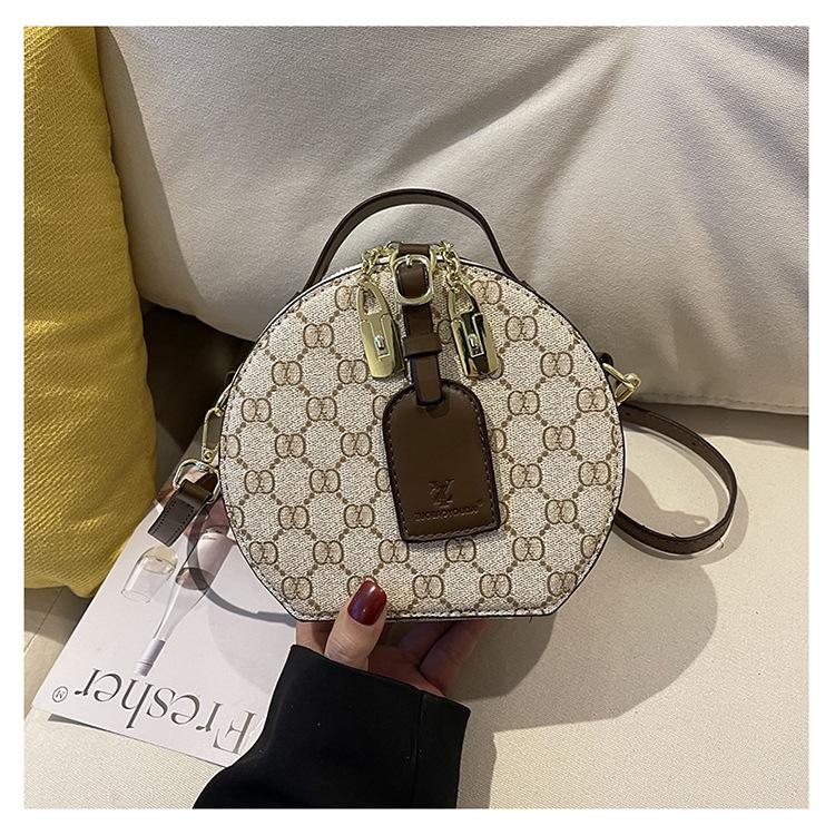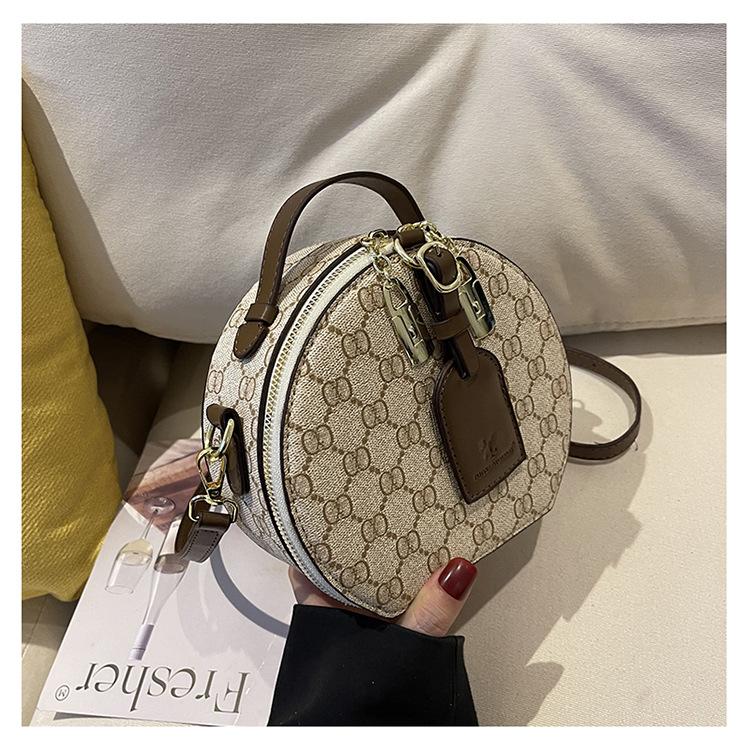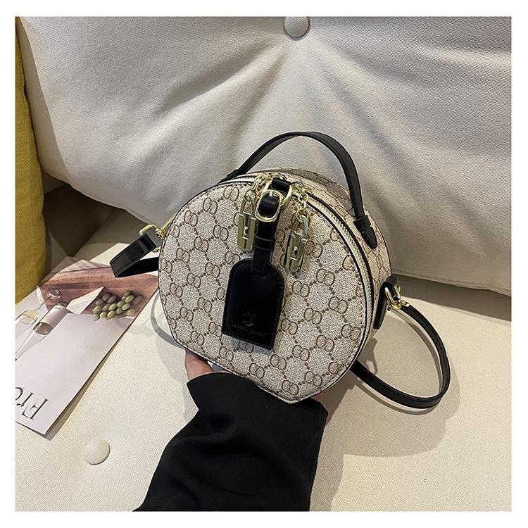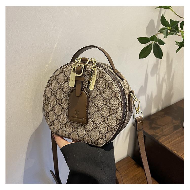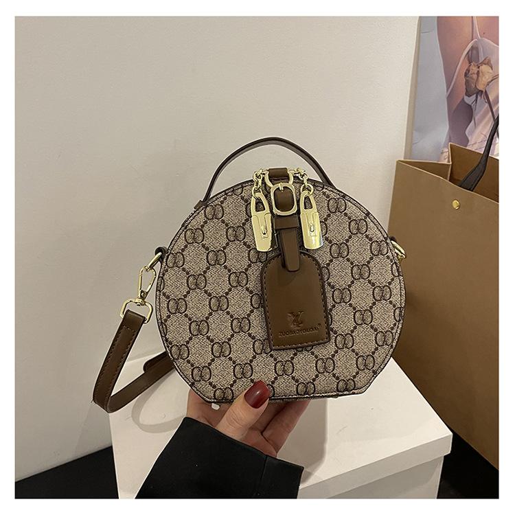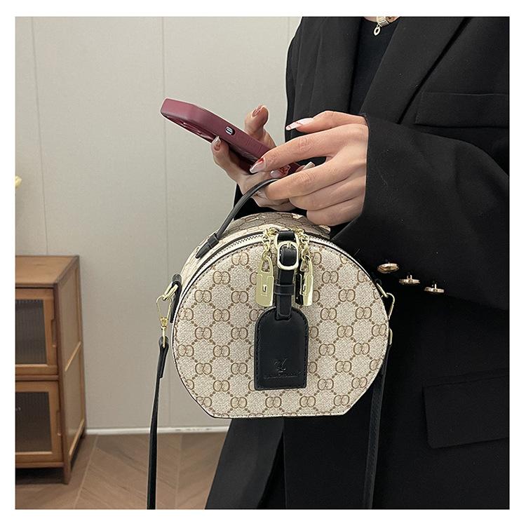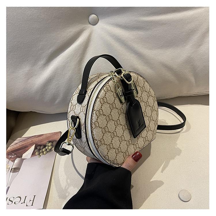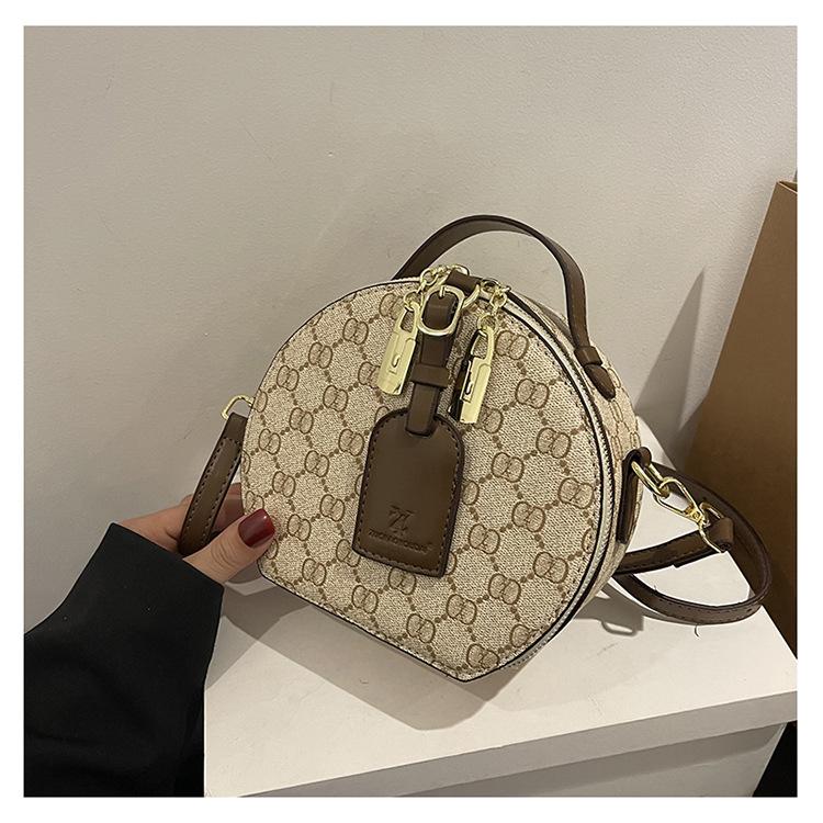 Bolsa Redonda Pequena Retrô Estilo Hong Kong 2025 Início da Primavera Nova Bolsa da Moda Casual Versátil Bolsa de Ombro Simples Transversal para Mulheres