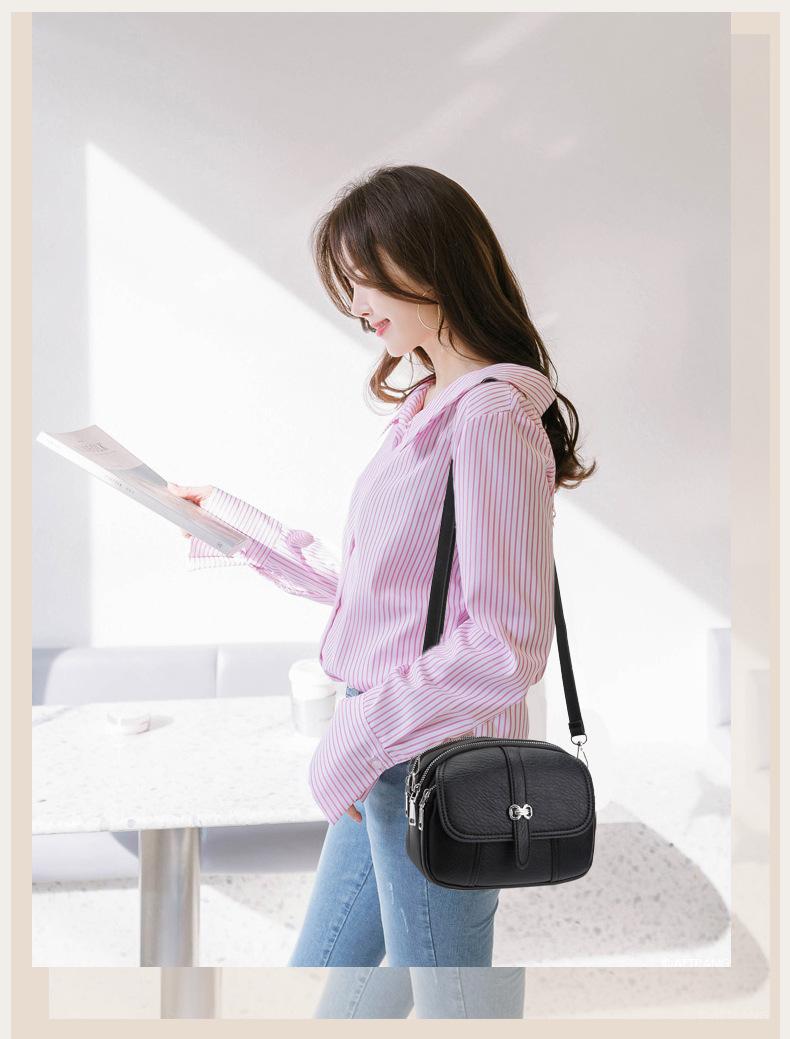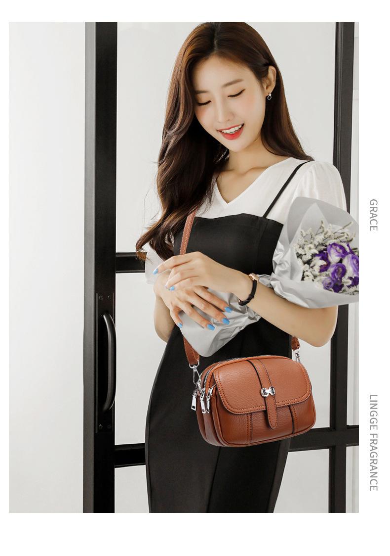 Bolsa Mãe Feminina Casual All-match Bolsa de Couro Macio Bolsa de Moedas Multicamadas de Bolso Bolsa de Ombro Leve Bolsa Pequena Transversal