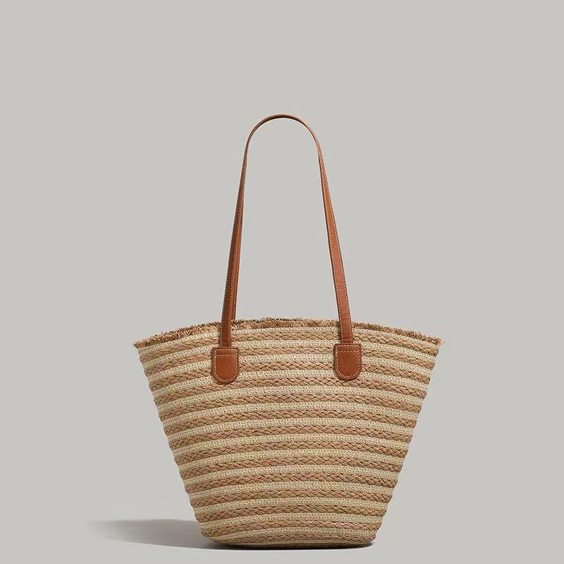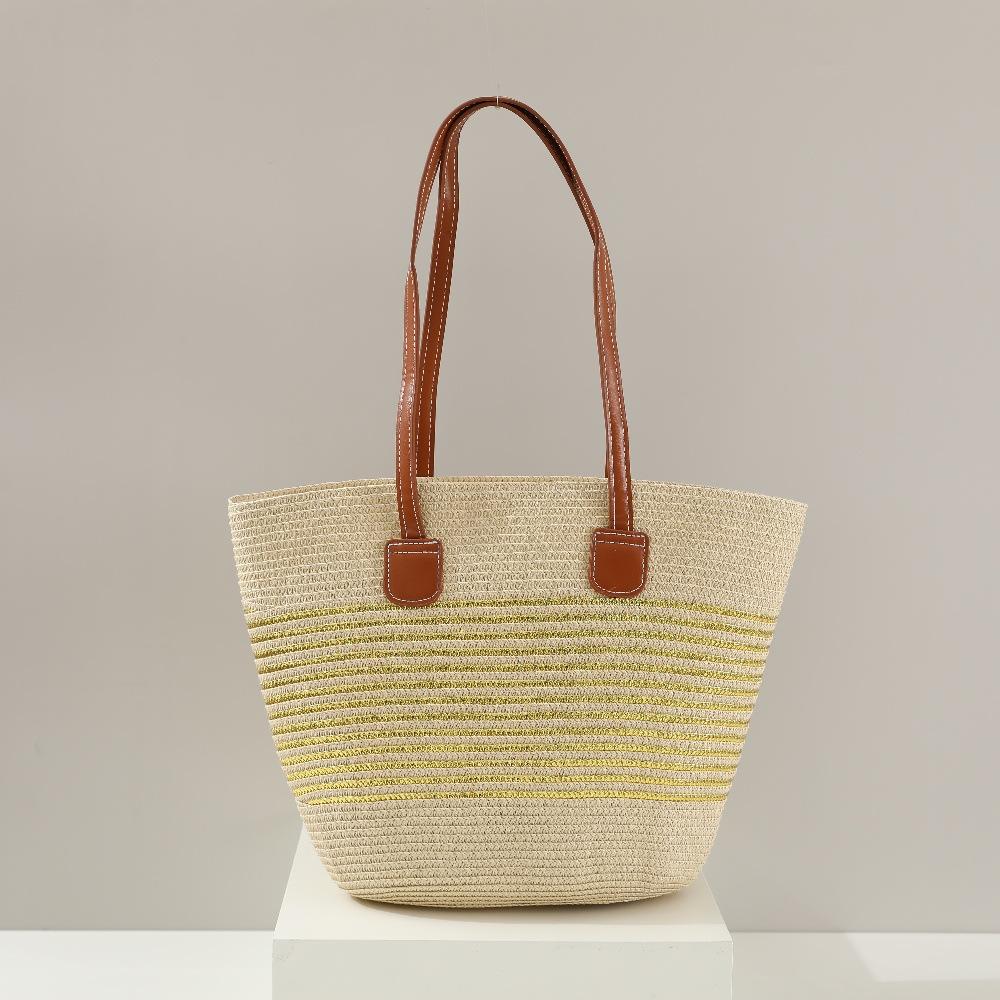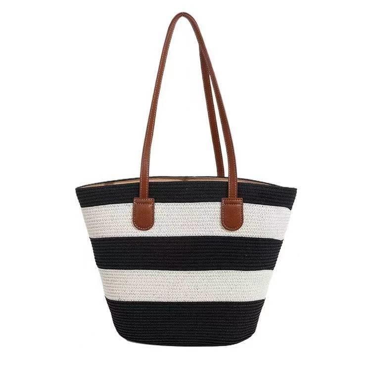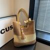 Bolsa de palha feminina estilo verão 2025, nova bolsa de ombro grande com capacidade para praia, praia e férias ao ar livre