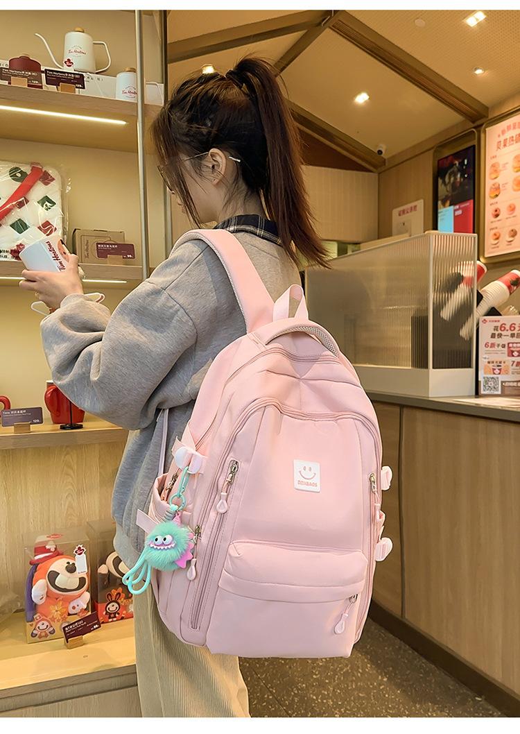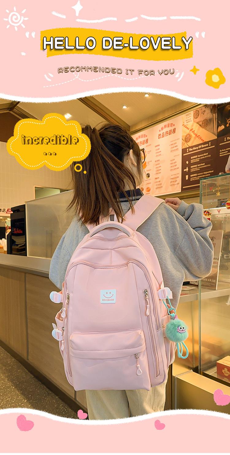 Mochila escolar feminina para ensino fundamental e médio, alta qualidade, estilo ins, multicamadas, grande capacidade, cor sólida, para alunos do 3º ao 6º ano