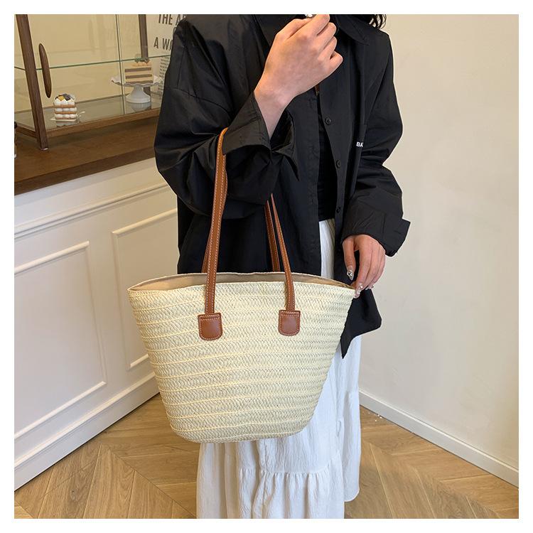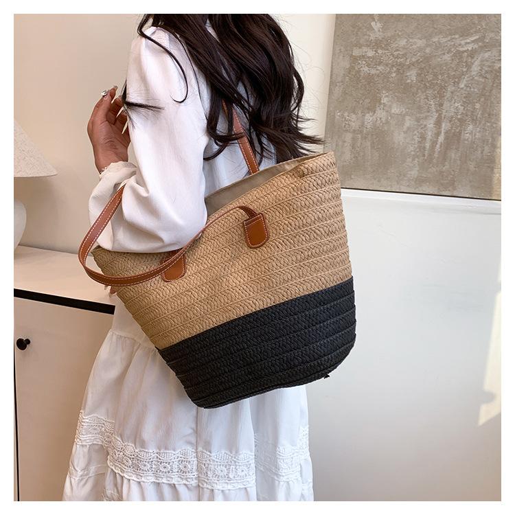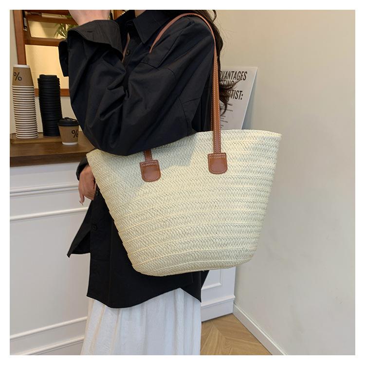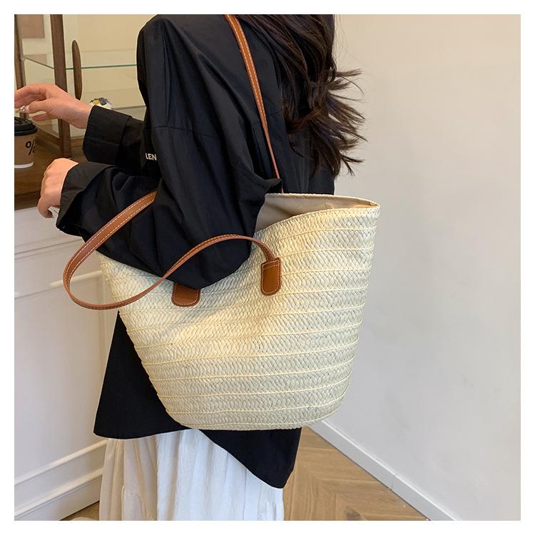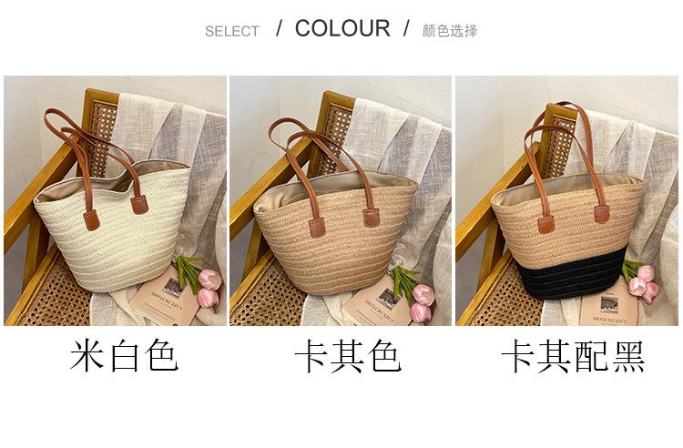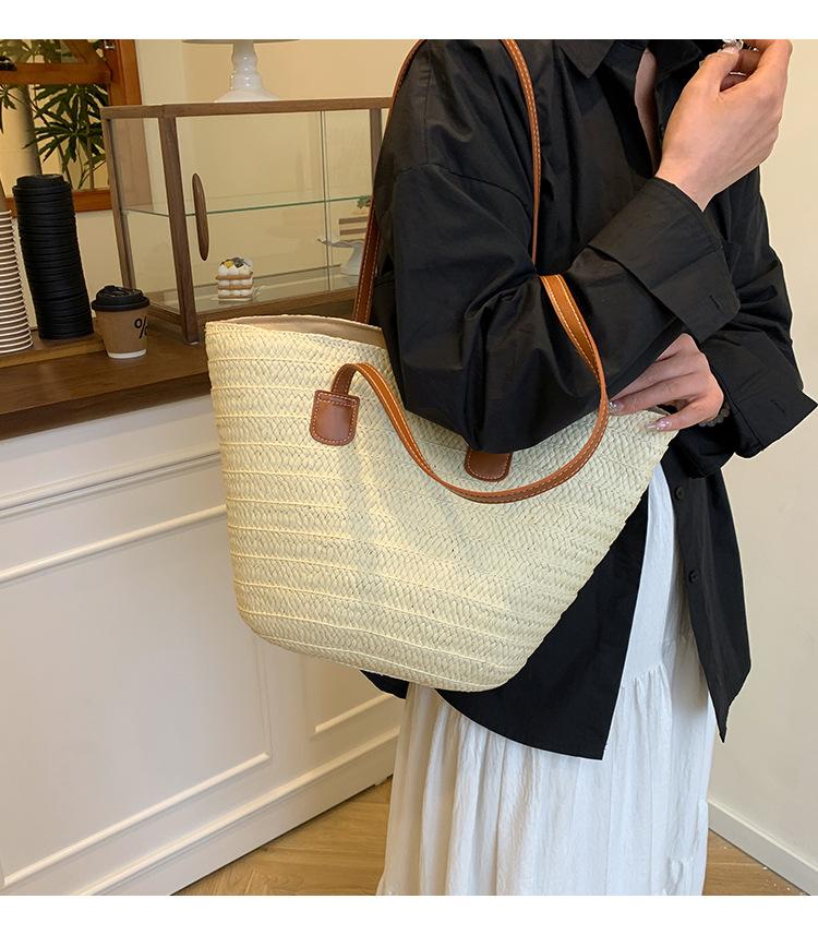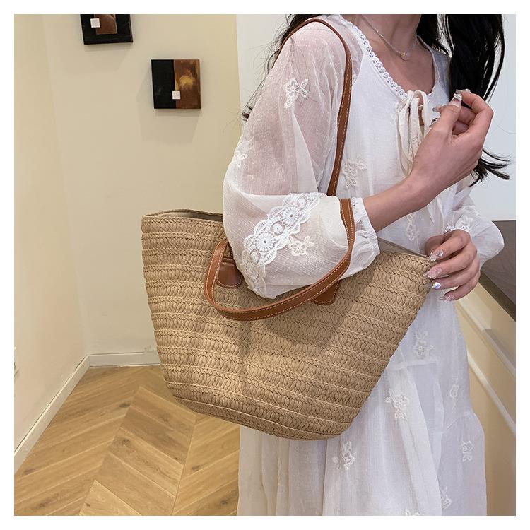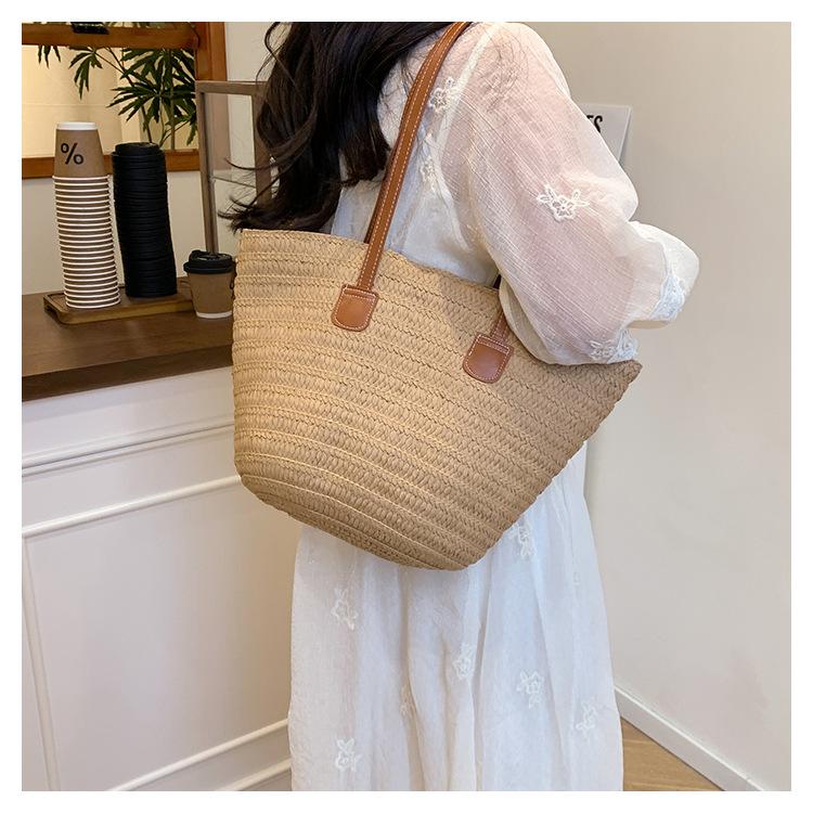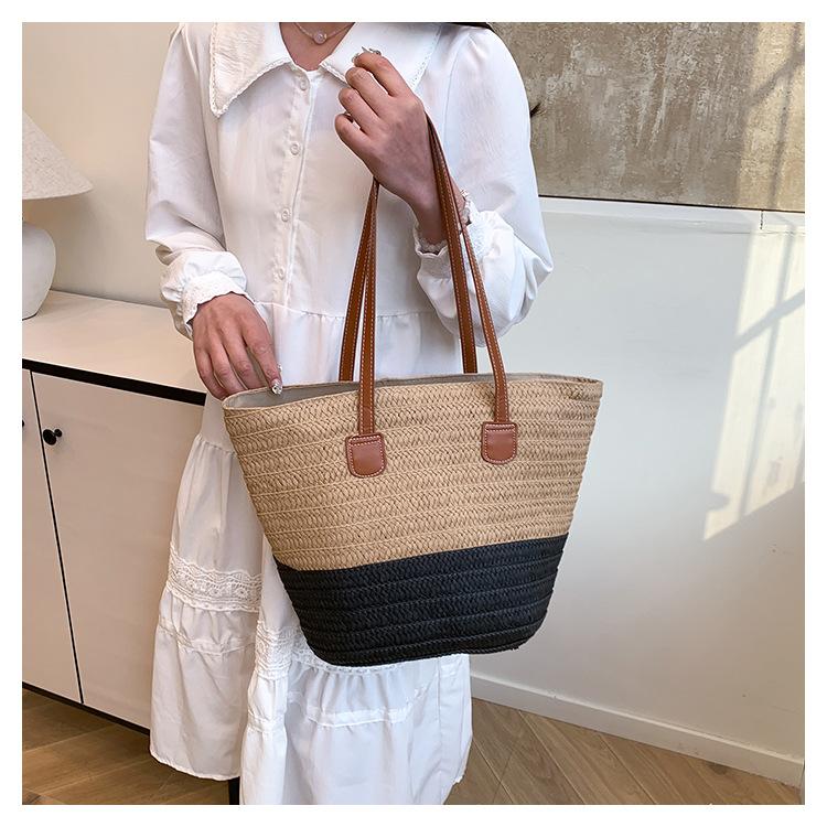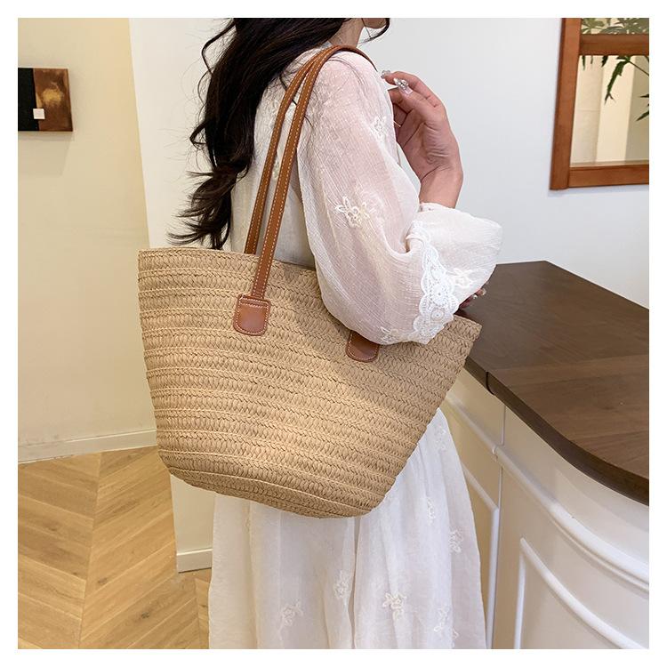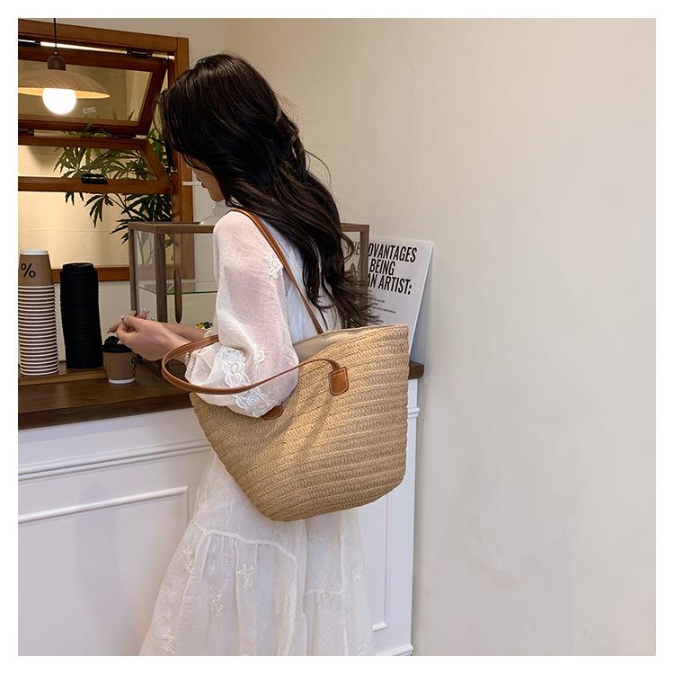 Novo All-match Simples Moda Palha Tecido Bolsa Grande Capacidade Bolsa de Ombro Bolsa Retro Praia Bolsa Feminina Tecido Bolsa