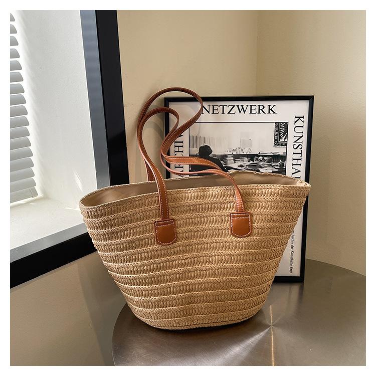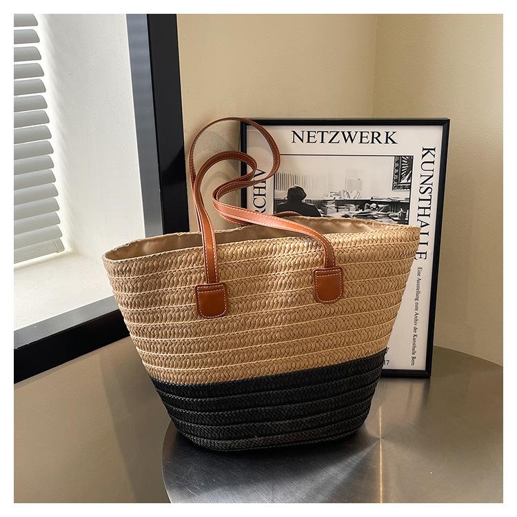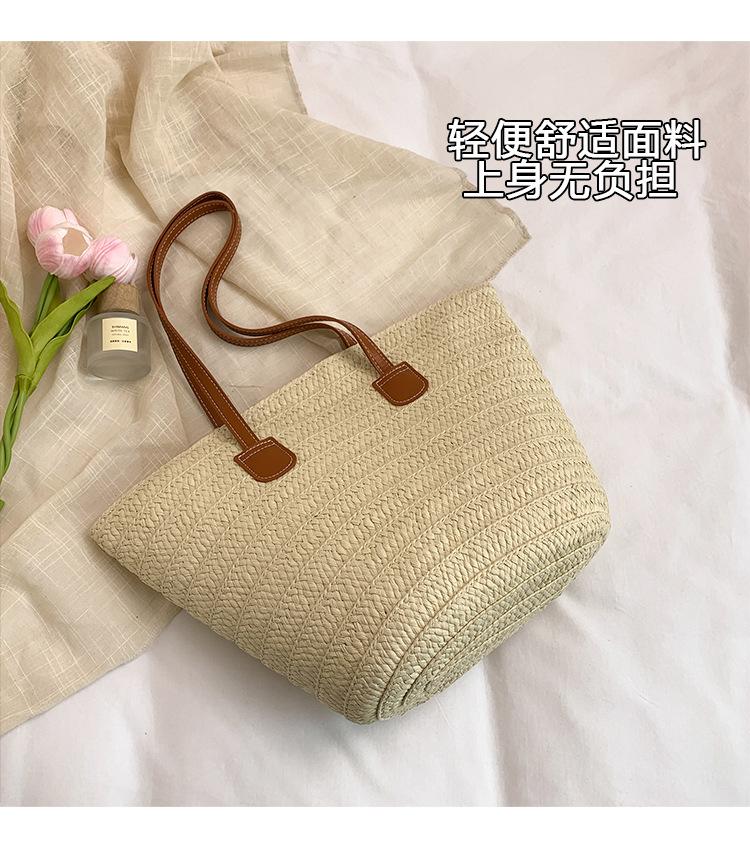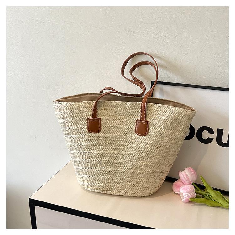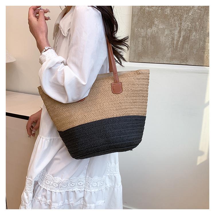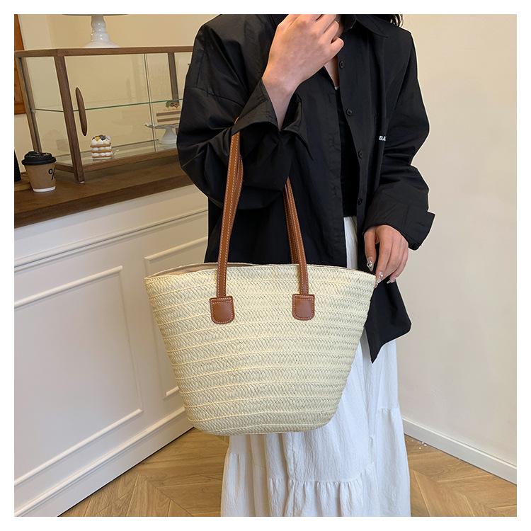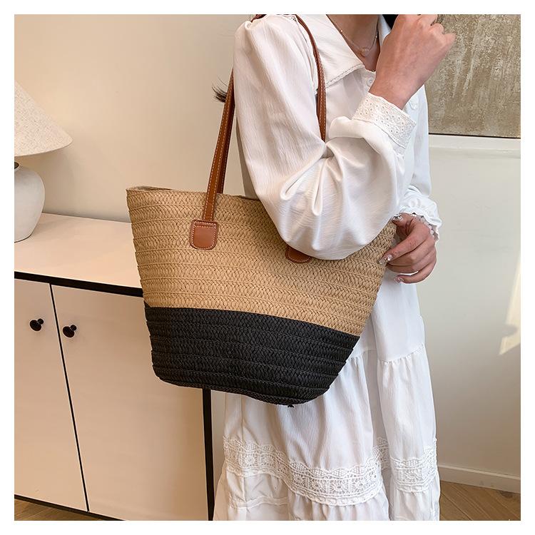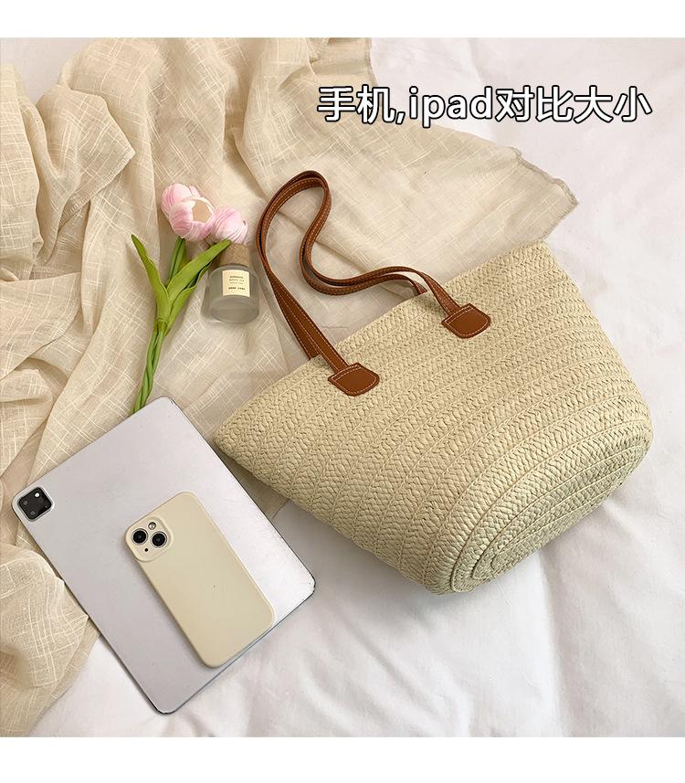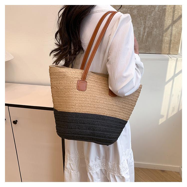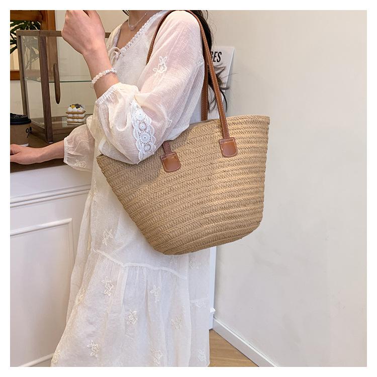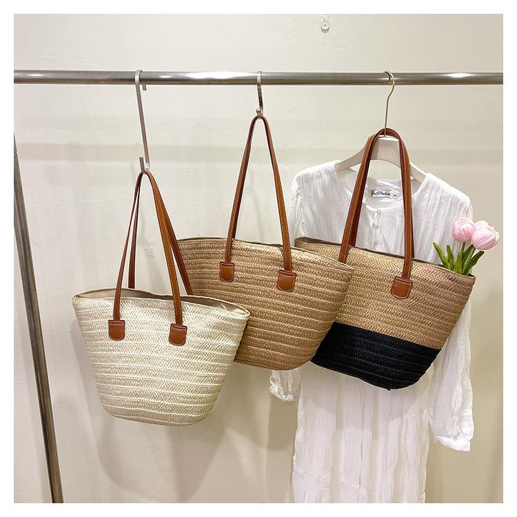 Novo All-match Simples Moda Palha Tecido Bolsa Grande Capacidade Bolsa de Ombro Bolsa Retro Praia Bolsa Feminina Tecido Bolsa