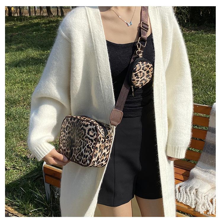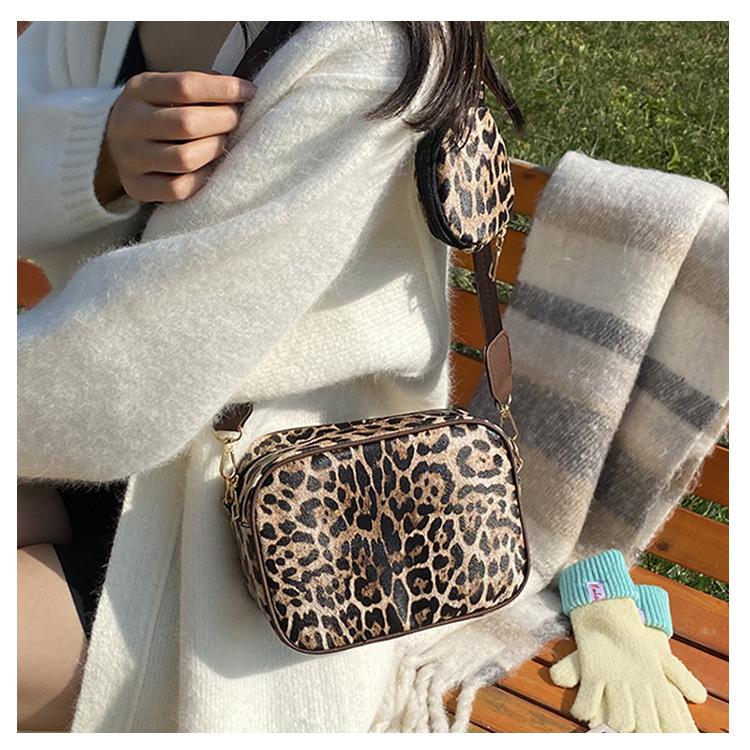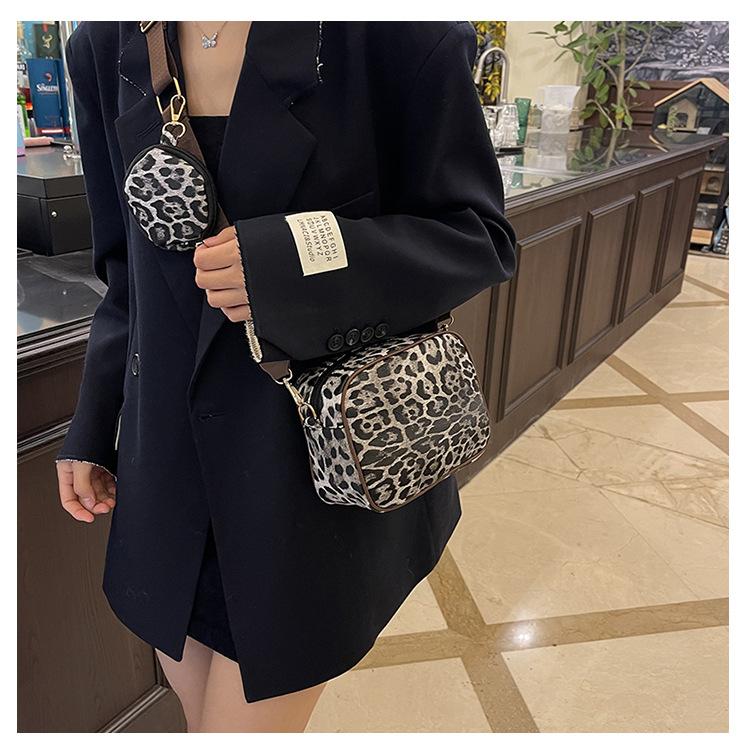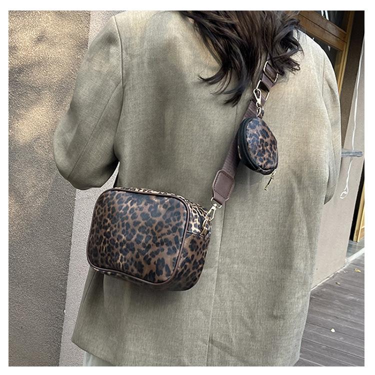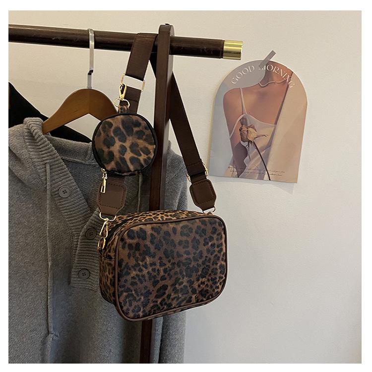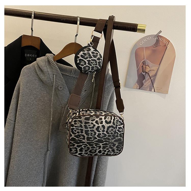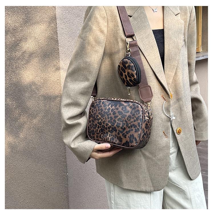 Bolsa Transversal Casual e Fashion Estampa de Leopardo 2025 Primavera Nova Retro Simples Commuter Estilo Mãe/Sogra Bolsa de Ombro